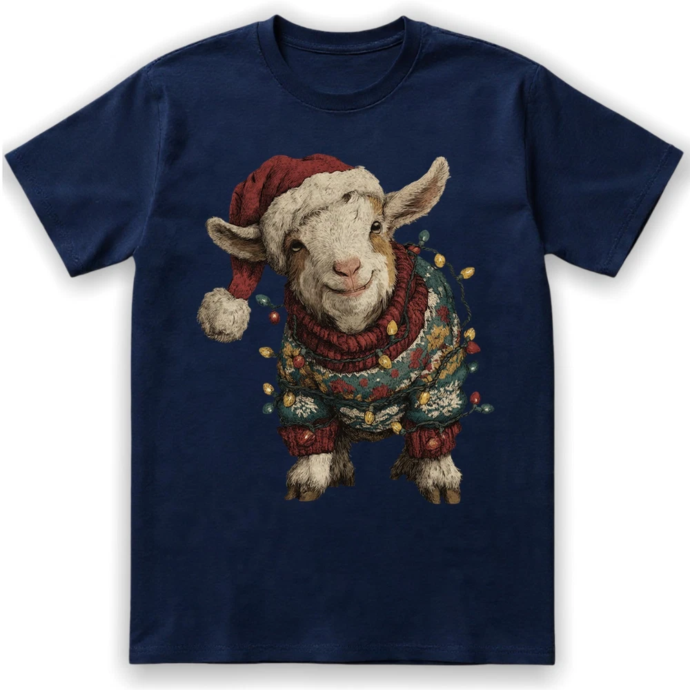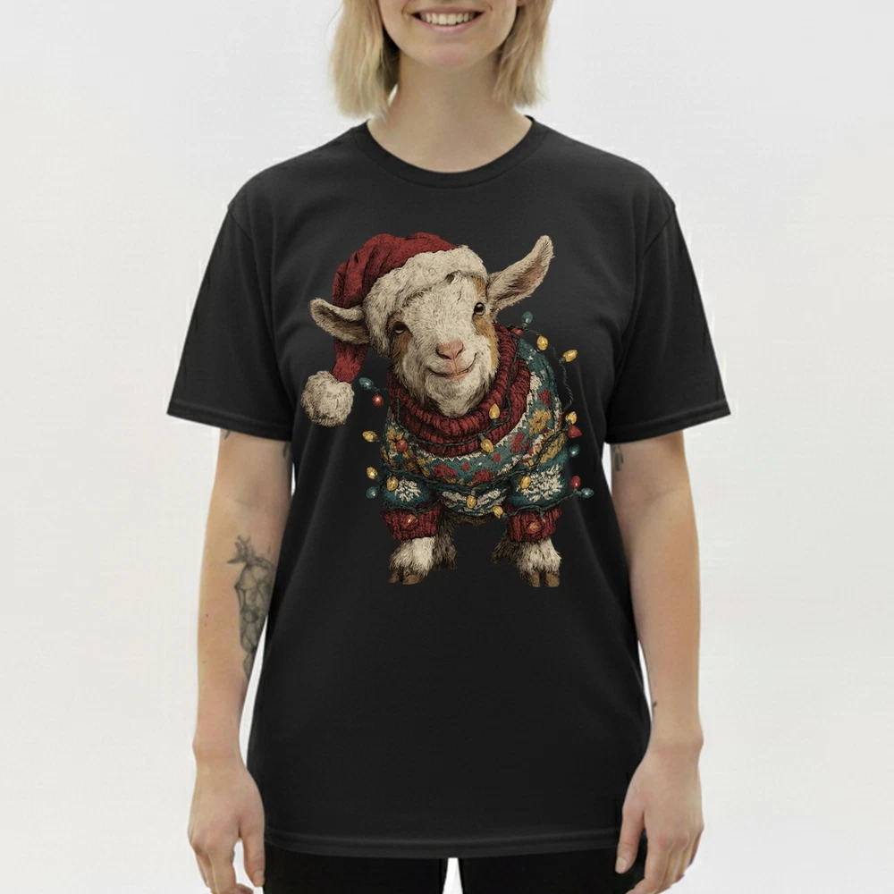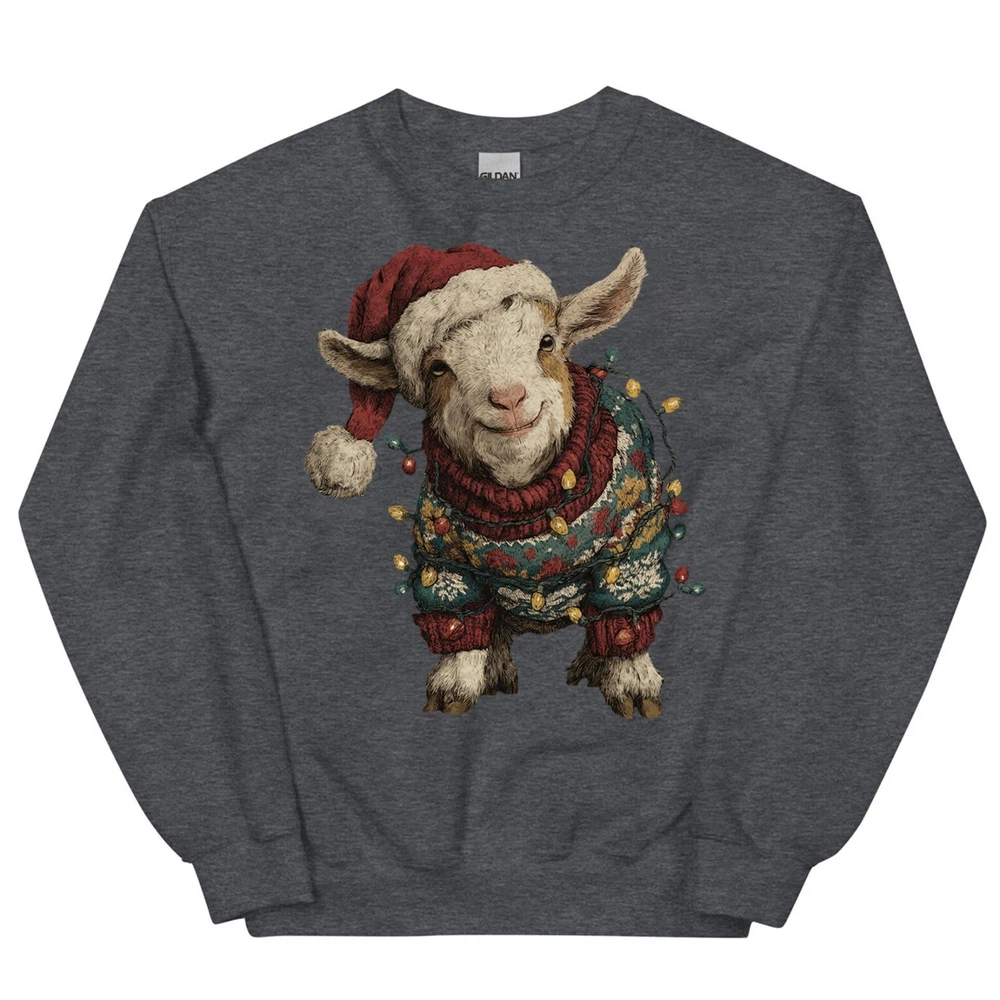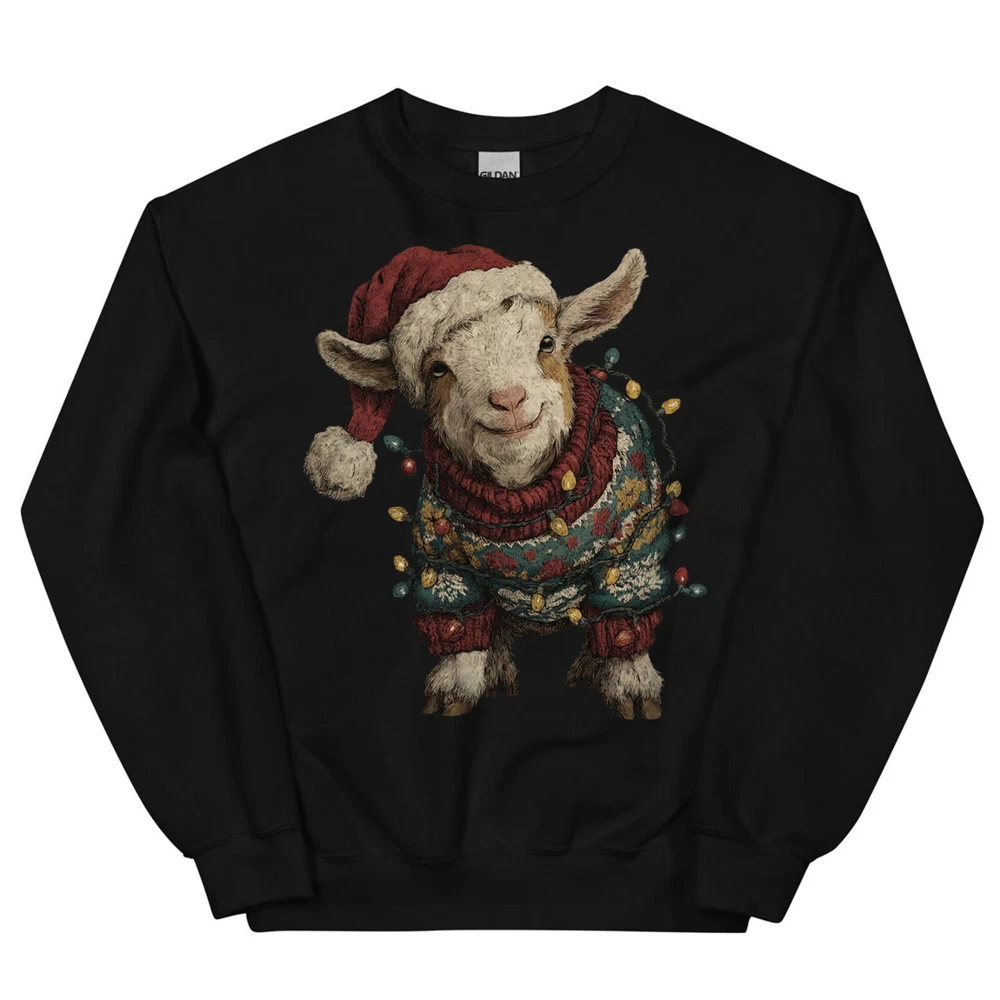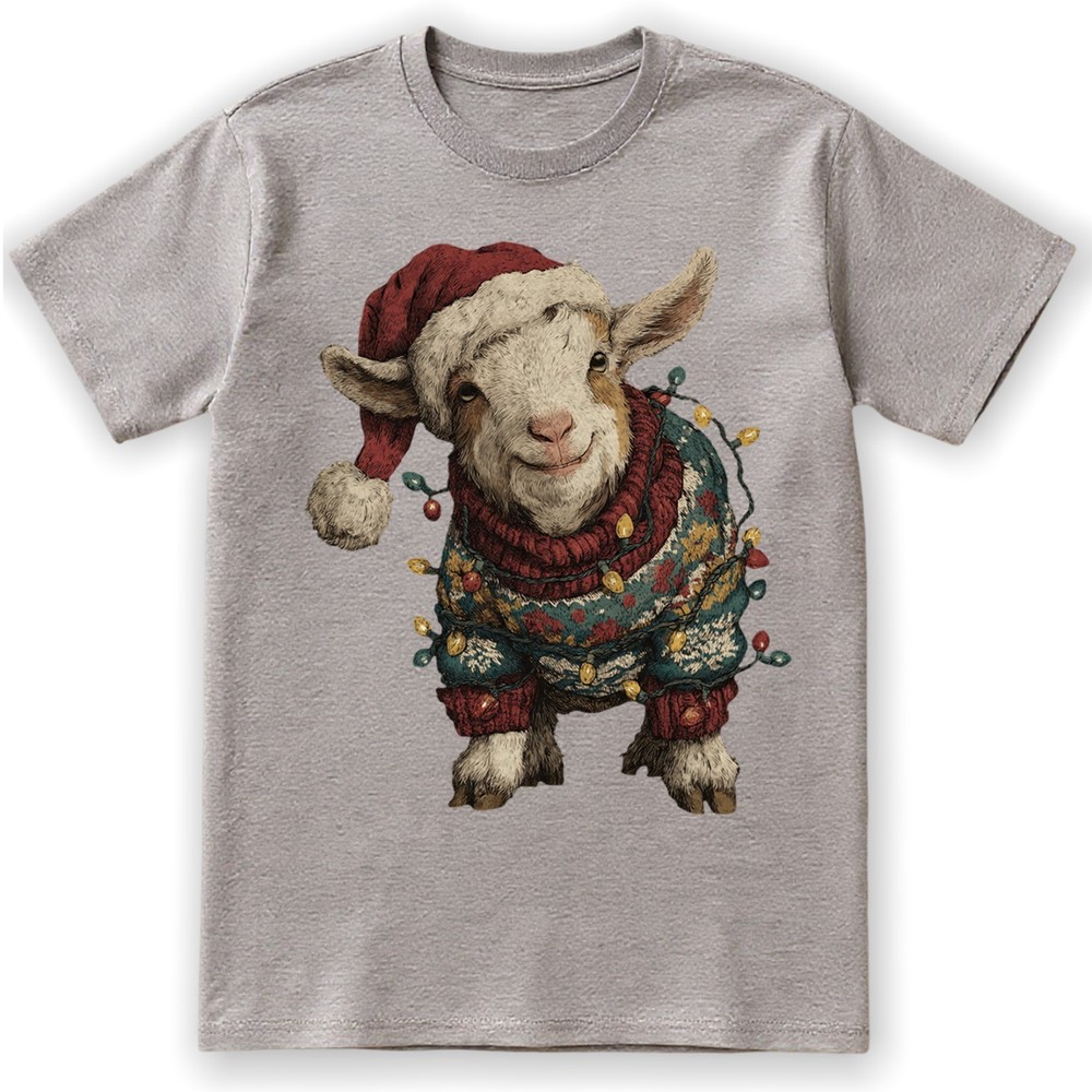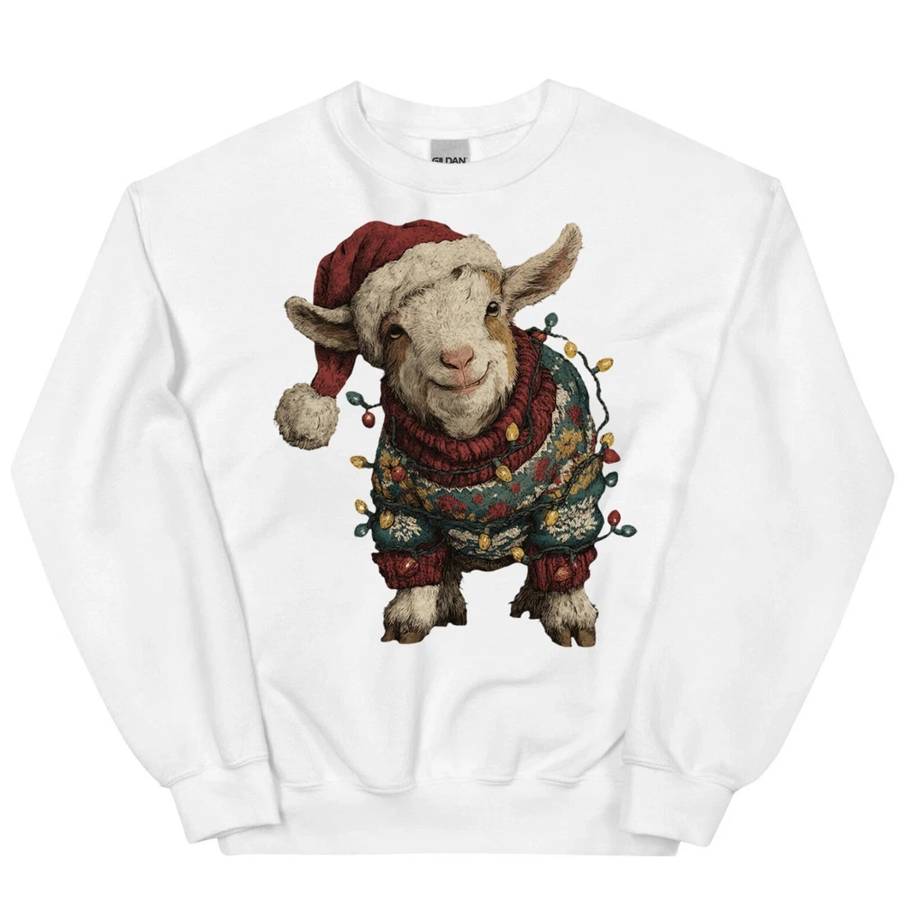Cute Christmas Goat T-Shirt Baby Farm Animal Santa Hat Lights Holiday Sweatshirt