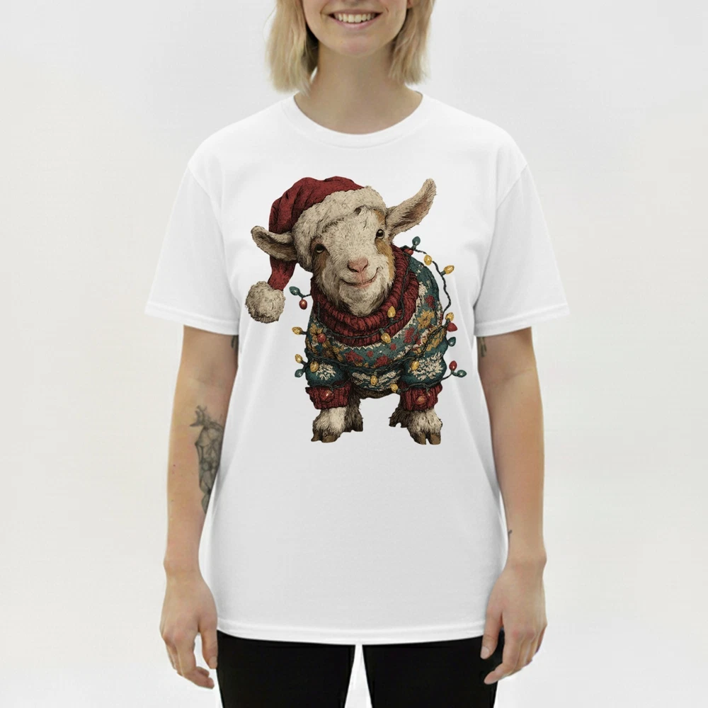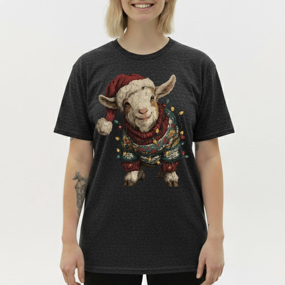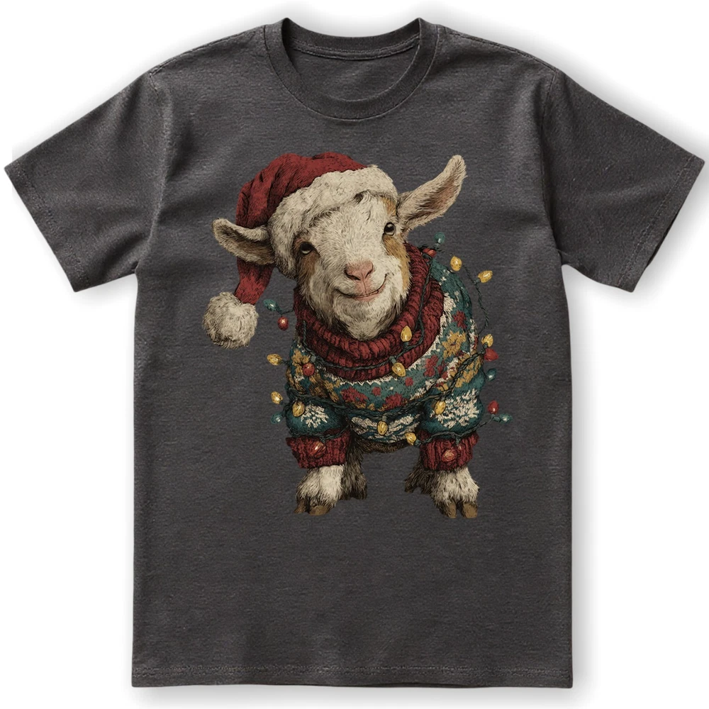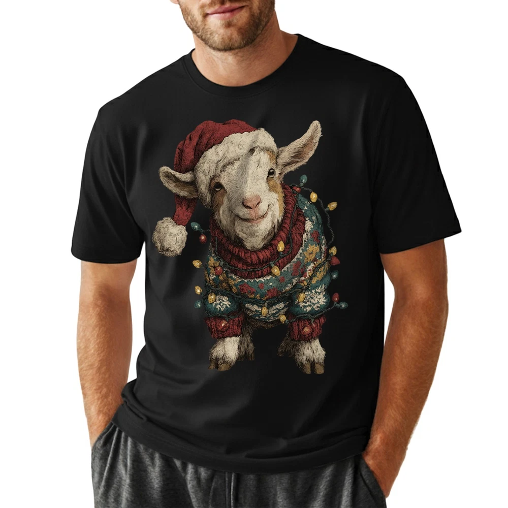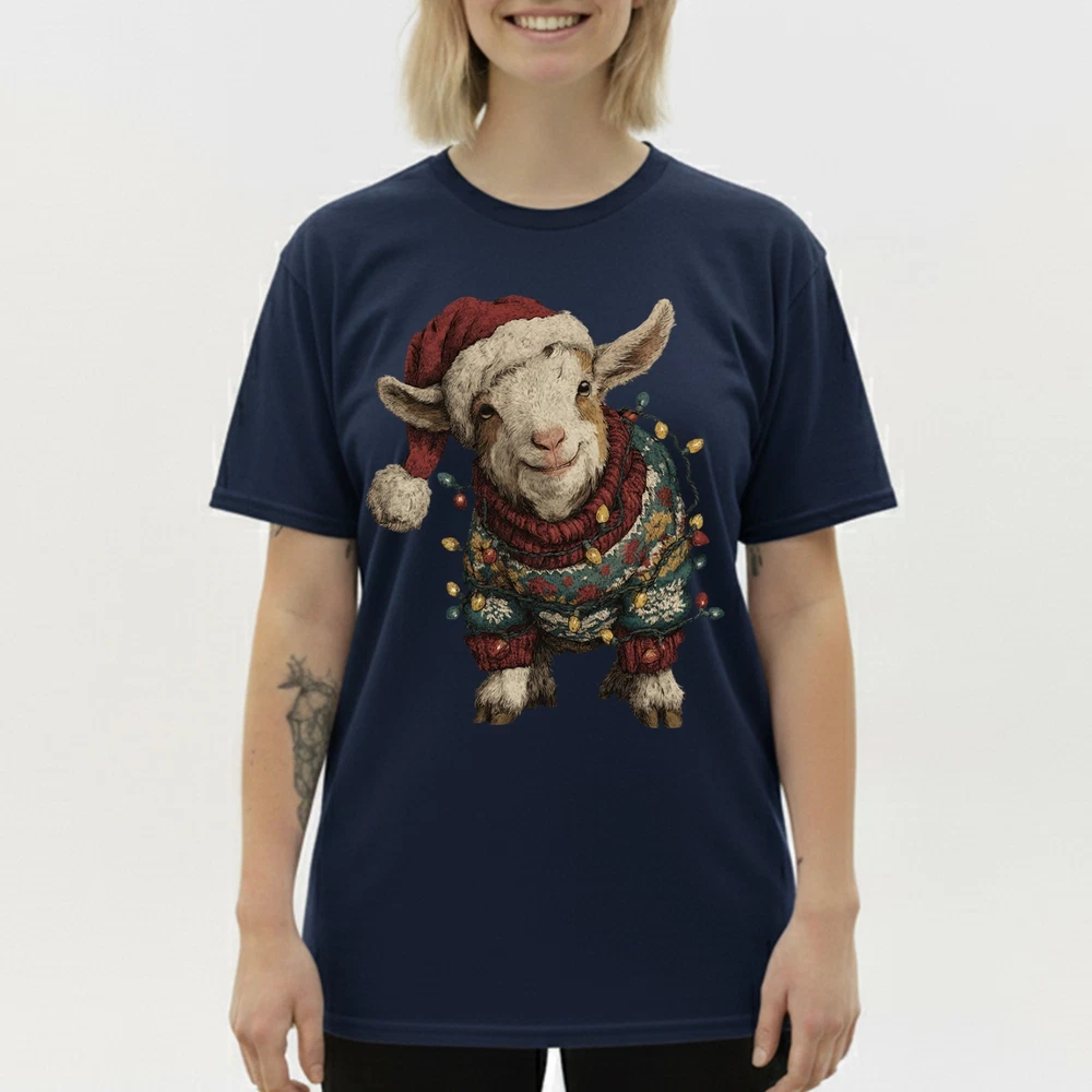 Cute Christmas Goat T-Shirt Baby Farm Animal Santa Hat Lights Holiday Sweatshirt