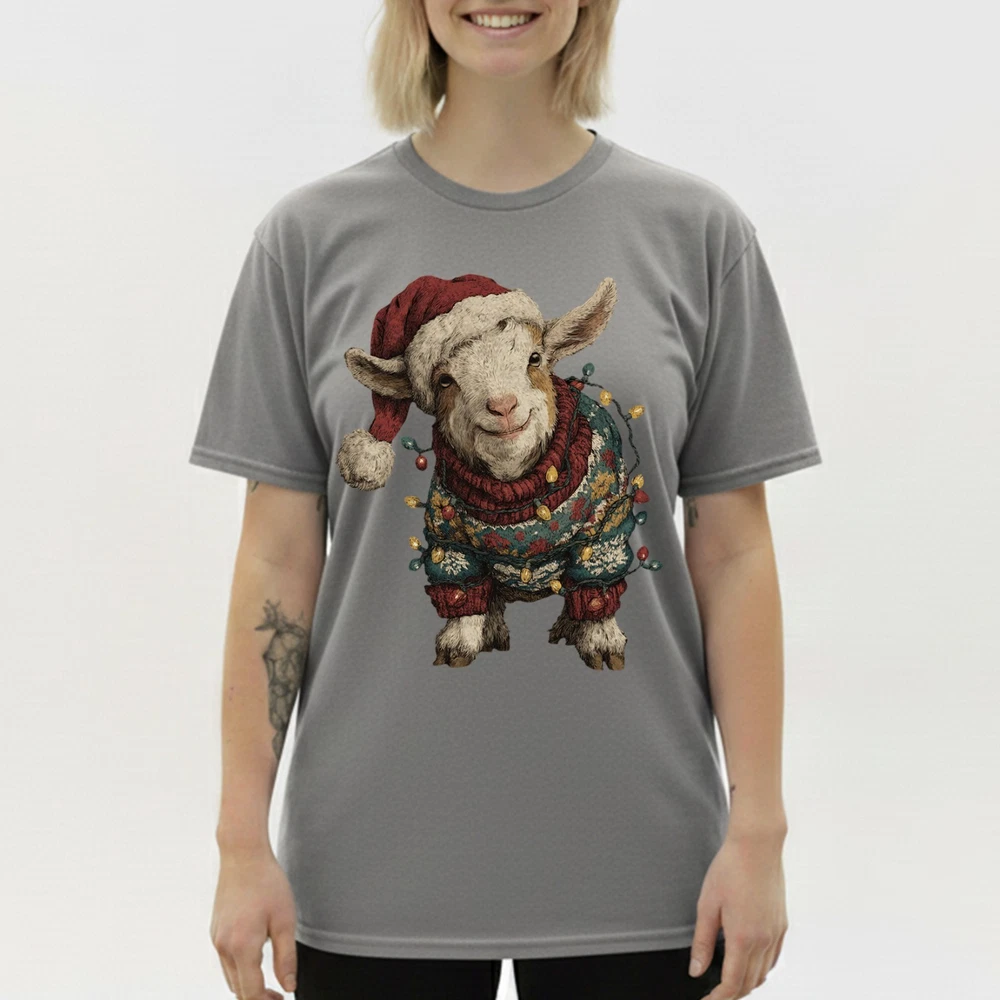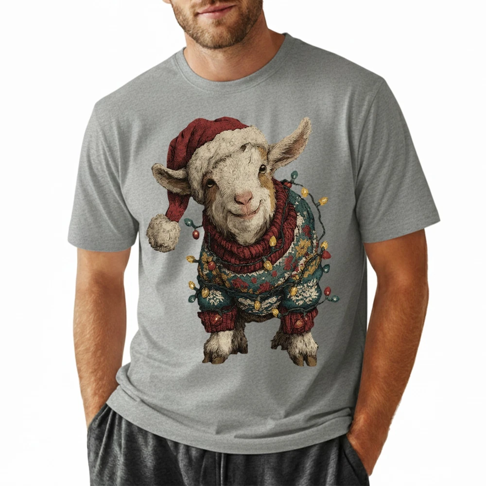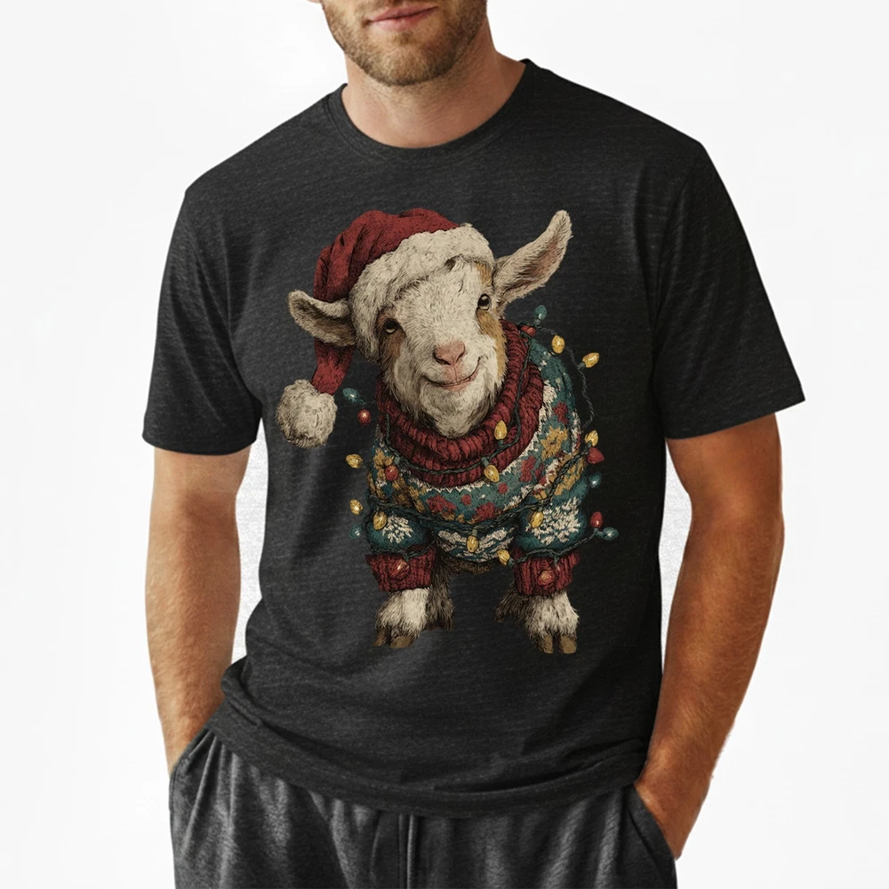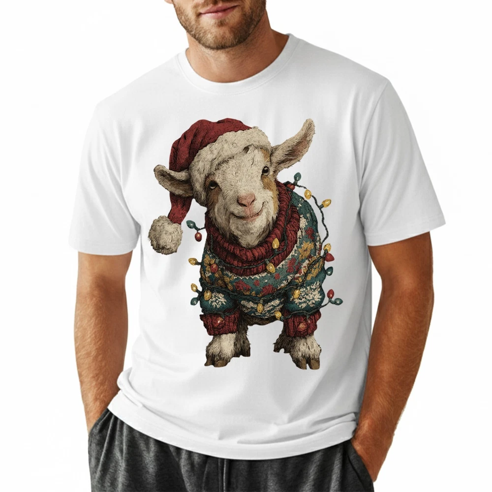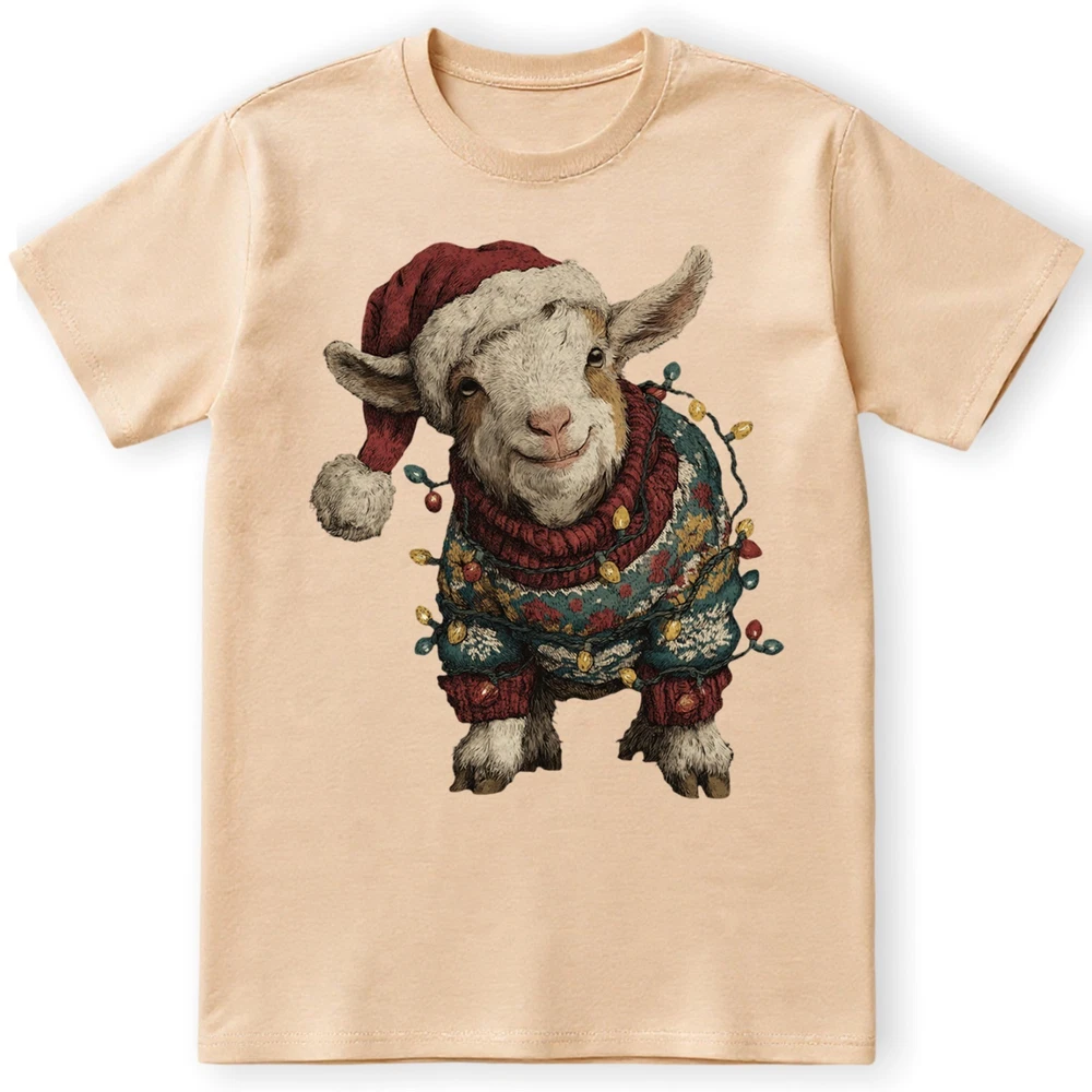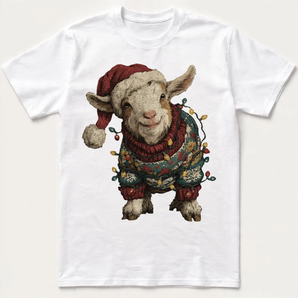Cute Christmas Goat T-Shirt Baby Farm Animal Santa Hat Lights Holiday Sweatshirt
