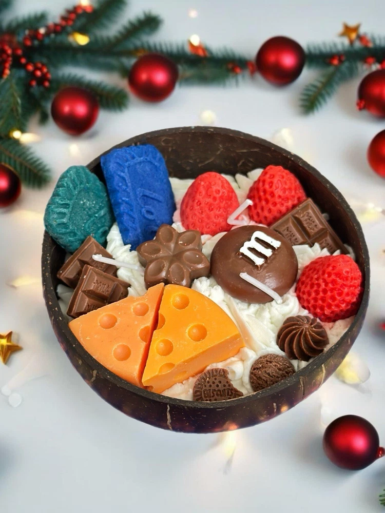 Type: Scented Candle Shape: Round Size: Medium Theme: Christmas, Holiday Features: Decorative, Hand-Molded, Scented Brand: Handmade Color: Multicolor Material: Soy Wax