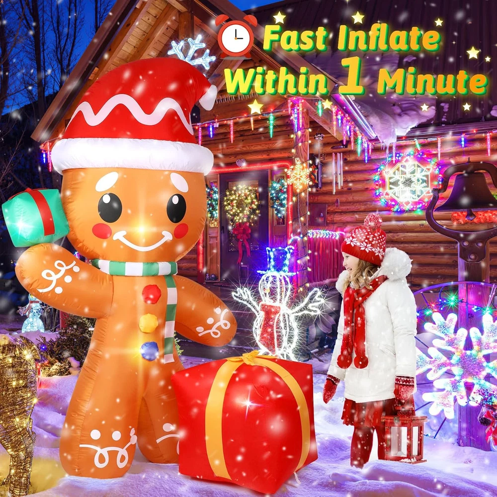 Menu Other Items Feedbacks About Us Contact Us Add To Favorites Christmas Inflatable Outdoor Decoration, Long-Lasting 6FT Gingerbread Inflatables with Gift Box, Stable Christmas Blow Ups Yard Holiday Decorations Built-In LED for Xmas Party Indoor Garden Lawn Décor Delightful 6 FT Christmas Decorations Gingerbread Inflatables: Merry Christmas! Unwrap a holiday surprise that kids will adore! The gingerbread inflatable is more than just an indoor & outdoor Christmas decoration, it's the ultimate Christmas gifts for kids that brings giggles and glee to every yard. Sporting a red Santa hat, button details, and a green striped scarf, the cheerful smile gingerbread Christmas decor with Christmas gifts boxes ready to spread cheer and ignite the joy of the season Built to Last Outside Christmas Decorations for Many Winter Holidays: Get ready to dazzle your neighbors with the sweet outdoor Christmas decoration - gingerbread inflatable! Made of high-strength waterproof polyester, which protects against rips and tears. The excellent and tighter stitching improves the durability of the gingerbread man decorations, and its bright colors and thick material will maintain their appeal and bring holiday joy to all, year after year Christmas Blow Up Decorations Built-in Bright LED Lights for a Magical Night Display: Transform your yard into a glowing winter wonderland with this Christmas inflatable outdoor. The built-in bright LED lights ensure your gingerbread man inflatable stands out in your outdoor Christmas decorations, shining brightly even after the sun sets. Ideal for inflatable Christmas decorations outdoor, this inflatable adds warmth and joy to those chilly holiday nights Fast Inflate & Stable Kid-friendly Outside Christmas Decorations for a Hassle-Free Holiday - Deck the yard with the adorable Christmas gingerbread inflatable. Setup is a breeze, incredibly easy and safe for kids to join in the fun of decorating for the holidays. Simply zip up and plug it in, wait for 55 seconds for inflation and watch the magic unfold, your gingerbread man will pop up, fix the blowup decoration with included ground stakes as well as fasten ropes, ready to spread holiday cheer Joyful Indoor & Outdoor Blow-Up Christmas Decorations: As the holiday season approaches, there’s no better way to spread joy and create lasting memories than by adorning your yard, patio, lawn, farmhouse, garden, porch or living room with the gingerbread Christmas inflatable. Perfect for Christmas yard lawn decorations, Christmas Eve Decor, Christmas Party decorations, outdoor Xmas decorations, New Years decorations, outdoor holiday decorations, even Christmas classroom decorations The magic of the Christmas season is almost here, is your yard ready to embrace this annual feast? Want to stand out from millions other identical Christmas yard decorations? Light up your yard with the unique warm built-in LED lights 6FT Gingerbread Christmas Inflatable The Cute and festive Gingerbread outdoor Christmas decoration will make your yard be the most special one and undoubtedly be a hit among kids With endearing smile and cheerful Christmas Gifts boxes, the gingerbread blow up Christmas decorations outdoor is the perfect symbol of the season's sweetest traditions Welcome the most delightful addition to your Christmas yard decorations with the Gingerbread Inflatable The charming Christmas lawn decorations for outdoors is the perfect way to celebrate the holiday season and spread joy to all who see it Versatile Weather-friendly Indoor and Outdoor Christmas Decorations - Creating a Welcoming Atmosphere Not only is the Christmas inflatable gingerbread ideal for holiday outdoor decor, but it also makes a perfect indoor decoration for parties and celebrations Inflatable Christmas decorations is a versatile piece that can add a festive touch to any setting Whether you're creating a magical Christmas dreamland or simply adding a charming character to your Xmas blow up yard decorations, even going for a big gingerbread house theme, this inflatable is a perfect choice Giant Christmas Inflatables Complete and Ease Setup Kit Included - Say goodbye to complicated holiday decorations The package of Christmas inflatable outdoor decoration comes with everything you need for a hassle-free decorating experience, letting you focus more on the joy of the season An safety UL-certified plug with 10 FT extended power cord is suitable for you to put it in different places, no matter indoor or outdoor, such as the garden, lawn, backyard, courtyard, patio, entryways, porch and more Item Specification Item Dimensions 6 x 4 x 5 inches Color Multicolor Material Type Plastic Theme Christmas Occasion Christmas Additional Features Easy Setup, Self Inflating, Long Lasting, Weather Resistant, Durable Subject Character Christmas Gingerbread Man Cartoon Character Christmas Gingerbread Man Dimensions Shipping Returns Additional Info Product Dimensions: 4.0 inches x 6.0 inches x 5.0 inches. Weight: 2.01 lb Fast shipping is very important for us. Our standard shipping service is FREE. Your order will be shipped within 1-3 business days upon full payment received. Most items are delivered within 3-5 business days, however, please allow 3-10 business days. We are shipping only to USA. We only ship to the confirmed Paypal address. We reserve the right to cancel any order for any reason at any time. We are not responsible for undeliverable addresses. We offer a 30 day return policy from checkout winning date. Your satisfaction is guaranteed! If for any reason you are unhappy with your item, just return it within 30 days for a full refund, minus shipping cost. Please contact us prior to initiating a return so that we can issue you a refund authorization. Items defective upon receipt must be packaged in their retail packaging as if new and returned with a detailed description of the problem. Return shipping fees are not refundable. We reserve the right to decline any returns if the above gu