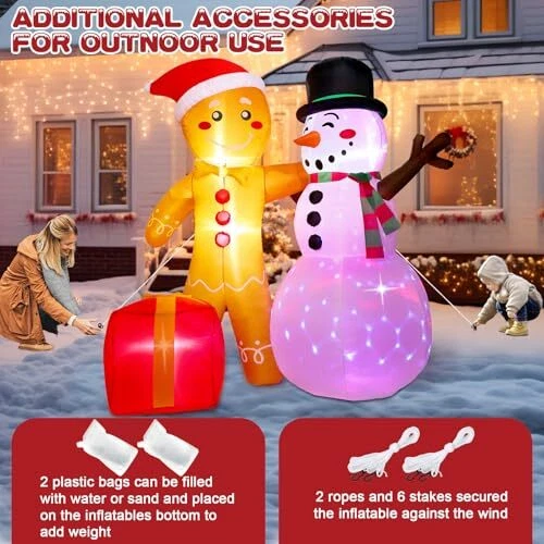 30 Days Return Policy Fast Delivery Trusted seller Christmas Inflatables Outdoor Decoration, Cute 6 FT Snowman Gingerbread Christmas Decorations, Build-in LEDs, Stable Christmas Blow Ups Yard Decorations for Holiday Indoor Xmas Party Garden Lawn Décor Product Description Christmas Inflatable Outdoor Decoration - Eye-Catching Design: Welcome the holidays in style with this charming 6 FT Gingerbread Man & Snowman Inflatable! These two friendly faces, glowing with joy, will transform your yard into a festive wonderland that will warm the hearts of neighbors, guests, and your family. Let their bright, colorful lights bring your Christmas yard decorations outdoor to life, spreading holiday cheer far and wide Christmas Blow Ups - Light Up the Night with Festive Glow: Christmas decorations outside Gingerbread man inflatable with Christmas gift boxes built-in 3 white LED lights, Snowman inflatable built-in 1 rotating colorful light. As night falls, watch your yard glow with holiday magic, to bring joyful vibes to your neighbors, friends, and family for extra holiday cheer. These outdoor Christmas decorations will ensure your house shines the brightest on the block Christmas Inflatables - Effortless Setup: Decorating for the holidays has never been easier! Simply plug in this delightful snowman Christmas decorations and watch as it inflates in seconds. Thanks to the 6 ground stakes, 2 sturdy ropes, and built-in sandbags, you can rest assured that Christmas lawn decorations will stay secure, even through winter winds. Christmas blow ups is a perfect choice for busy families looking to add instant holiday joy to their outdoor Christmas decorations Blow Up Christmas Decorations Outdoor - Durable and Weather-Resistant: Made from durable, waterproof polyester, this outdoor Christmas decor gingerbread man inflatable is designed to withstand whatever winter throws its way. With premium stitching and high-quality materials, this outdoor holiday decorations will stay vibrant and intact throughout the entire holiday season, ensuring your outdoor Christmas blow up decorations continue spreading joy no matter the weather Perfect Gift for Xmas Decoration: This inflatable isn’t just a snowman Christmas decorations—it’s a gift waiting to be shared! It comes packed in a festive Christmas-themed box, making it an ideal present for family and friends. Once the season is over, it can be stored away safely for use next year, ensuring that your holiday decorations are easy to organize and ready for future celebrations. This thoughtful design adds both convenience and delight to your Christmas decorations outdoor Shipping Returns Payment Shipping Shipping is FREE to all addresses other than APO/PO boxes in the lower 48 states. All our stock ships from US-based warehouses. Shipped via USPS or UPS (depending on location and package weight) Unless stated otherwise, all orders will ship within 24-72 hours of your payment being processed. Check our feedback to see the great reviews of FAST shipping we offer. Returns As our valued customer, we will do our best to make sure the product you receive arrives to you on time and as expected. If you are not satisfied with your purchase, please contact us within 30 days of receiving your order to process a return. Payment We currently accept payment via eBay managed payments only. Once payment is cleared, we will dispatch your shipment within 1-3 business days. Please refer to the "Shipping" tab for more information regarding shipping speed to your destination.