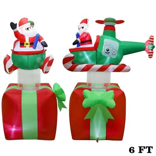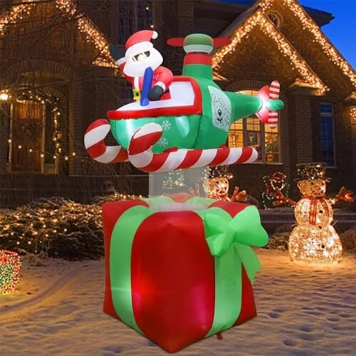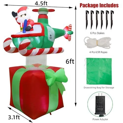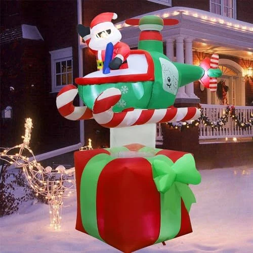 30 Days Return Policy Fast Delivery Trusted seller Christmas Inflatables Outdoor Decorations, 6FT Inflatable Xmas Santa Claus with Helicopter on Gift Box, Lighted Blow Up Santa Flying Airplane, Built in Light for Holiday Lawn Yard Garden Decor Product Description Christmas Inflatable Decorations: Our 6 feet tall Xmas inflatable outdoor decor portrays Santa Claus piloting a helicopter with spinning propeller, landing on a large, red gift box, making for an amusing and memorable holiday scene. It adds an eye-catching centerpiece to your holiday seasonal layout and makes it big and attractive Christmas decorations around. With led lights inside, light up at night and make your home a new sight in your neighborhood Great Quality: This outdoor Christmas decoration is made of thickened waterproof polyester fabric to ensure years of usage. Standing tall and brightly colored, it creates an eye-catching spectacle sure to make passersby smile and turn heads. Please make sure the air blower is facing up when inflating. The air blower facing the ground will affect the effect of inflating Self-Inflates in Minutes: Our Christmas yard inflatable is easy to install, just plug it in and watch as the holiday inflatable self-inflates in minutes, coming to life. Everything pops up in a moment! Don't forget to zip up the bottom zipper. For storage simply let the air out and fold it Reinforced Tie-Downs: 6 Ground stakes and 4 tethers are provided for tie-down. Built-in fixed sandbag, an opening at the bottom with a zipper provides space for adding some heavy objects to make it more secure and stable. No need to worry that your Christmas yard inflatables will fly away with the wind Eye Catching Holiday Decorations: With the inflatable Xmas Santa Claus in helicopter on gift box decor, you're not just adding another decorative item to your Christmas holiday collection, but a center of fun and attraction, sure to be enjoyed by both kids and adults. It can be used for decor front door, yard, lawn and garden, Christmas parties, and New Year's party. If outdoor use, please keep the fan and adapter dry, can not submerge them in water Shipping Returns Payment Shipping Shipping is FREE to all addresses other than APO/PO boxes in the lower 48 states. All our stock ships from US-based warehouses. Shipped via USPS or UPS (depending on location and package weight) Unless stated otherwise, all orders will ship within 24-72 hours of your payment being processed. Check our feedback to see the great reviews of FAST shipping we offer. Returns As our valued customer, we will do our best to make sure the product you receive arrives to you on time and as expected. If you are not satisfied with your purchase, please contact us within 30 days of receiving your order to process a return. Payment We currently accept payment via eBay managed payments only. Once payment is cleared, we will dispatch your shipment within 1-3 business days. Please refer to the "Shipping" tab for more information regarding shipping speed to your destination.