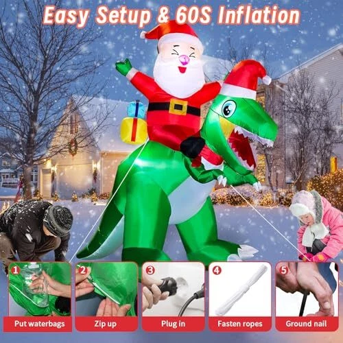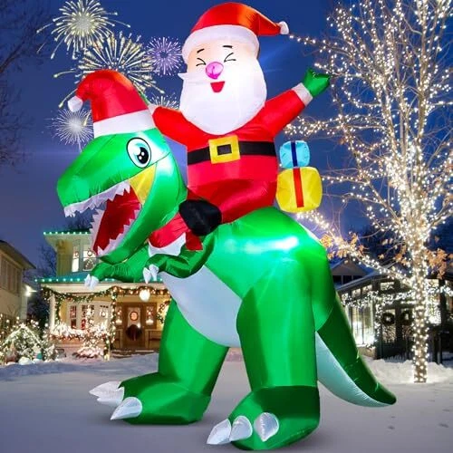 30 Days Return Policy Fast Delivery Trusted seller Christmas Inflatables Santa Outdoor Decorations: 7FT Cute Santa Riding Dinosaur Inflatable - Christmas Blow up Yard Decoration - Built-in LED Lights for Party Lawn Holiday Decor Outside Product Description STABLE FOR OUTDOOR USE: Don't worry about your outdoor Christmas decorations being blown away and collapsed by the wind! We provide 2 water bags, you can unzip the bottom and put in the water bags filled with water, so that your Santa Claus inflatable decoration can be firmly fixed to the ground. In addition, we also provide 6 ground stakes, 4 ropes, 4 rope buckles to increase stability, allowing your cute santa dinosaur inflatable to stand tall and steady DURABLE WATERPROOF MATERIAL: The Santa riding dinosaur inflatable is made of high-quality 210T polyester waterproof material, which is waterproof and weatherproof. Excellent stitching prevents tearing and air leakage, which improves the durability of the inflatable santa. The high-quality color coating design will not fade. Year after year, the Christmas blow ups is still lifelike and attractive. Accompany you and your family through more than one Christmas QUICK INFLATION & EASY SETUP: Our Santa dinosaur inflatable is equipped with a powerful blower. Just zip up the bottom and plug in the power source, and your outdoor Christmas decorations will reach 7 feet tall in 1 minute. The blower is waterproof and self-inflating design can keep Santa Claus decoration always inflated and very quiet. Unplug the power supply, it is easy to deflate and store without taking up much space DAZZLING OOTDOOR DECORATIONS: This awesome light up inflatable Christmas yard decoration has 3 bright LED lights built in, looks great at night and lights up perfectly. This inflatable Santa Claus can easily catch the attention of guests, friends and kids, making it the most attractive and decorative yard in your neighborhood. We use high quality LED lights to ensure that the inflatable santa stay shining throughout the Christmas season EXCELLENT CHRISTMAS DECORATION: Santa riding dinosaur inflatable to deliver gifts to children, bringing joy and excitement to children. The 6.5-foot long power cord makes this Christmas inflatable decoration suitable for yards parties, lawns, indoors, outdoors and anyw else. In addition, Christmas blow up is packaged in a box, which is an ideal choice for Christmas gifts and can also be used for convenient storage until next year's Christmas Shipping Returns Payment Shipping Shipping is FREE to all addresses other than APO/PO boxes in the lower 48 states. All our stock ships from US-based warehouses. Shipped via USPS or UPS (depending on location and package weight) Unless stated otherwise, all orders will ship within 24-72 hours of your payment being processed. Check our feedback to see the great reviews of FAST shipping we offer. Returns As our valued customer, we will do our best to make sure the product you receive arrives to you on time and as expected. If you are not satisfied with your purchase, please contact us within 30 days of receiving your order to process a return. Payment We currently accept payment via eBay managed payments only. Once payment is cleared, we will dispatch your shipment within 1-3 business days. Please refer to the "Shipping" tab for more information regarding shipping speed to your destination.