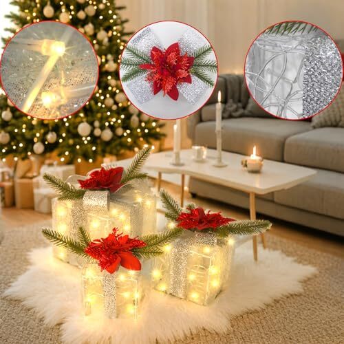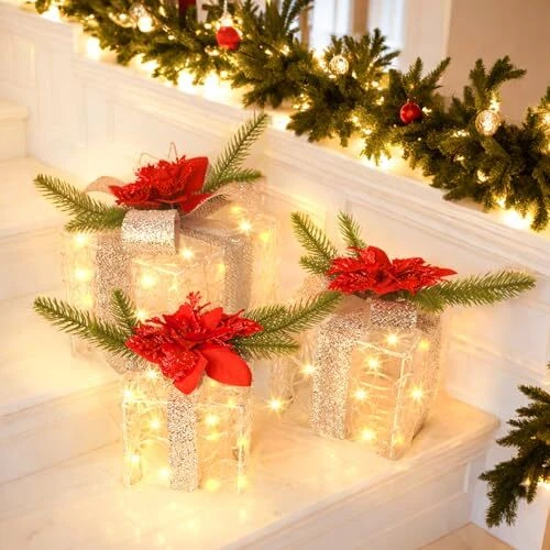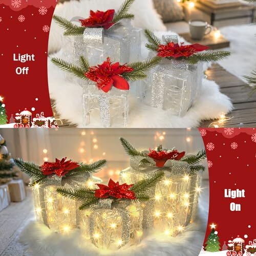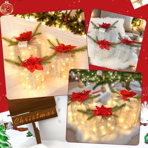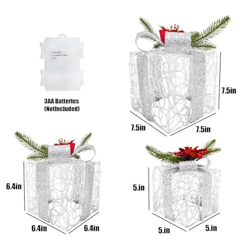 Menu 1. We require immediate payment. 2. We currently accept payment via eBay managed payments only. 3. Once payment is cleared, we will dispatch your shipment within 1-3 business days. Please refer to the "Shipping" tab for more information regarding shipping speed to your destination. Christmas Lighted Gift Boxes Set of 3, 60 LED Lights Present Boxes Ornament for Christmas Decorations Xmas Tree Indoor Outdoor Yard Home (Classic) Product description Charming Holiday Elegance: This set of three beautifully crafted gift boxes (large 7.5", medium 6.4", small 5.1") is wrapped in soft fuzzy fabric, embellished with shimmering silver snowflakes, festive bows, lush pine branches, and vibrant red poinsettias, adding a luxurious and magical touch to your holiday decor Battery Operated & Timer Function: Powered by 3 AA batteries (not included) and featuring a waterproof battery box, these lighted gift boxes offer ultimate flexibility—no outlets or cords needed! The built-in timer function keeps the lights glowing for 6 hours and automatically turns them off for 18 hours, adding a hassle-free touch to your holiday decor. Turn them on or off easily with the press of a button Easy to Assemble: Decorating has never been easier! Simply unfold the boxes, secure the bows, and arrange them as you like. No tools required—just minutes to create a stunning holiday display Space-Saving Storage: The smart stackable design ensures these gift boxes take up minimal space after the holidays, making them easy to store and reuse for many seasons to come Delightful Gifting Idea: These lighted Christmas gift boxes are the perfect present for loved ones, colleagues, or even yourself! Their enchanting design and warm glow bring festive cheer to any space, making every celebration unforgettable PLEASE MESSAGE US IF YOU HAVE ANY OTHER QUESTIONS, AND MANY THANKS FOR READING ALL OF THIS. Copyright ©#. All Rights Reserved.