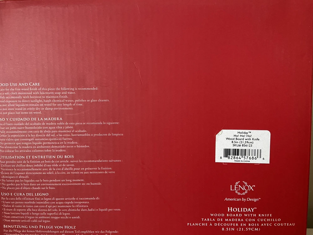 LENOX Christmas “Ho Ho Ho” Wood Board and Knife Set. New. 8.5” (21,59 cm) SKU #856123