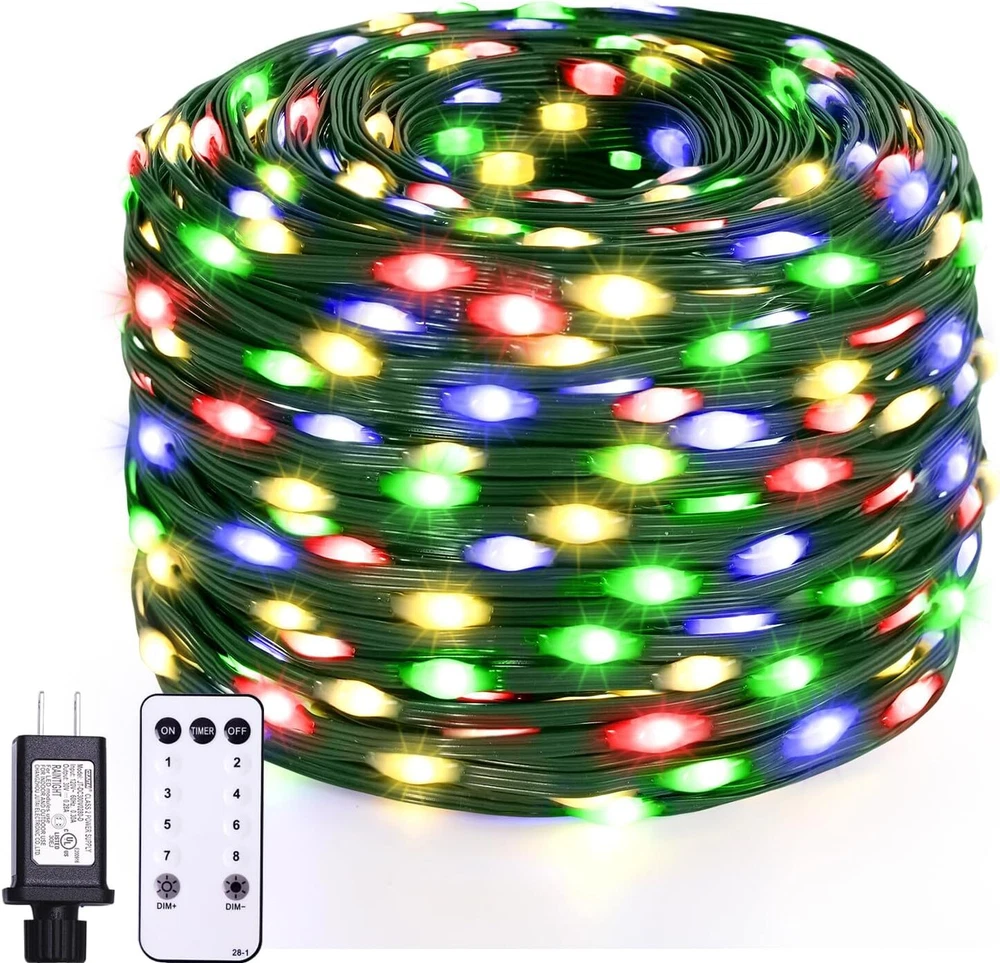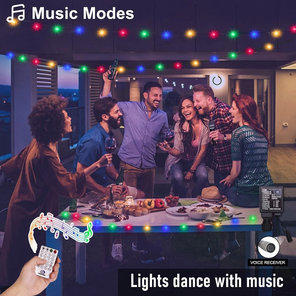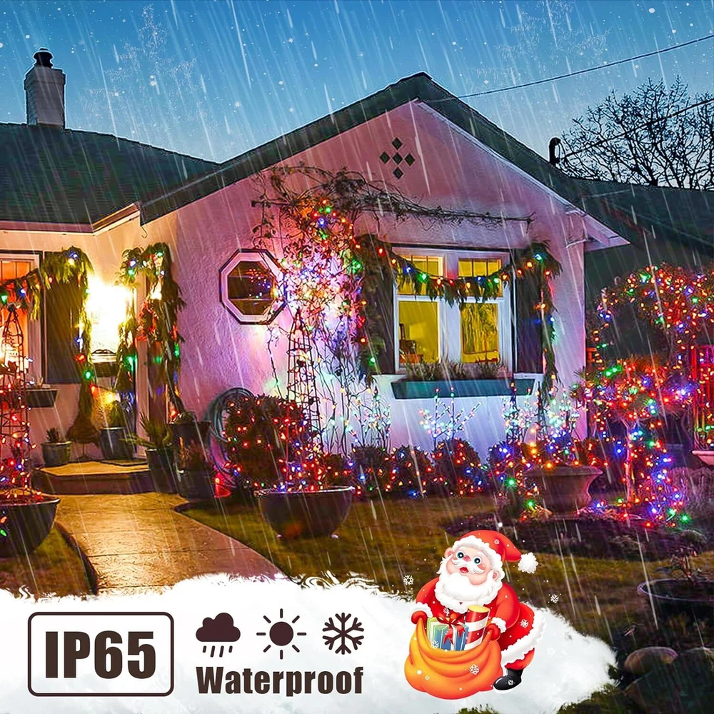 🎄【Enchanting Outdoor Christmas Lights】Elevate your festive decor with our 66ft 200 LED Outdoor Christmas lights, Super Bright Mini LEDs that beautifully adorn your fence, house, and trees in the front yard. Designed with a 3-layer high-quality PVC wire, our outdoor Christmas lights ensure durability and tangle-free convenience, saving you precious time during setup 🌟【Create the Perfect Ambiance】11 Lighting Modes has been updated to replace the previous 8 modes.They are vibrant. Warm white Steady on will meet the masses of consumers requirement.Mulitcolor will crate magic ambiance. Personalize your festive atmosphere further with our innovative 4-levels brightness dimmable function (25%-50%-75%-100%), catering to your every mood and preference ⏰【Effortless Convenience】Experience ultimate ease with our built-in Timer Function, allowing the lights to automatically turn on for 6 hours and off for 18 hours, freeing you from the hassle of remembering to switch them off. The humanized Memory Function ensures your last mode setting is saved, simplifying your life with just one-time setup 🎯【Ready for All Weather】Break free from the limitations of traditional IP44 waterproof lights, as our outdoor string lights waterproof boast a superior IP65 waterproof grade, conquering even harsh weather conditions like heavy rain and snow. Rest assured that our lights will shine bright and beautiful throughout the holiday season(Please protect plug) 🎵【Voice Control & Music Modes】 Music modes have spurred the string lights to a further leap in quality and function. The smart string lights can keep changing with the rhythm of the music because it with a built-in mic ✨【Perfect Christmas Decorations】Embrace endless possibilities with our color changing Christmas lights that are perfect for both outdoor and indoor decor. Accentuate your fences, outline your houses, and bring cheer to your front yard. Indoors, let them dazzle your Christmas tree, making it the centerpiece of festive delight 🌟【Satisfaction Guarantee】Please do not hesitate to reach out to us should you encounter any issues with our Outdoor String Lights Waterproof. We are committed to providing outstanding customer service and will promptly resolve any concerns that may arise. Choose our product, and let these color changing Christmas light up your life