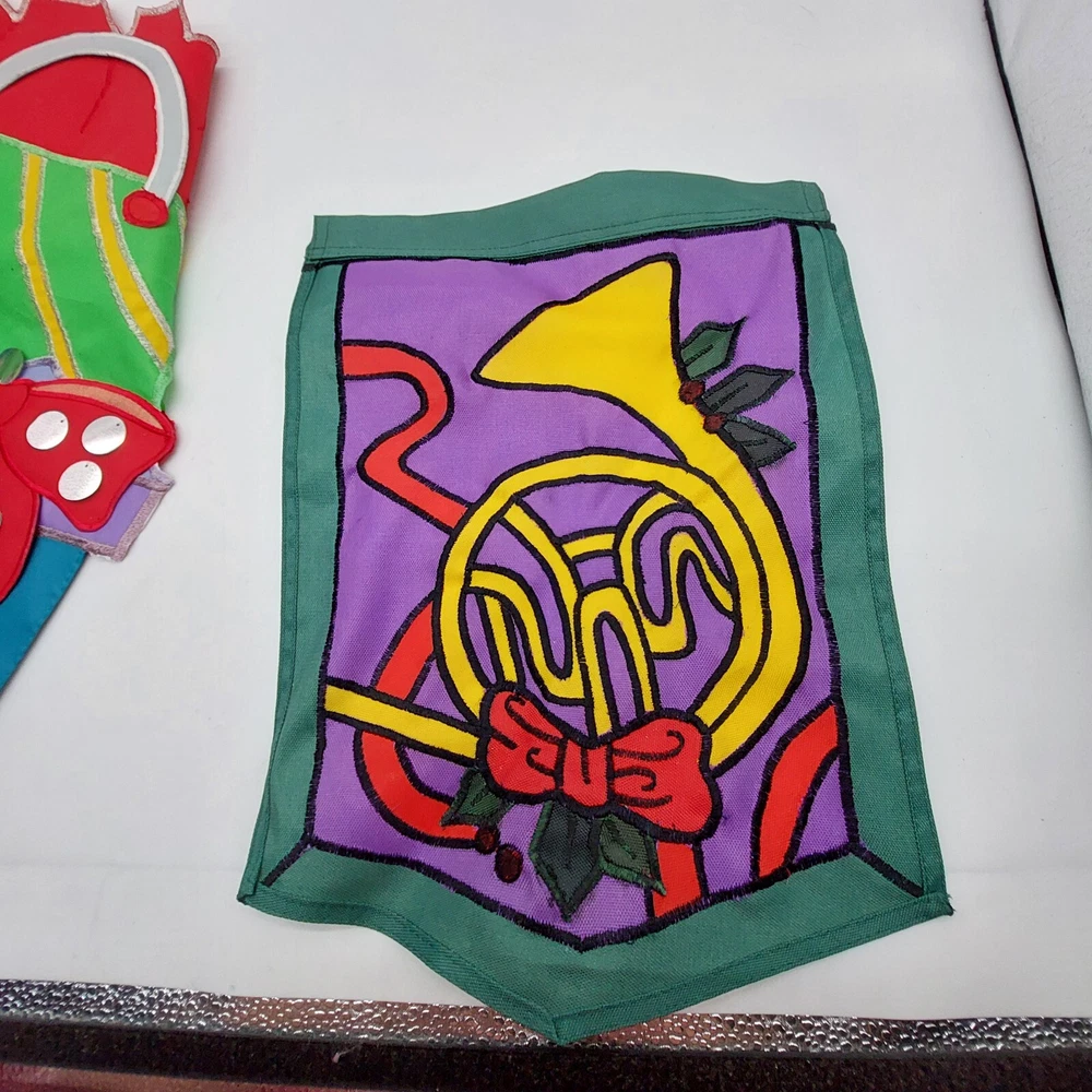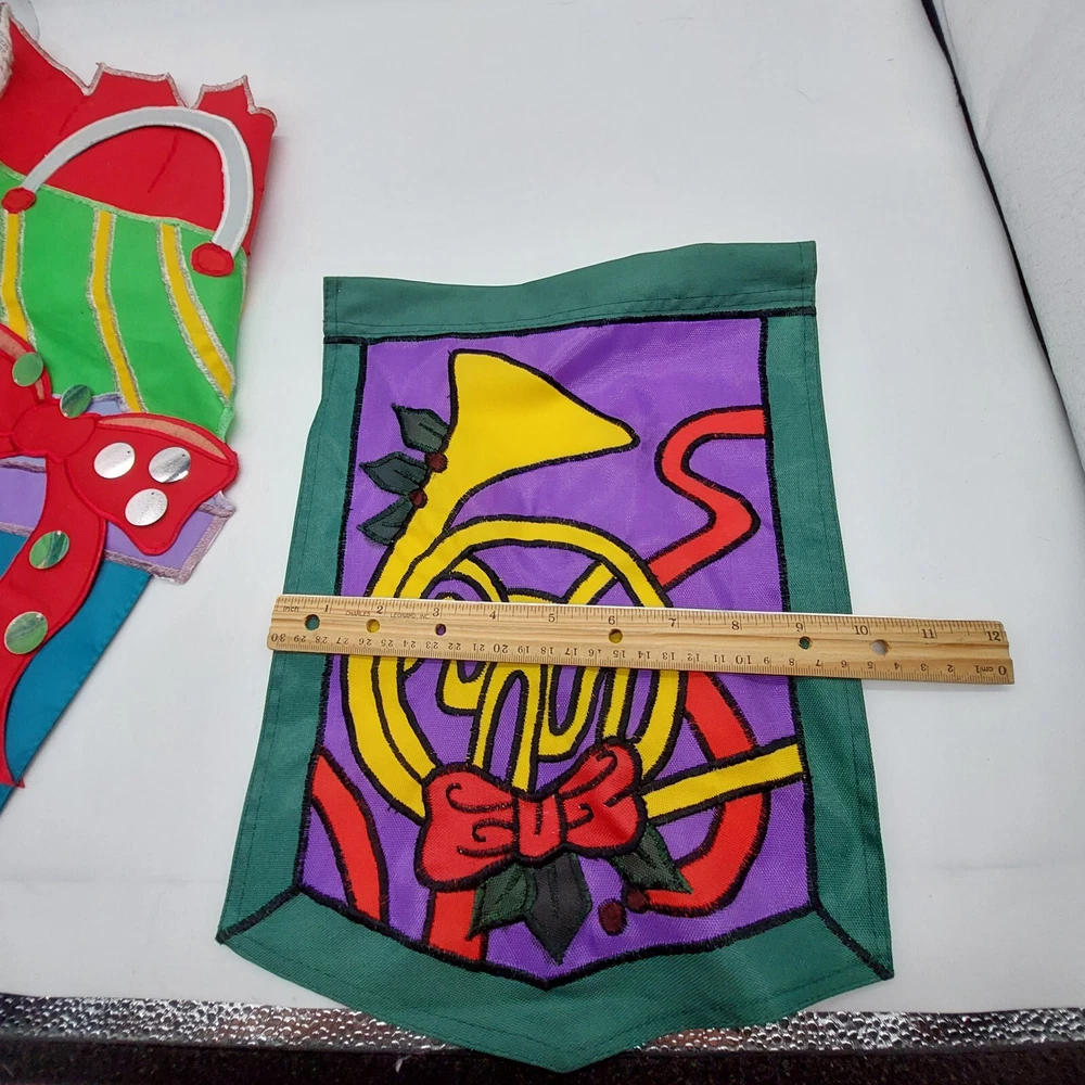 Christmas Mini Flags 1 Christmas gifts 11'x18 & 1 French Horn 10x13 Lot Of 2 Read