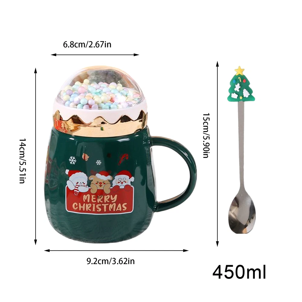 Bullet Points: Safe Material: Our Christmas Coffee Mug boasts high-quality material with high-temperature resistance, providing you with a comfortably hot sip every time. Its durability and longevity ensure long-lasting use Unique design: Featuring a unique Christmas theme design with rich and interesting details, this mug includes a cute colorful bubble cup lid, making it perfect for festive celebrations Ergonomic Handle: Enhance the festive vibe with our Christmas mugs' easy-to-hold, ergonomic round handle that ensures a secure grip and avoids any potential burns Versatile Use: Suitable for use as a coffee or tea cup, it's perfect for both home and workplace. Widely applicable, it adds an interesting touch to any drink Practical Present: Add more style to any beach excursion with this practical and fashionable Christmas Coffee Mug. Perfect as a birthday or holiday present for family and friends These mugs feature a unique holiday design that's sure to impress. Made with high temperature resistance and an ergonomic design, our mugs are the perfect choice for coffee or tea lovers. Specification: Material: Ceramic Product size: about 14x9.2x6.8cm/5.51x3.62x2.68 inches Weight: 580g Capacity: 450ml Spoon Length: about 15cm/5.91 inches Product List: 1* Christmas Coffee Mug 1* Spoon Notes: Due to the lighting effects and filming angles, there is a color difference in the product, please understand. Due to manual measurement, there is a tolerance in the product size. The actual product shall prevail, thank you!