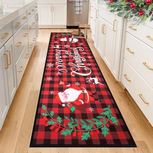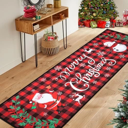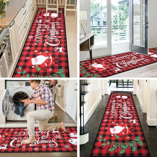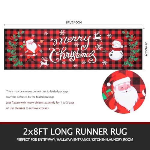 Return Policy Fast Delivery Trusted seller Christmas Runner Rug for Hallways 2'x8' Non Slip Buffalo Plaid Santa Claus Snowman Christmas Kitchen Rug Washable Floor Mat Merry Christmas Decorations for Entryway Laundry Room Holiday Decor Product Description 【Buffalo Plaid Christmas Rug Runner】 Christmas hallway runner rug measures 2'x8' printed with Merry Christmas and adorable Santa Claus and Snowman pattern,Classic Christmas red and black buffalo plaid design,Welcome your friends and families with this warmth and impressed Christmas runner rug. 【Washable Kitchen Runner Rug】Made of high-quality polyester materials,the surface with machine woven dense loop texture is shed free,water absorbent and dries quickly,the rug runner with stain-resistant color and is machine washable to save you time on cleaning,Spend more time enjoying festive food with your family. 【Non-Slip Laundry Room Rug Runner】Buffalo Plaid Christmas Rug Runner with TPR rubber+upgraded cotton thread non slip backing,it will stay w you place it to prevent sliding,Perfect for high traffic areas with kids and pets.Give a bit of padding to the floor and adds fun to your laundry room. 【Low Pile Christmas Hallway Entryway Runner Rug】 Christmas rug runner for Hallways is 1/4" low pile,which does not add bulk to floor and doors won't get stuck,it is functional in high traffic areas.Low pile design for easy cleaning with a vacuum cleaner or machine washing to clean mat completely. 【Christmas Decorative Rug】 Christmas rug runner is comfortable and festive with its vibrant color,Perfect for hallway entryway runner rug,kitchen runner rug,laundry room runner rug, entrance door mat,bedroom floor mat carpet,living room area rug,fireplace decoration rugs,holiday Xmas party home decor.Create a strong Christmas atmosp and give you a comfortable and happy festival experience. 【Note】Due to folded package,some creases may appear when you use it for the first time.Do not worry and just use steamer to remove creases efficiently. Shipping Returns Payment Shipping Shipping is FREE to all addresses other than APO/PO boxes in the lower 48 states. All our stock ships from US-based warehouses. Shipped via USPS or UPS (depending on location and package weight) Unless stated otherwise, all orders will ship within 24-72 hours of your payment being processed. Check our feedback to see the great reviews of FAST shipping we offer. Returns Seller does not accept returns Payment We currently accept payment via eBay managed payments only. Once payment is cleared, we will dispatch your shipment within 1-3 business days. Please refer to the "Shipping" tab for more information regarding shipping speed to your destination.