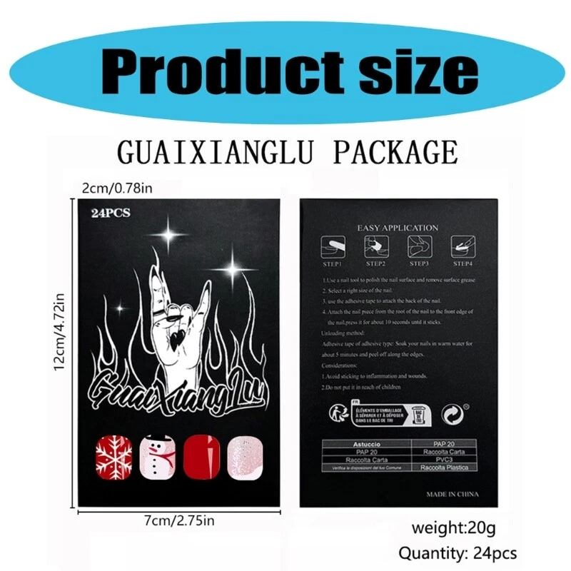 Features: Elevating your nails game with Glitters Christmas Press on Nails, short square false achieve a salon quality sophisticated look. Craft from friendly ABS, both fashion and convenience, ensuring a natural look and comfortable fit for daily wear and party use. Great for fashion individuals and beauty enthusiasts, these artificial on nails cater to those who love to expressing their personality through their manicure. Whether it is a Christmas parties, family gatherings, or everyday wear, these press on nails add a touch of to your fingertips for any occasion. Artificial nails, great gift for your wife, girlfriend, mother or sister. Specifications: Component: ABS Color: As picture shown Size:approx. As picture shown Quantity: 1box(24pcs, included 24tips false nails) Package Includes: 1box Christmas Press on Nails note: Please allow 1-3cm error due to manual measurement. please sure you not mind before you bid. Due to difference between different monitors, the picture may not reflect the actual color of item.