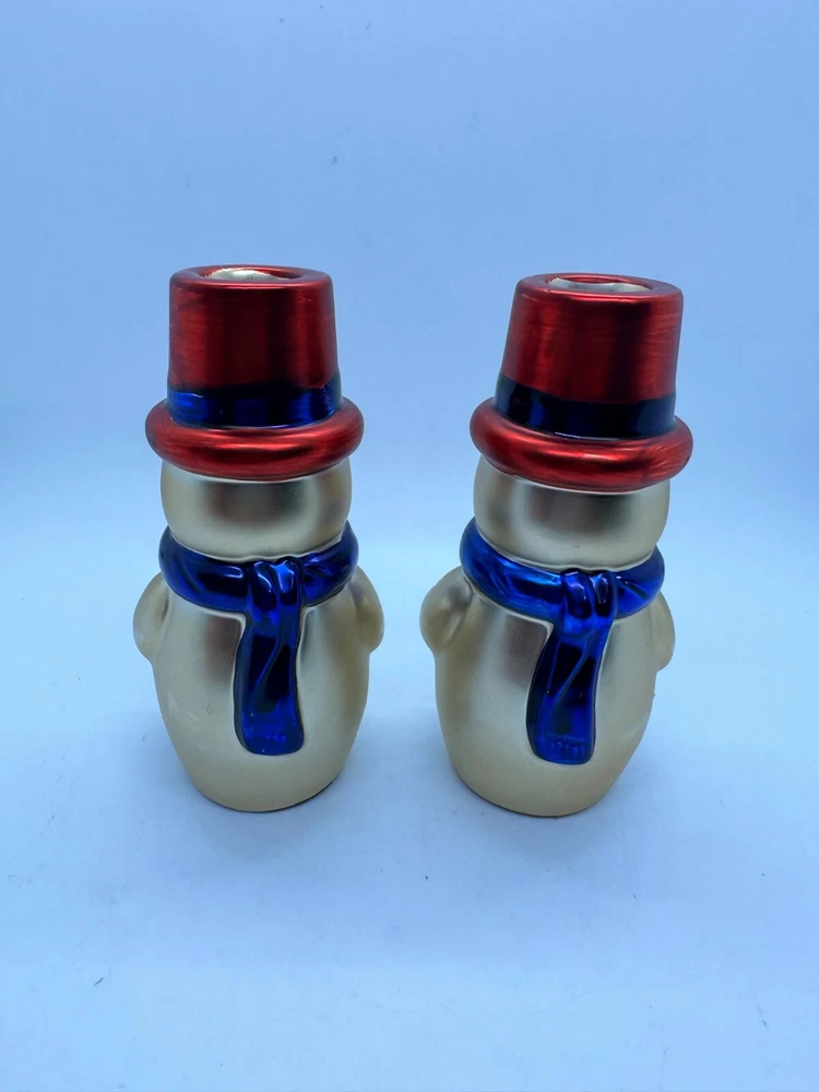 Christmas Snowman Candle Holders Cooks Bazaar Holiday Col. Goldtone Decoration