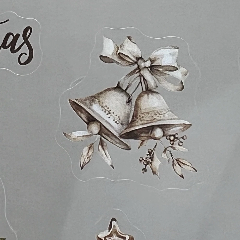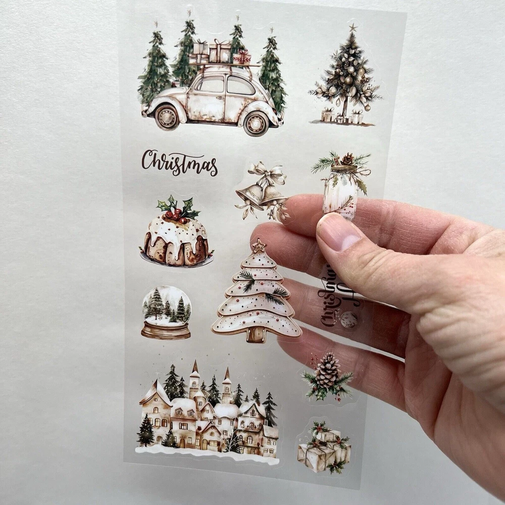 Type: PET stickers (image printed of clear flexible plastic) Color: White Theme: Christmas