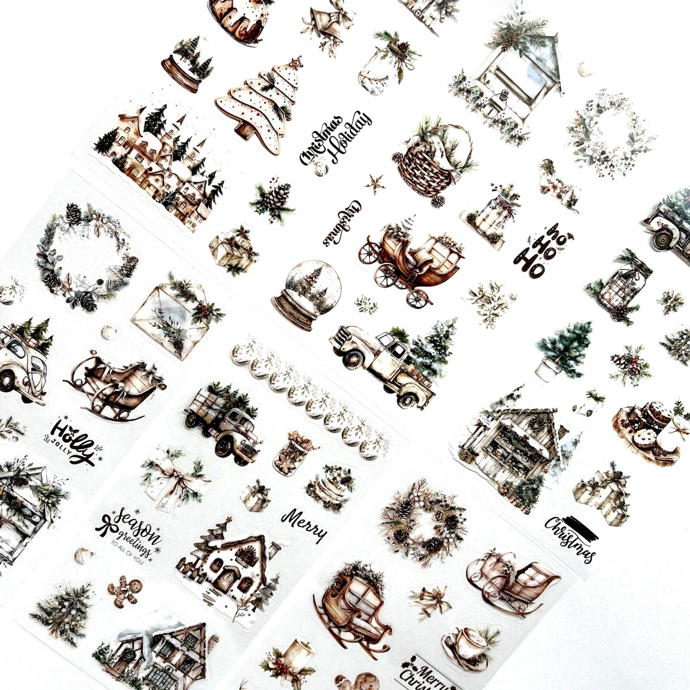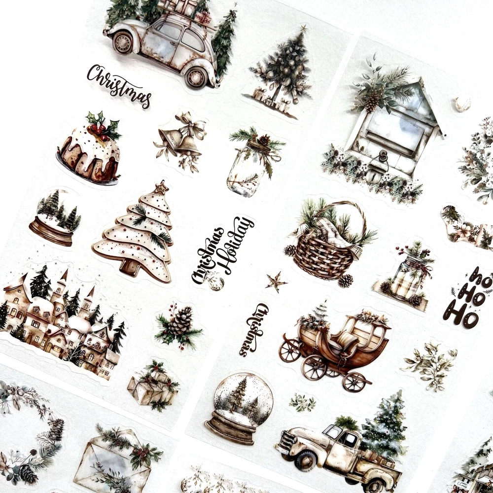 Christmas Stickers 6 Sheets White Junk Journal Collage Planner Scrapbook Cards