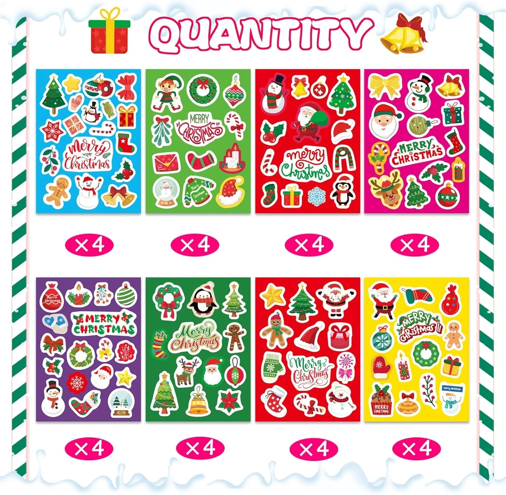 Store New Arrivals Add to Favorite View Feedback Contact Christmas Stickers for Kids and Adults Christmas Face Stickers Bulk Cute Party Stickers for Pumpkins and Water Bottles Santa Claus Deer Snowman Stickers Holiday Party Favor Supplies Art Craft Gifts Description Item model number Christmas Stickers Unit Count 1.0 Count Style 32 Christmas Stickers Color Red, Green, White, Blue Material Vinyl, Plastic Country of Origin China Item Weight 1.44 ounces Theme Christmas Age Range (Description) Kid Occasion Christmas Package Dimensions 7.17 x 5.16 x 0.35 inches 【Christmas Stickers for Kids】This kids Christmas sticker kit includes 32 pieces of 8 styles of Christmas stickers, 4 pieces of each. Full of Christmas elements,Christmas tree,Santa Claus,elk,snowman,Christmas stockings,and the words "Merry Christmas"and so on.cute Christmas stickers make children and adults have more fun. 【Christmas Stickers for Kids Bulk】These funny Christmas stickers are made of high quality material with smooth wrinkle-free surface,waterproof and reusable. Christmas stickers can personalize your water bottles,invitations,cell phones,laptops,luggage,skateboards,fridges,windows and more. 【Christmas Party Supplies】Christmas stickers are easy to use and perfect for Christmas party favors, candy bags, gifts bags, gifts tags, cookie bag fillers, candy bag fashion add-on gifts. Ideal Christmas gifts for children and teens. 【Best Gifts for Kids】These adorable Christmas stickers are definitely a great surprise for kids, and it's a perfect gifts for a Christmas party or a reward for kids. perfect for boys and girls to interact in the holiday lineup. 【Fun Christmas Supplies】These Christmas party stickers are perfect for keeping the kids busy at the Christmas party.Also,we appreciate your trust and want to make sure that everything works for you. Product Description Funny Christmas Party Supplies---Christmas Stickers and Christmas Face Stickers Christmas Stickers-- Holiday Party Favor Supplies Christmas is almost here,do you have any good ideas for an Christmas party to keep children busy? Our Christmas party sticker game is sure to fit the bill! Super Funny Christmas Party Supplies Christmas face party stickers Cute Decorations Create your personalized Christmas stickers. Finished stickers can be used for water bottles, refrigerator stickers, notebook decorations, birthday gift bags, windows, walls, doors, invitations, thank you cards, and more. There are classic Christmas tree,Santa Claus,elk,snowman,Christmas stockings and other elements, with a strong Christmas atmosphere! Rich mix of designs Package includes. 32 pieces of Christmas stickers /32 pieces of Christmas make a face stickers for kids 8 styles. Each Christmas face sticker size is larger: 8.5*6.3 inches. Each Christmas sticker size is larger: 7.1*5.1 inches. Christmas sticker packages are perfect for children as holiday gifts,Party Favors,school crafts. Children can exercise creativity,imagination and hand-brain coordination. Christmas stickers for treat bags! Christmas Stickers for Kids- Art Craft Gifts ABOUT US We offer the best prices around on high quality products. Our E-store includes media such as books, movies, music and games while offering electronics, toys, sporting apparel, clothing, tools, general home, garden items and more. SHIPPING We are always working hard to ensure your package arrives as soon as possible. Please understand that some factors like weather, high postal traffic, and the performance of shipping companies are outside of our control. We offer free shipping to the lower 48 states and ship within 2 business days of payment, usually sooner. We do not accept P.O. Boxes. Please provide a physical address. RETURNS We offer a 30-Day Return Policy on items which you are not completely satisfied with. You have the option for a full-refund or an exchange of the item. No returns are available on items shipped outside of the USA. PAYMENT We accept PayPal. CONTACT US This page content is yet to come Please ad us to your favorite seller and visit again later Thank You CUSTOMER SATISFACTION We try our very best to make sure every customer is completely satisfied. If there's a problem, message us! We're happy to help.
