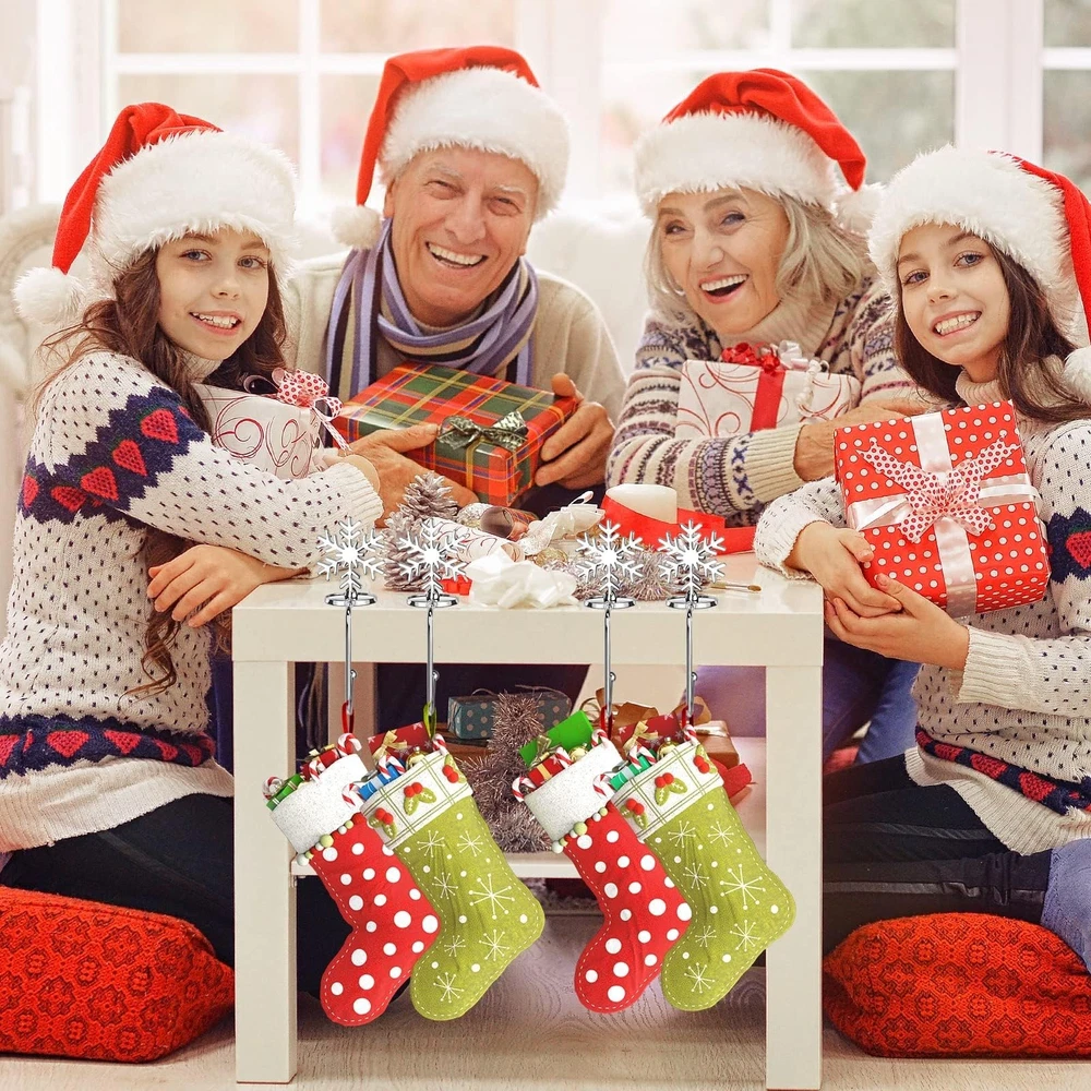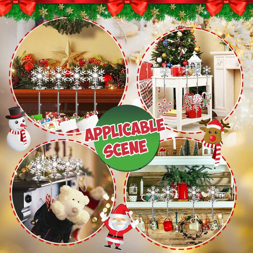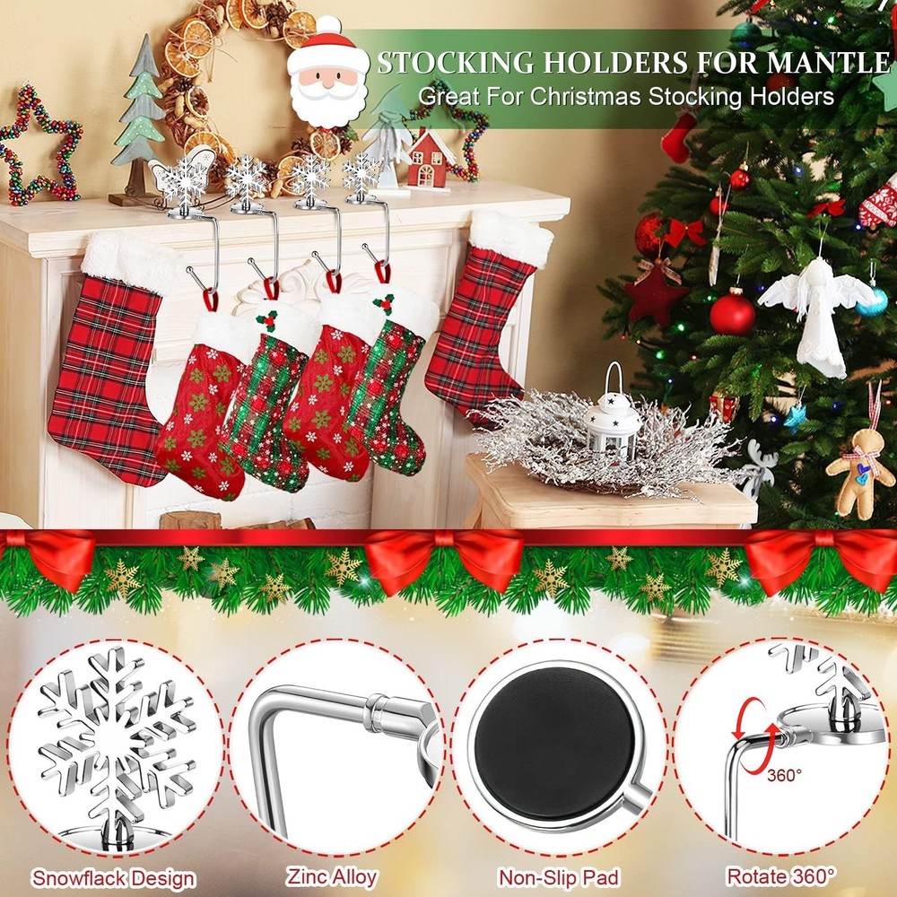 Christmas Stocking Holders for Mantle Lightweight, Small Snowflake Stocking Holder Set of 4, Rotatable Fireplace Stocking Hangers Suitable for mantels Less Than 2.7 inches(Snowflake) Product Details Item Shape: Snowflake Brand: Sereliy MPN: 10210 UPC: 776580934867 EAN: 0776580934867 Color: Silver Material: Zinc Brand: Sereliy Item dimensions L x W x H: 4.13 x 4.13 x 2.76 inches Mounting Type: Weighted Base Item Thickness: 2.76 Inches Maximum Weight Recommendation: 10 Pounds Number of Hooks: 4 Number of Pieces: 4 Manufacturer: Sereliy UPC: 776580934867 Product Dimensions: 4.13 x 4.13 x 2.76 inches Item Weight: 8.8 ounces Item model number: 10210 Batteries required: No Included Components: Case 4 Pack Stocking Hangers for Mantel Suitable for mantels less than 2.7 inches thick.Small Christmas stocking holds measure 6*2.7 inches, small size but very sturdy and can withstand roughly 10 pounds of weight. Anti-Slip Design The bottom disc of the christmas stocking holder has a rubber pad and an anti-slip design, so you don't need to use tape to ensure that your Christmas stockings and gifts hang securely without falling. High Quality Material These christmas stocking hangers are made of zinc alloy with smooth touch, very durable and don't worry about rust and corrode, can be applied for a long time. 360 Rotatable DesignThe snowflake stocking holders for mantle can be rotated for easy storage and continued use the next Christmas. Wide Application Stocking hangers is widely used to hang Christmas stockings on the mantel and fireplace to add some festive atmosphere, perfect for Christmas party decoration. It can also be used to hold different handbags in daily life.