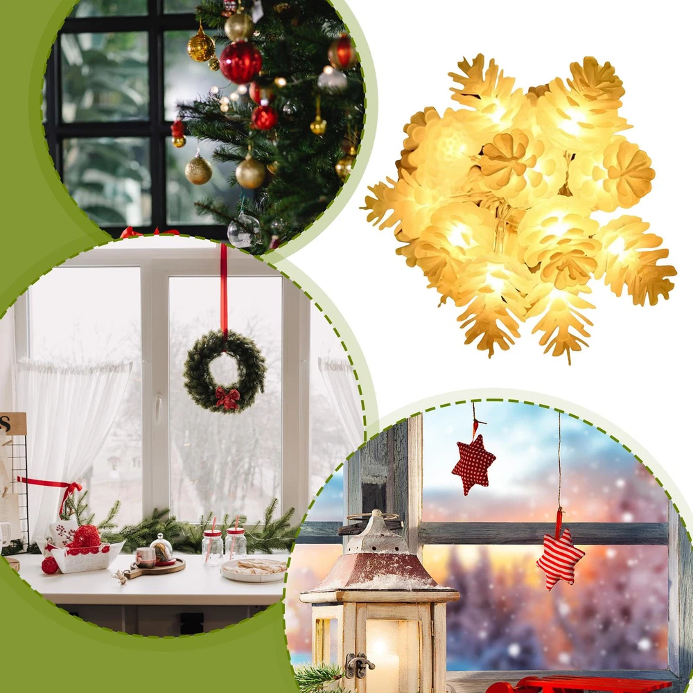 Bullet Points: Enhance Holiday Atmosphere: These Christmas string lights feature a multi-functional design. Use them to create a cozy holiday atmosphere indoors or outdoors. Light up your garden, illuminate your camping scene, or use them as decorations to suspend on the Christmas tree, making memories with family and friends Good Durability: Imbue your home environment with a comforting glow using our warm color light Christmas string lights. Featuring high-quality pine cone decoration and LED beads, these lights exude a welcoming feeling, making your home even more inviting and cozy Easy to Use: No more tangled cords or searching for outlets. These Christmas string lights run on batteries, making them incredibly convenient to use. Simply switching them on and create a cozy ambiance anywhere you like: no fuss, no hassle Festive Ambiance for Any Space: Give the whole area a festive atmosphere with our Christmas string lights. The flexible design allows you to freely arrange and lift any space with a unique decorative effect. The enough wire length meets your needs in different scenarios, so go ahead and transform your space Multi-Purpose Lighting: These Christmas string lights offer cozy lighting for every occasion, and are not limited to just the holiday season. Perfect for weddings, birthdays, or any special celebration, they can also be taken outdoors for activities like camping and picnics, providing multi-purpose lighting that sets the perfect ambiance Transform your outdoor space into a cozy holiday paradise with our high-quality pine cone decorated string lights! The LED beads ensure a warm and inviting atmosphere anytime, anywhere. Perfect for outdoor activities like camping and picnics, the moderate length allows for versatile usage. Create memorable experiences without breaking the bank! Specification: Product name: Christmas String Light Lamp bed: LED Usage: Christmas decor Weight: A: about 90g B: about 180g Packing List: 1 x Christmas String Light Note: Due to different lighting and screen settings, the item color may be slightly different from the picture. Due to different manual measurements, please allow a 1-2cm difference in size.
