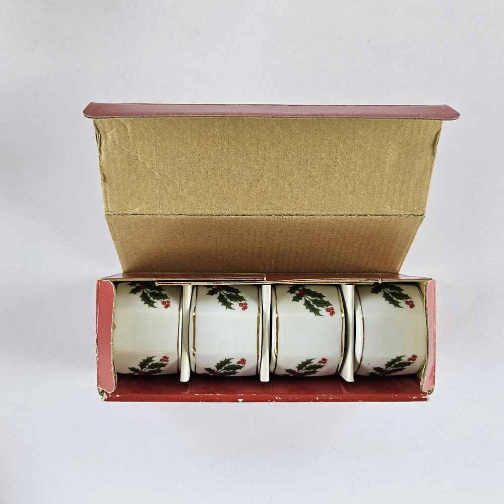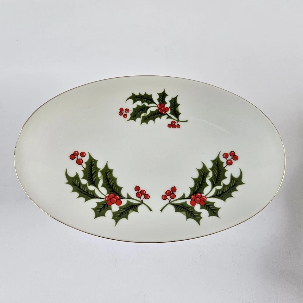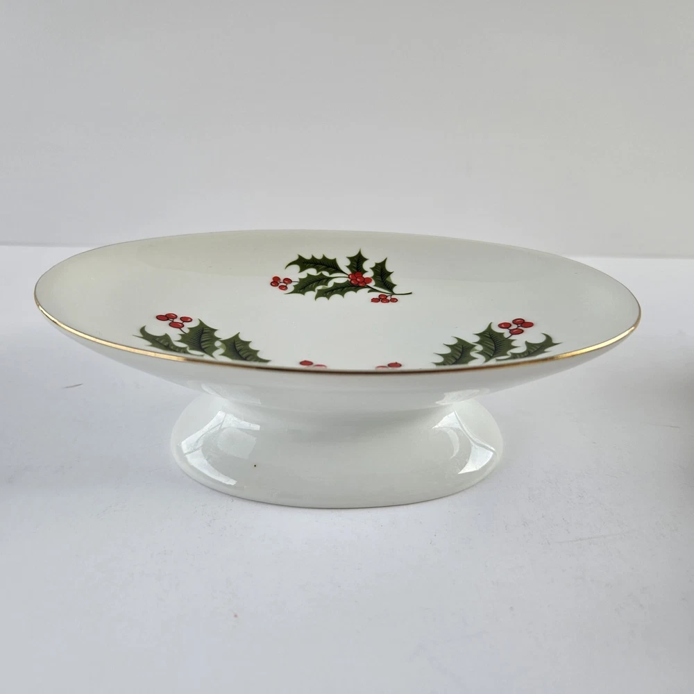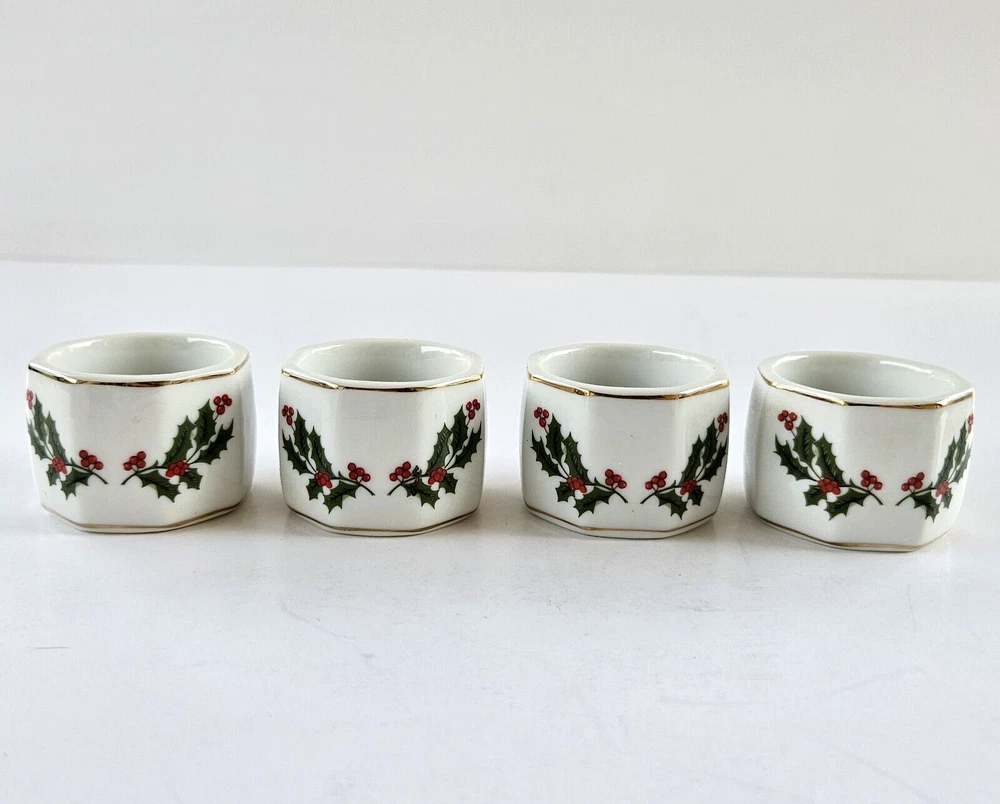 Thank you for viewing this listing. Elevate your festive table setting with this exquisite Holly Berry 7 Piece Lot, crafted from fine porcelain and originating from Japan. Each piece showcases a classic white color accented with delicate gold rims, bringing a touch of elegance to your Christmas celebrations. The collection includes a Christmas tree shaped candy/jewelry dish, soap dish, tumbler, and four napkin ring holders; designed to create a cohesive and charming display. The napkin rings come in their original box. These porcelain items are ideal for those who appreciate timeless holiday decor with a sophisticated flair. Please view the condition description and photos for additional details and, as always, feel free to reach out with questions.