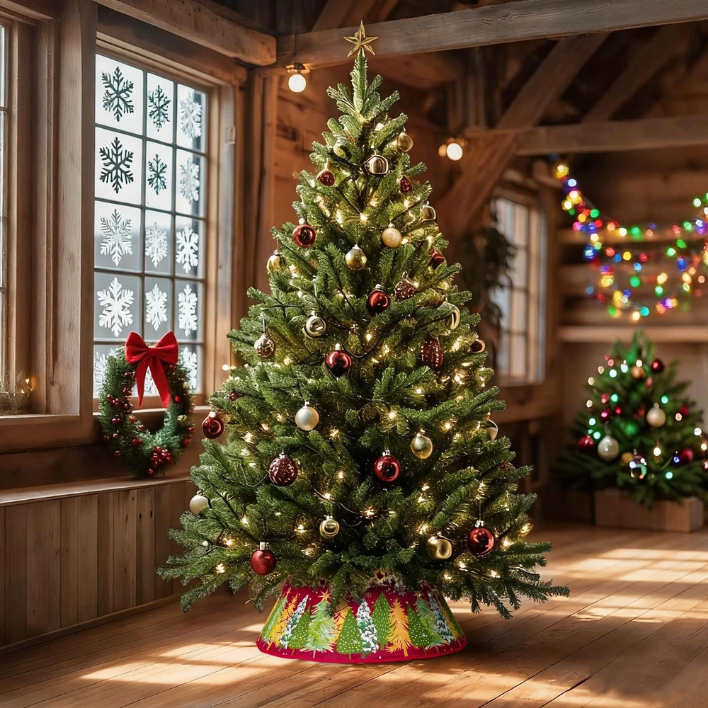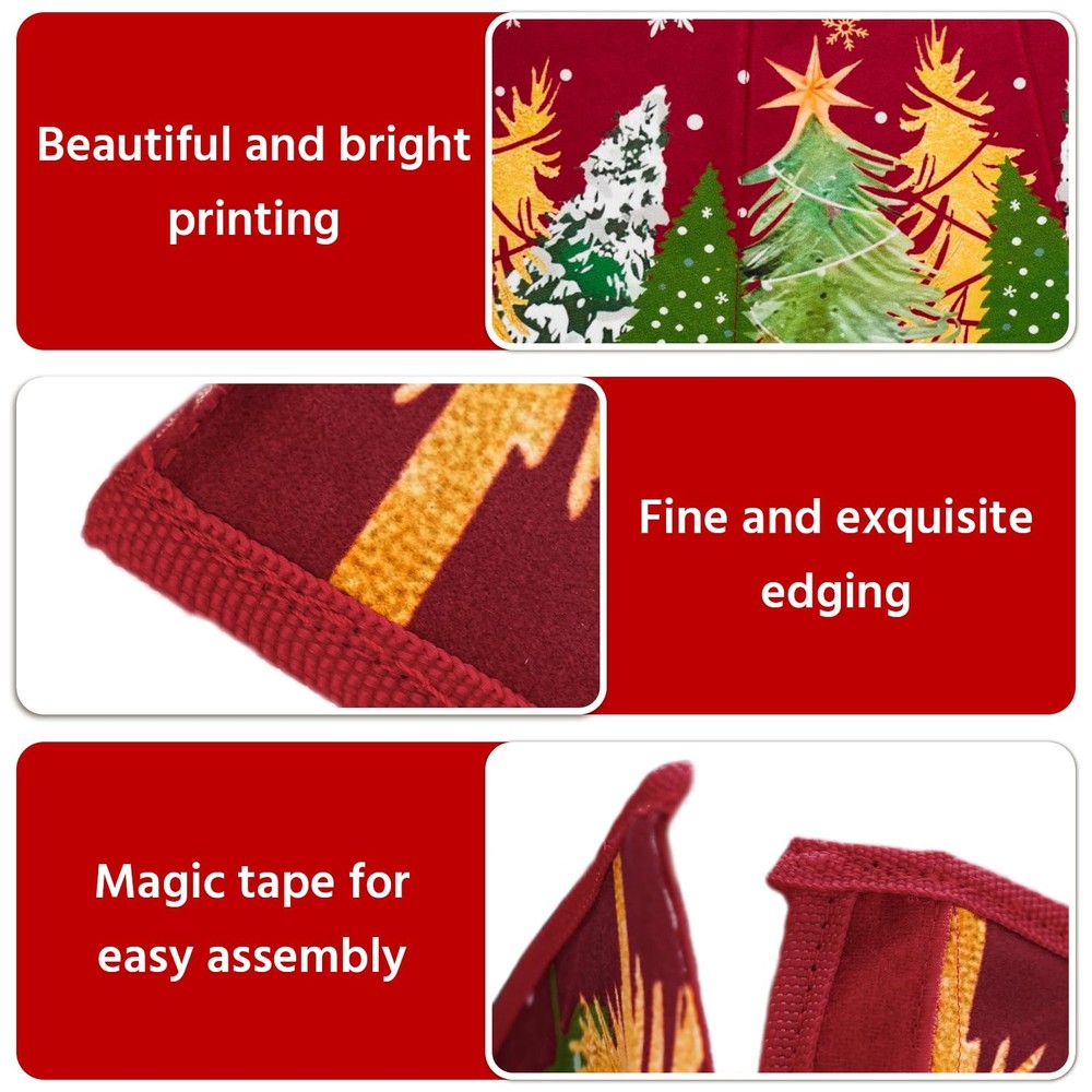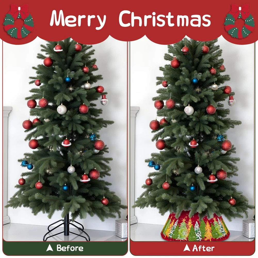 Eye-Catching Festive Pattern:Featuring a charming classic Christmas tree and snowflake design, this Christmas tree collar adds instant holiday cheer to your home decor. It perfectly various Christmas themes, from traditional to modern, making your Christmas tree the focal point of any room. Perfect Size for Most Christmas Trees:Measuring 25.6 inches in diameter and 9.8 inches in height, this tree collar fits most standard Christmas trees (4-7 feet tall). It effectively covers the unsightly tree stand, creating a neat and cohesive look without taking up too much space around the tree. Durable & High-Quality Material:Crafted from high quality velvet flannel and cardboard inside, this Christmas tree collar is tear-resistant, -free and not easily deformed, perfect for your Christmas tree decoration. The christmas tree base collar is also easy to clean, simply wipe with a damp cloth to remove dust or stains, ensuring it can be reused for many holiday seasons. Easy to Assemble & :Designed with a user-friendly velcro closure, these christmas tree collars can be assembled in minutes without any tools. When not in use, it can be folded flat into a compact size, saving storage space in your closet or storage box until the next Christmas. Multi-Scene Decoration & Ideal Gift:Not only suitable for home use (living room, bedroom, hallway), but also perfect for holiday parties, Christmas markets, hotels, and retail stores. It’s also a wonderful Christmas gift for family, friends, and colleagues who love decorating their homes for the holidays.