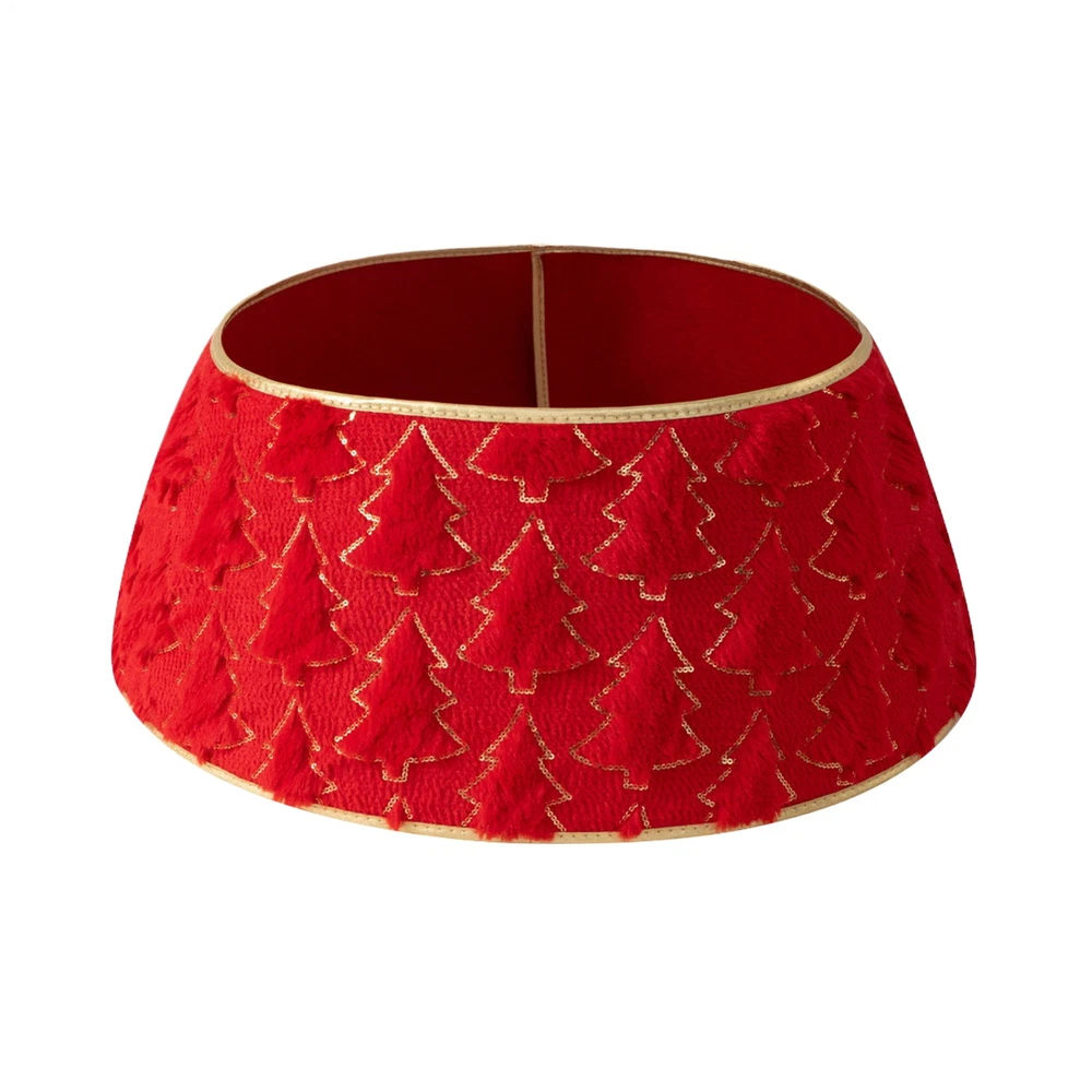 Red And Green Velvet Tree Skirt With Sequence Holly Leaves