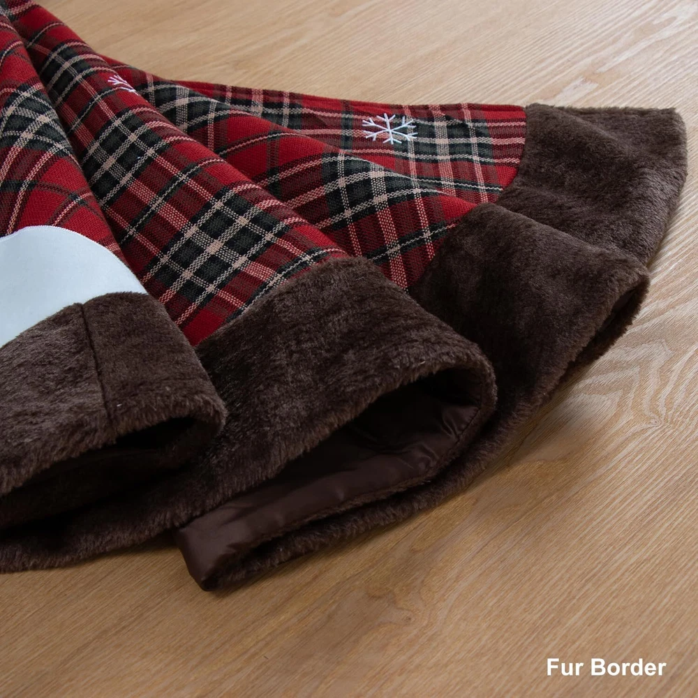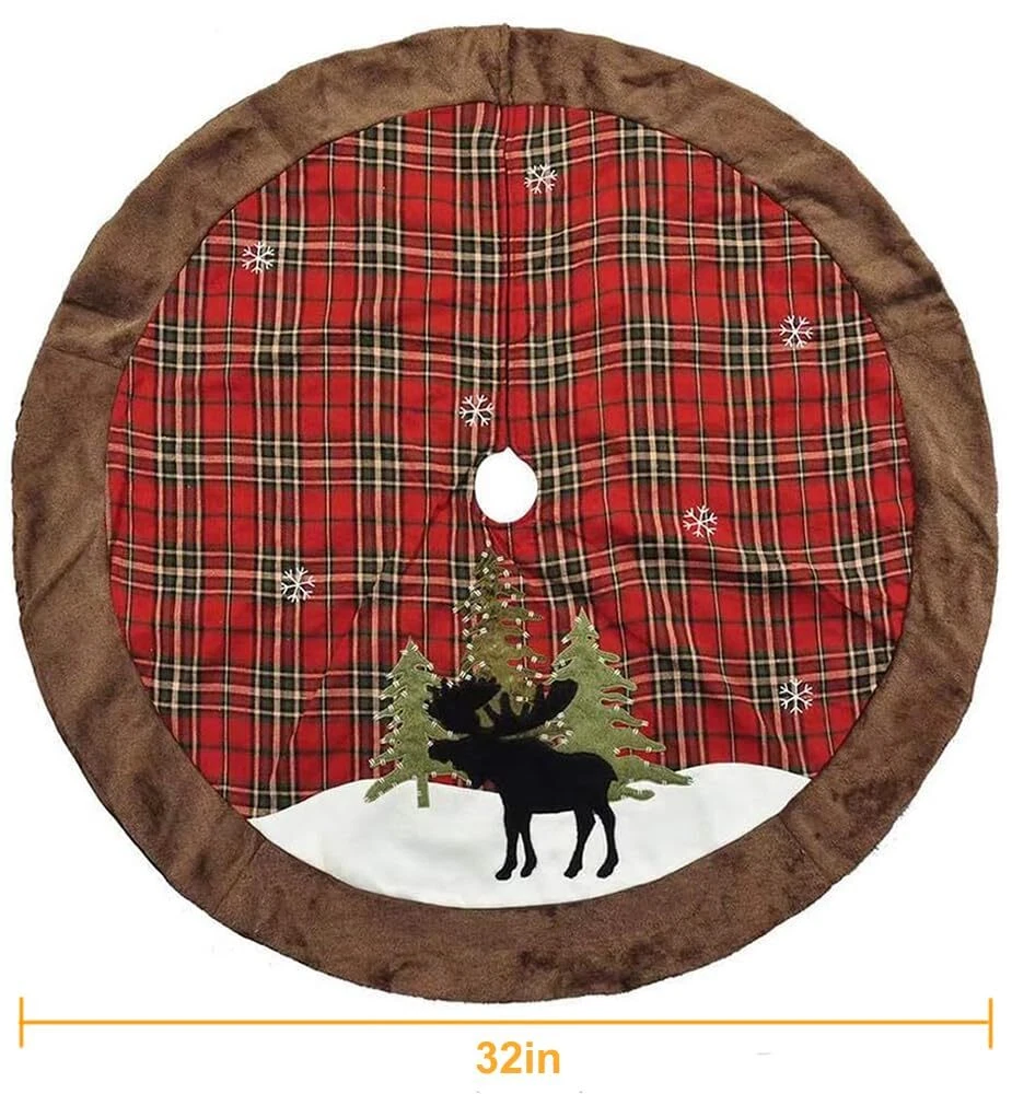 Its material and color matches any kind of wooden or tile floor. The color is low key so that it doesn't outshine the tree but at the same time adds a grand feeling to the scene. Soft and warm, the favorite spot for pets in winter, adds Christmas feel to your home. This generous tree skirt is a nice Christmas gift for your families or friends. The fur tree skirt has long-lasting durability and makes it an essential accessory for the Christmas season. After Christmas, you can use it as a home carpet. Sew carefully with double layers, not some one layer cheap quality made item. Looks wonderful, very festive, and even better with Secret Santa gifts on it under the tree. When you buy this, you'll automatically look forward to making this tree skirt the finishing touch to a lovely tree. A simple design, beautifully rendered. The mat can be used for many years. It is different from other cheap materials. The blanket is easily secured without having to bend over to tie several strings. This carpet is well made and fit around the base of the tree easily. You can place it on anywhere you like, just like living room, bedroom, garden, bar, hotel, supermarket, office or somewhere else. Product Information Material: Velete fibre External diameter: 32inch; 48inch Package included: 1x Elegant Tree Skirt Application: Christmas party, Xmas ornament, Wedding, Engagement, Anniversary, Party, Office Decoration, Festival, Commercial holiday decorations, New Year gift, Display How to choose the right size about the tree skirt? Measure the space occupied by the skirt to determine the maximum size that can be accommodated in the area. look for skirts that are roughly the same diameter as the most wide span of a tree. To perfectly decorate your tree, we recommend that the diameter of the tree skirt is at least 3 inches larger than the entire width of the tree. Enjoy Enjoy Life UNIQUE DESIGN - Unlike traditional Christmas tree skirts, this tree skirt features reindeer, Christmas tree and snowflake a. Christmas tree skirt features a red and black buffalo plaid design and have a brown fur edge. The tree skirt creates a festive Christmas night theme and brings a joyous atmosphere to your home. VELETE FABRIC - The Christmas tree skirt is made of high quality velete fabric. This burlap tree skirt has exquisite craftsmanship and traditional double-layers design. It is a thick, comfortable and soft tree skirt. Soft red plush around the tree skirt makes the decor lively and cozy. EASY INSTALLATION - Three invisible magic tapes make it easier to use. Tree skirts add color and style to your holiday decorations, while hiding those ugly tree stand. GORGEOUS FESTIVAL DECOR - It is perfect for presents and it saved more than a few ornaments which fell off the tree due to children touching the tree. Because the ornaments fell on the cloth and not on the floor directly. PERFECT ORNAMENT - In any home where a Christmas tree will be set up during the holidays, putting a beautiful tree skirt under the tree is as important as putting a shiny star on top. The tree skirt is sure to be admired from all directions.