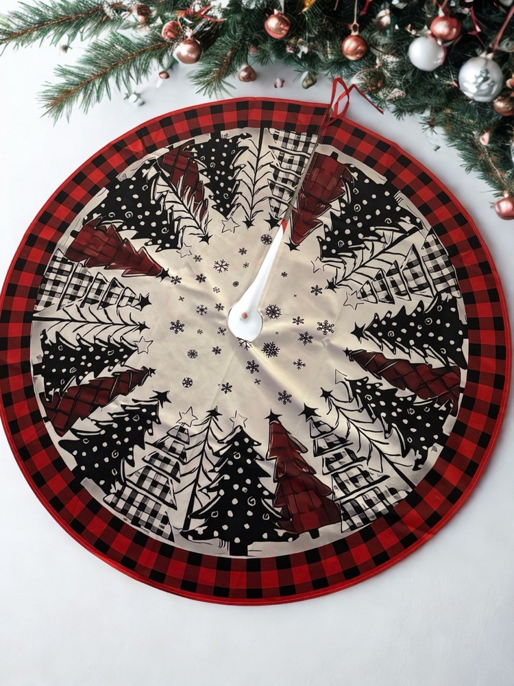Christmas Tree Skirt 47.24 Inch Red and Black Buffalo Plaid Xmas Tree Skirt – Polyester Bring a warm, rustic touch to your holiday décor with this 47.24-inch Red and Black Buffalo Plaid Christmas Tree Skirt. Made from high-quality polyester, this tree skirt is soft, durable, and designed to last for many holiday seasons. Featuring the classic red and black buffalo plaid pattern, it adds a cozy farmhouse charm to any Christmas setup. The generous 47.24-inch diameter provides excellent coverage for most standard and large trees, helping to hide unsightly stands and catch any fallen needles or decorations. Easy to install with a convenient slit and tie closure, this tree skirt wraps neatly around your tree for a clean and finished look. Features: • Material: 100% Polyester • Size: 47.24 inches (120 cm) diameter • Design: Classic red and black buffalo plaid • Soft, durable, and reusable • Easy to attach and remove • Perfect for farmhouse, rustic, or traditional holiday décor