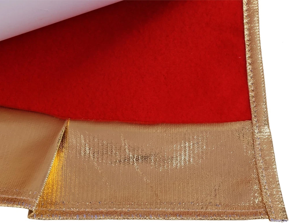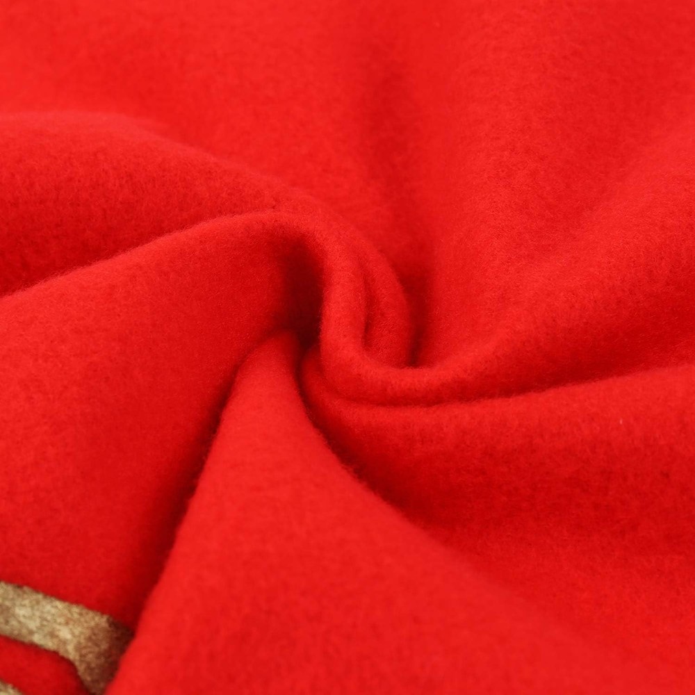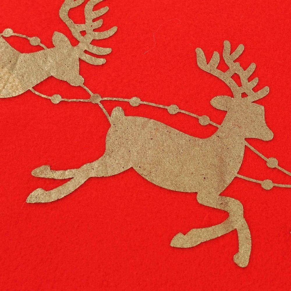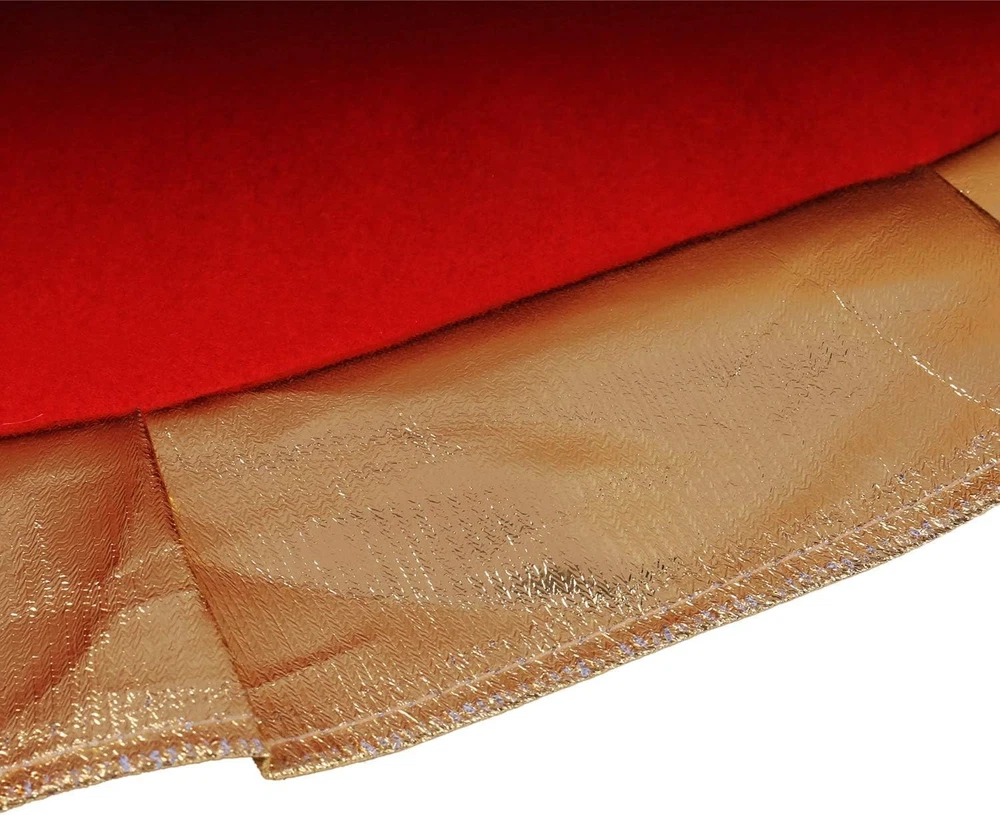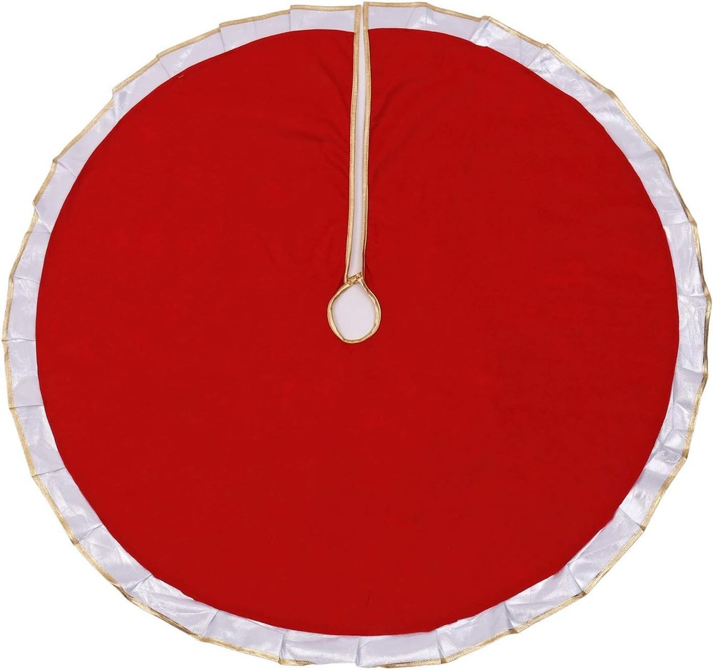 Christmas Tree Skirt with Gold Rim 36",Flannelette Santa Reindeer Decoration for 6Ft/ Xmas Tree MATERIAL:Made of Flannelette,Nonwovens, Soft comfortable and durable. DESIGN: A red tree skirt with a golden rim is printed right in the middle with Santa Claus delivering gifts to every family in a reindeer car, with a strap at the opening for fixing the tree a perfect match this is! SIZE: This model is 36in and it is recommended to use a Christmas tree 5ft,6ft, pay attention to the bottom width of the tree and select the appropriate tree you have any questions, please contact me and we can recommend them to you. FUNCTION: We have thickened this tree skirt so that you don't have to worry about the sap dripping on the floor and carpet More Christmas home decorations, warmly welcome to visit our store, thank you.