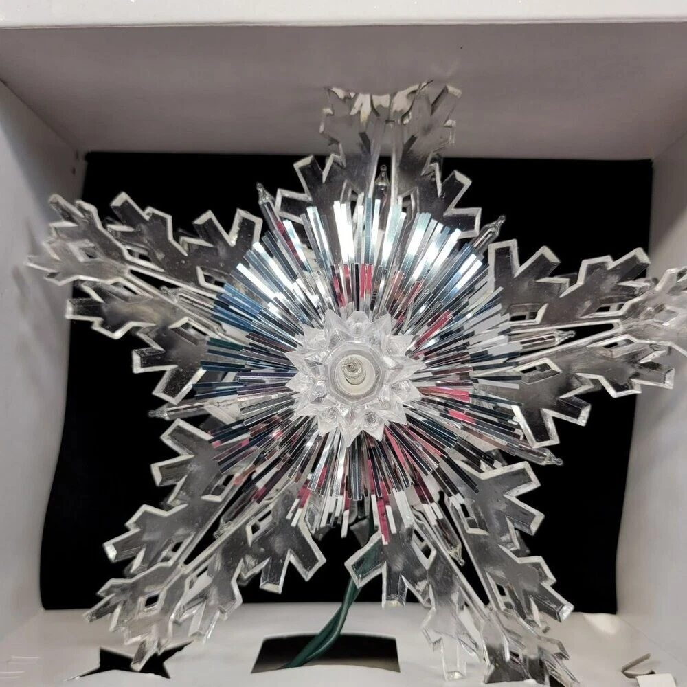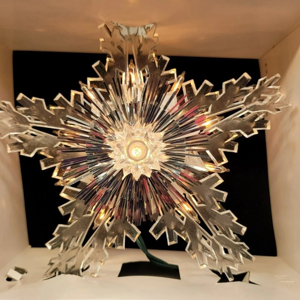 Christmas Tree Snowflake Tree Top Trim A Home Lighted Clear Vtg