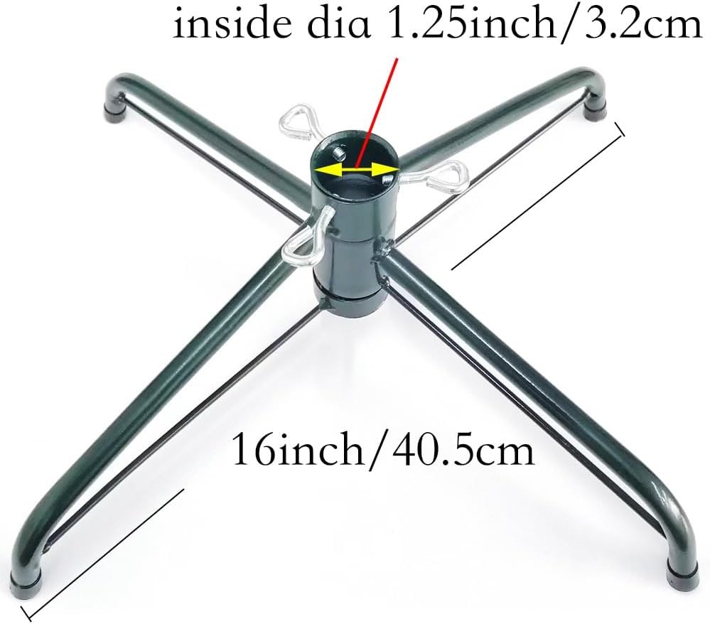 NOTICE:Suitable for artificial trees whose height less than 180cm( 6' ) , dia less than 1.9-3.2cm/0.75-1.25". Bottom Length: 40.5cm/ 16". 4 Legs fold flat for storage. Three thumb screw included. Material: Made of high quality iron.