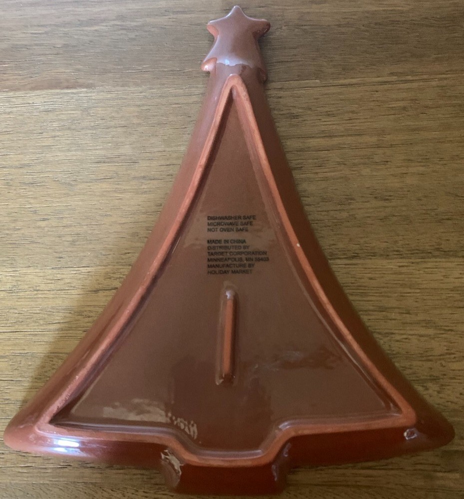 ChristmasTree ceramic candy dish from Target. The dish features a star-shaped figural design on the top. The glossy finish and contemporary style make it a perfect addition to any room in your home. Measuring approximately 10 inches in length, 8 inches in width, and 10 inches in height, this candy dish is perfect for displaying on a table or shelf. It comes in a beautiful green, white, and red-ish color combination that will complement any Christmas tree decor. Your purchase will be packaged with care and shipped within 24 hours.