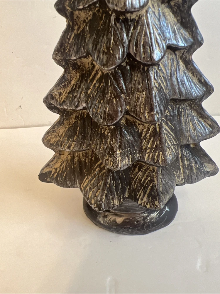 This 10-inch height Christmas Tree tabletop decor is made of plastic in a brown and light brown color. Perfect for adding a festive touch to your home during the holiday season, this seasonal decor is ideal for placing on a tabletop or shelf. With its compact size and charming design, this plastic Christmas tree is sure to bring a touch of holiday cheer to your space.