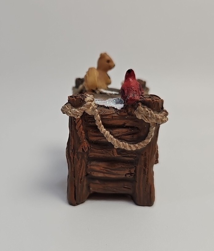 This adorable resin woodpile scene adds such cozy charm to my Christmas village! The lifelike details—the little cardinal, playful squirrel, and stacked logs—create a perfect winter woodland vibe. It’s sturdy, well-painted, and fits right in with my other holiday decor. A must-have for anyone who loves festive miniature scenes!
