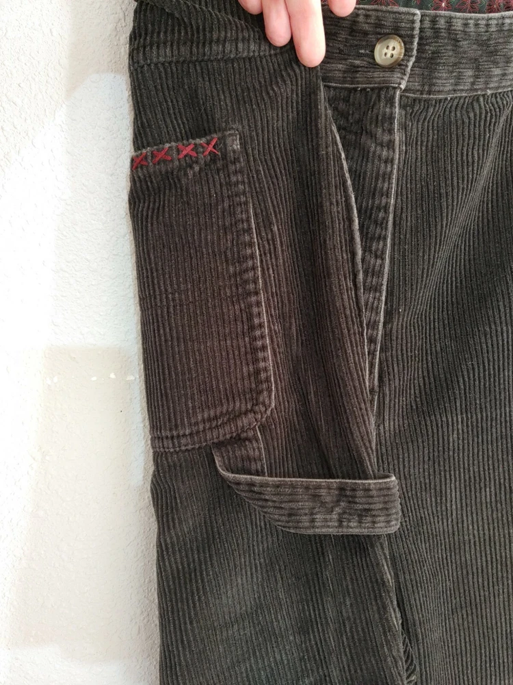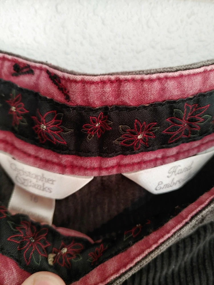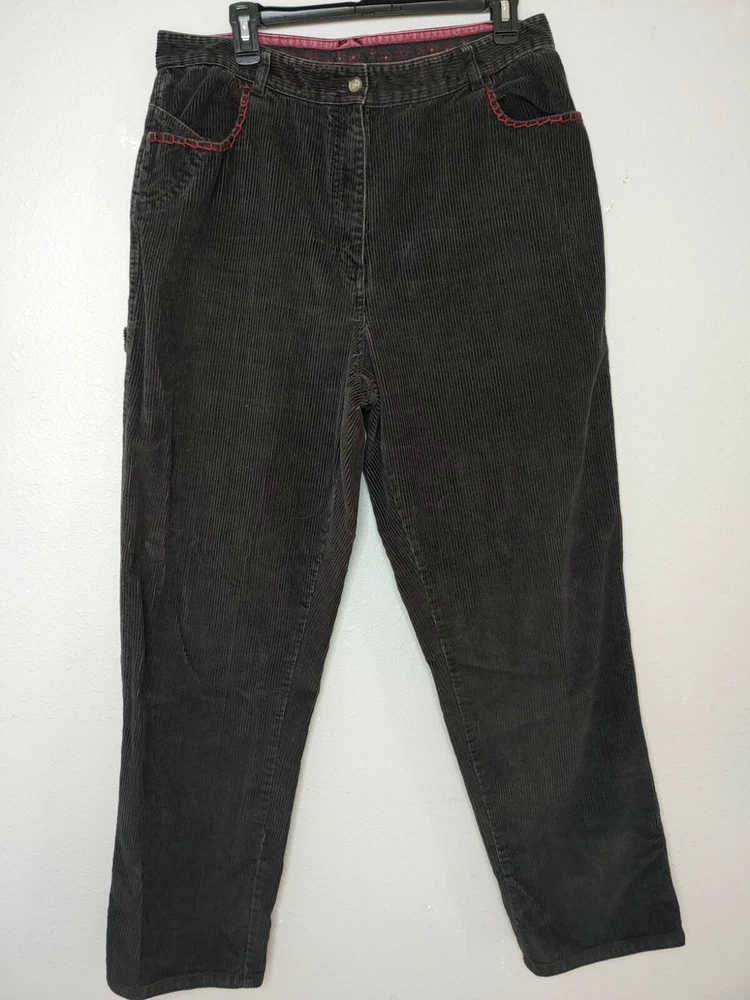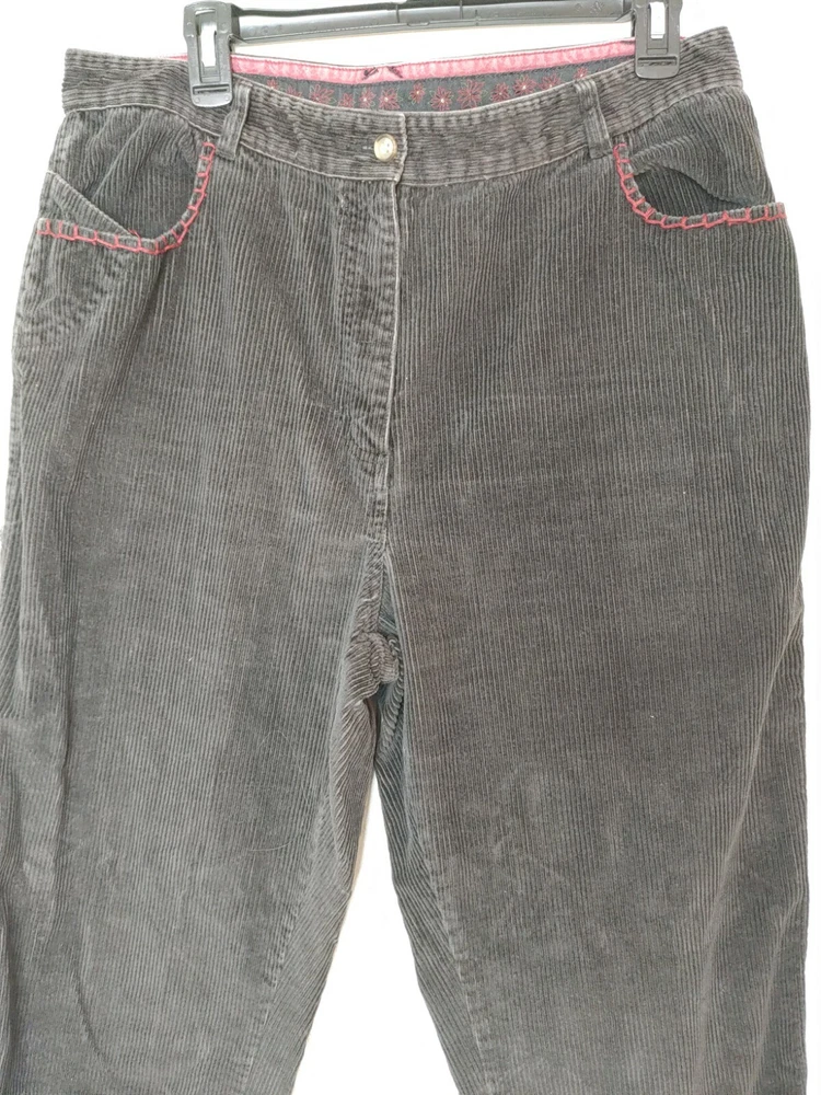 Christopher & Banks Corduroy Pants Womens 16 straight Embroidered Brown 34x30.