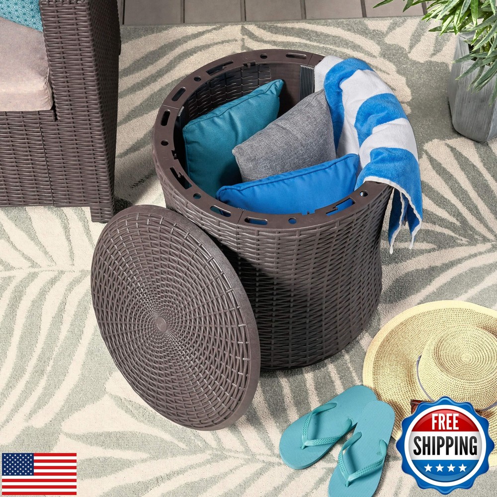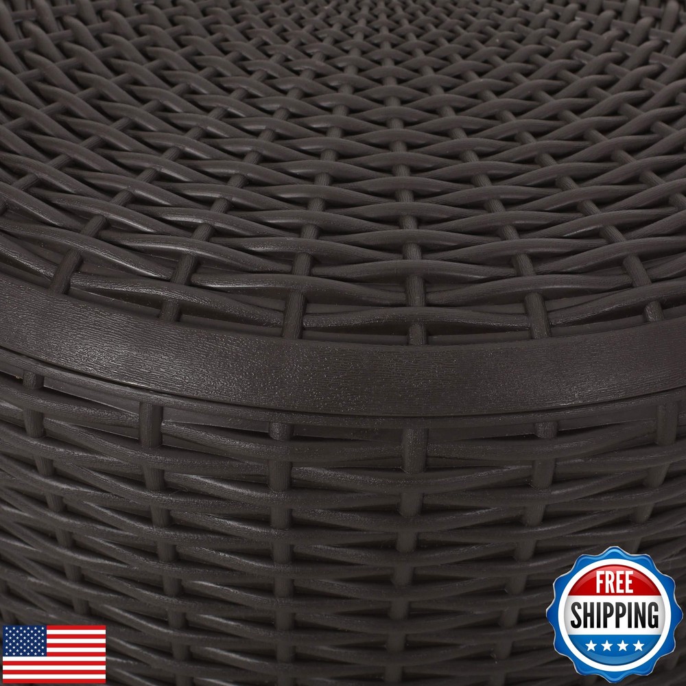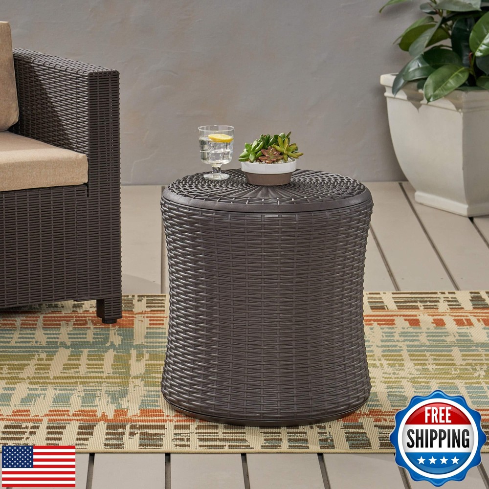 Christopher Knight Home 312340 Wallice Outdoor Patio Table, Dark Brown Features POLYPROPYLENE RESIN: Created with high-quality, specially designed polypropylene, our side table is made to be highly durable and weather-resistant. Each individual component of our polypropylene blend is specifically chosen to create a unique mixture that ensures that your product is of the best quality. STORAGE SPACE: This table features convenient water-resistant storage space that is covered by a twist and lift lid. This allows you to store your pillows or blankets and still have easy access. WEATHER-RESISTANT SURFACE: Our table consists of weather-resistant material, known to repel water and resist sunlight. This durable table offers easy maintenance, emphasizing its functionality and convenience. TOOL-LESS ASSEMBLY: Some easy assembly is required for this side table. With simple snap-and-click assembly, there are no tools required and you can be ready to go in approximately 30 minutes or less. All instructions needed for assembly are included or you can download digital copies of the instruction guide by scanning the QR code available in the listing online. WICKER-LIKE TEXTURE: Our side table mimics an elegant woven design that brings a homey atmosphere to your outdoor space. Our polypropylene material uses a 3-D pattern to create a texture that has the appearance of wicker and is also made to withstand outdoor weather without rusting or corroding. Shipping Free & Fast Shipping: We offer free shipping to most of the USA with a normal delivery time of 3-7 days. However, due to the current situation, additional delivery time (up to 3 weeks) may be required for some items. Alternative Carriers: We may use alternative carriers (e.g., USPS, FedEx, UPS) to ensure your package arrives safely and on time. Due to the use of multiple carriers, we are unable to provide a tracking number automatically. Handling Time: Orders are processed and shipped within 1-2 business days of receiving cleared payment. Shipping Restrictions: Shipping to Alaska, Hawaii, Puerto Rico, Guam, and other US territories may incur shipping charges or delivery restrictions. Please contact us before ordering, or your order can be refunded/cancelled. State Restrictions: Certain items may not be shipped to California due to state regulations. Contact for Tracking Updates: If you require tracking updates or have any concerns about the delivery of your order, please feel free to contact us, and we will be happy to assist you. Return Policy 30-Day Hassle-Free Returns: If you are not completely satisfied with your purchase, you can return the item for free within 30 days of receiving it for a full refund or exchange. Easy Return Process: Contact us, and we will provide you with a prepaid return shipping label and detailed instructions. No Restocking Fee: There are no restocking fees for returns. However, the buyer is responsible for return shipping costs if the return is not due to a seller's error. Refund Processing: Refunds will be processed within 1 business day of receiving the returned item in its original condition. Payment We accept all major credit cards, PayPal, and Apple Pay for your convenience. Your payment information is secure and encrypted to ensure a safe and seamless transaction. Please complete your payment within 3 days of purchase to avoid any delays in shipping. Feedback Your feedback is extremely important to us. We strive to provide the best products and customer service possible. If you are satisfied with your purchase, please take a moment to leave us a positive review. If you have any concerns or issues with your order, please contact us before leaving negative feedback. We are committed to resolving any problems and ensuring your satisfaction. Contact Us If you have any questions or concerns, please feel free to reach out to our customer support team. You can contact us through the eBay messaging system. We are available Monday to Friday, 9:00 am to 5:00 pm EST, and we will do our best to respond to your inquiry within 24 hours. Thank you for supporting our small family business!