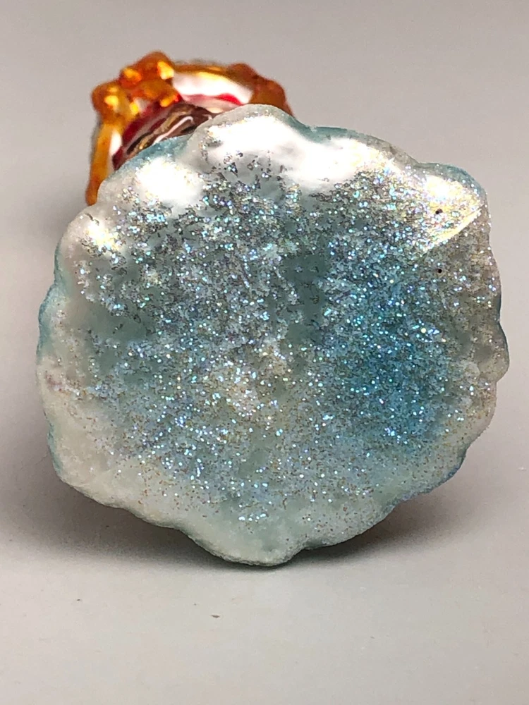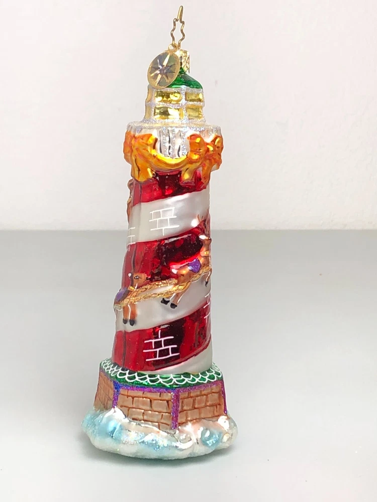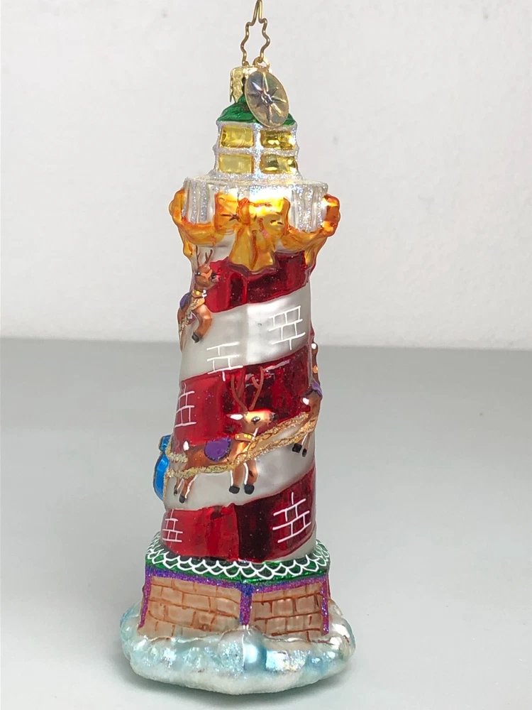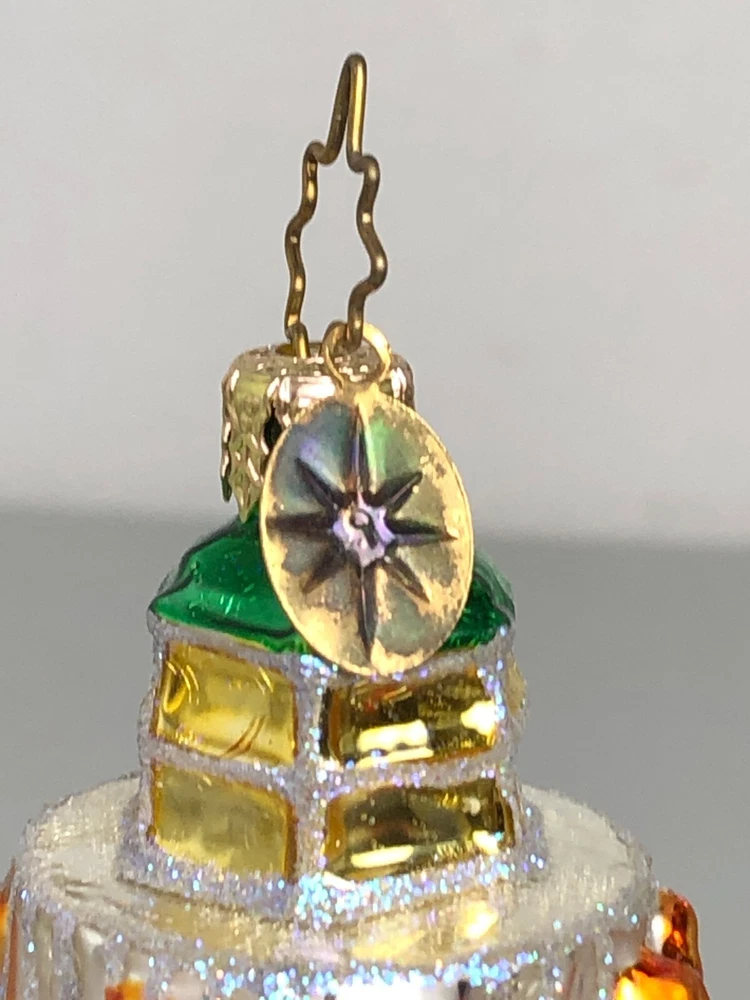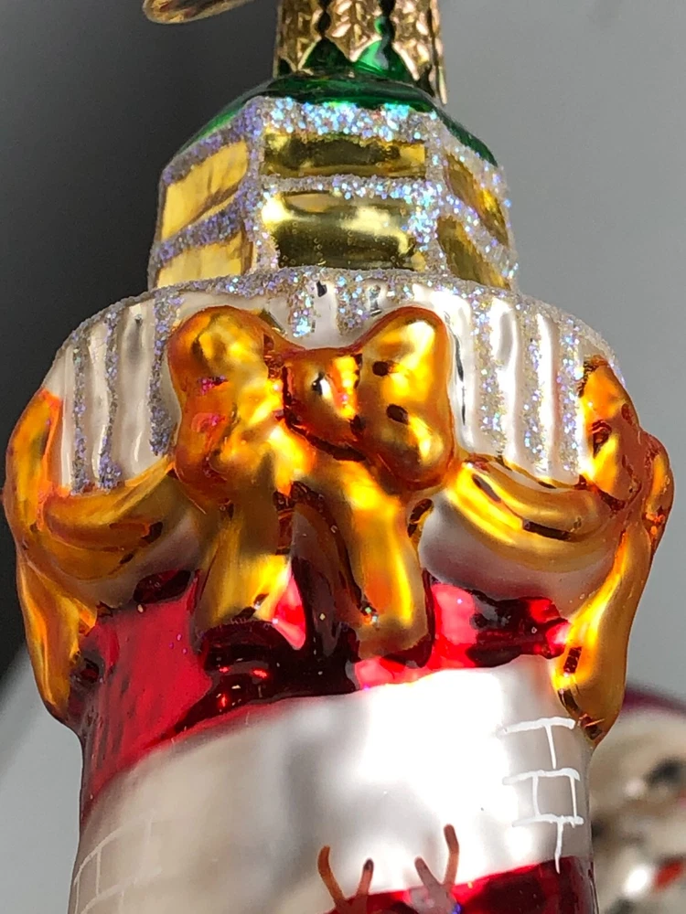 No Box. Does have some wear. Some wear on the bows and some crazing on the green top. Still a very lovely peice.