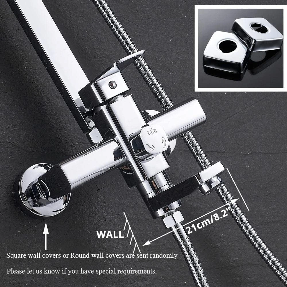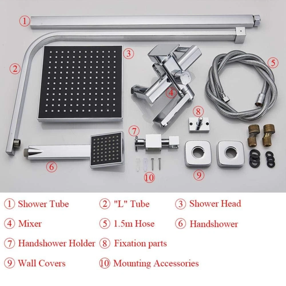 Product description Shower Head Material : Stainless Steel Finish: Chrome Mounting:Wall Mounted Hand Shower Material :PVC Shower mixing valve:Brass Shower Slide Bar :Brass Shower head :8"(20cm*20cm) Hand-held shower come with 1.5M (59")hose Hand Shower Hose Material:Stainless Steel Minimum pressure requirement 1 Bar Easy to install G1/2" standard connect Distance of center to center:13.5cm-17cm(5.3"-6.7") can be adjustable Faucet height: 85-124cm(33.46"-48.81") can be adjustable Water flow: 1.8 GPM 5 Years warranty Shipping Usually shipment can be arranged within 1 working days after receiving payment. We ship according to the address on PayPal. (After you make the payment, PayPal will send us an email automatically, informing us the payment and shipping address.) So please make sure your address on PayPal is the right one.We do not ship to PO.BOX address Mail transit time is best estimated, but not guaranteed. As transit time varies. Contact us If you have any questions, please be free to contact with us by eBay massage,we will answer your questions ASAP. Feedback I describe items as well as I can. If I have missed something, please let me know. Please e-mail me before leaving feedback if you are unhappy with your item, so we can work it out. International Buyers – Please Note: Import duties, taxes, and charges are not included in the item price or shipping cost.