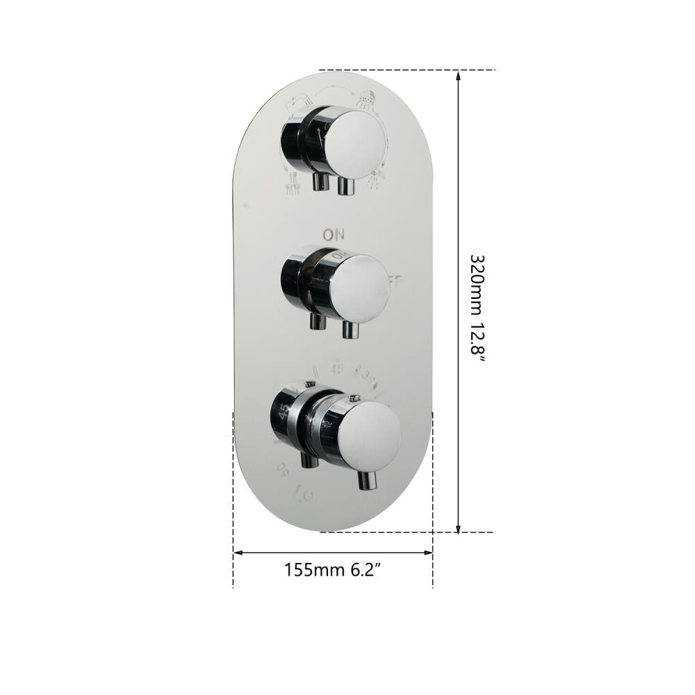 Brand new in box ready to ship. Material: stainless steel and brass Finish: chrome polished Ceramic Disc Cartridge Thermostatic control Size:320×130 mm 12.8" * 5.2" Wall mounted install 1/2" stander valve fittings Comes with 12 months manufacture warranty Brand new in box ready to ship. Material: stainless steel and brass Finish: chrome polished Ceramic Disc Cartridge Thermostatic control Size:320×130 mm 12.8" * 5.2" Wall mounted install 1/2" stander valve fittings Comes with 12 months manufacture warranty Model Control Value Country/Region of Manufacture China Number of Handles 3 Material Brass Installation Wall Mount Type G 1/2" Features Mixer MPN Does Not Apply Finish Chrome Brand cheerup_dd