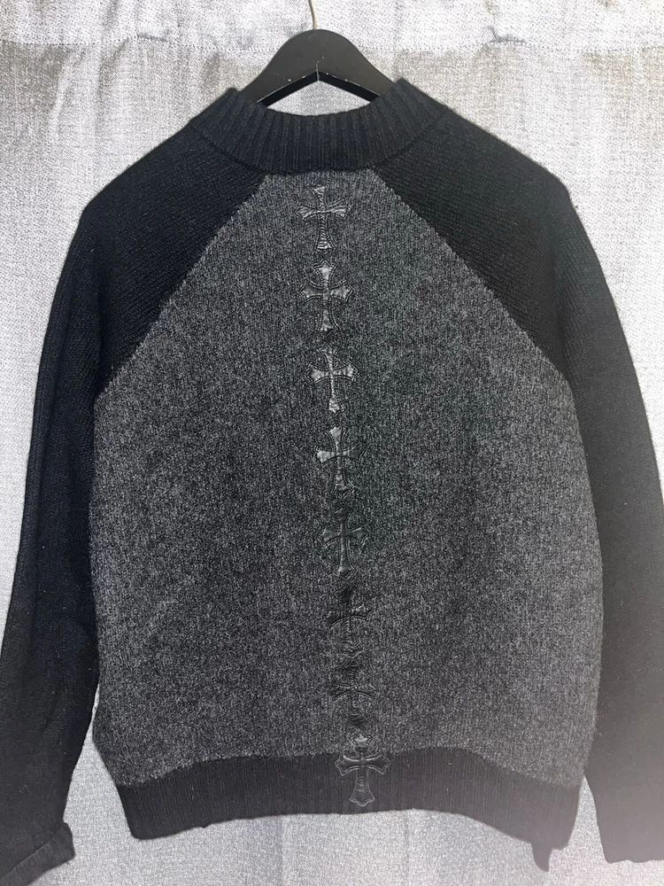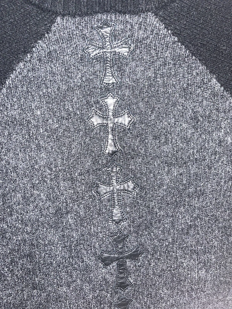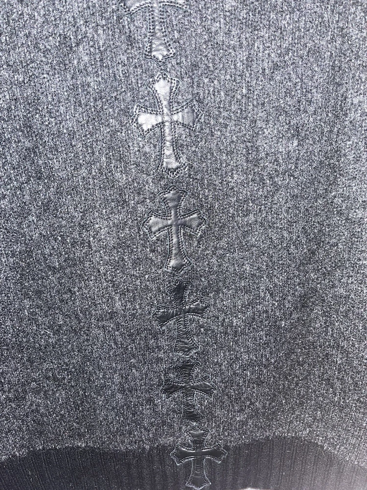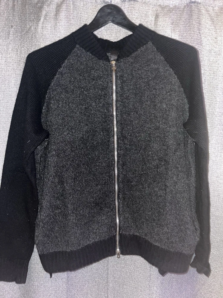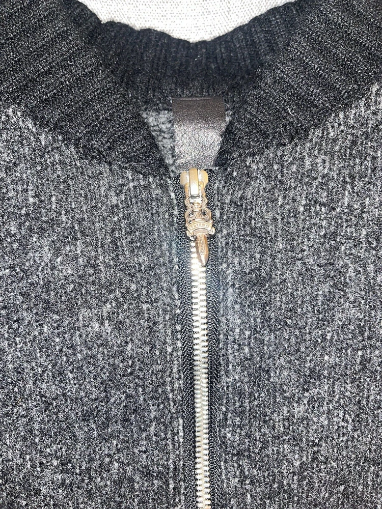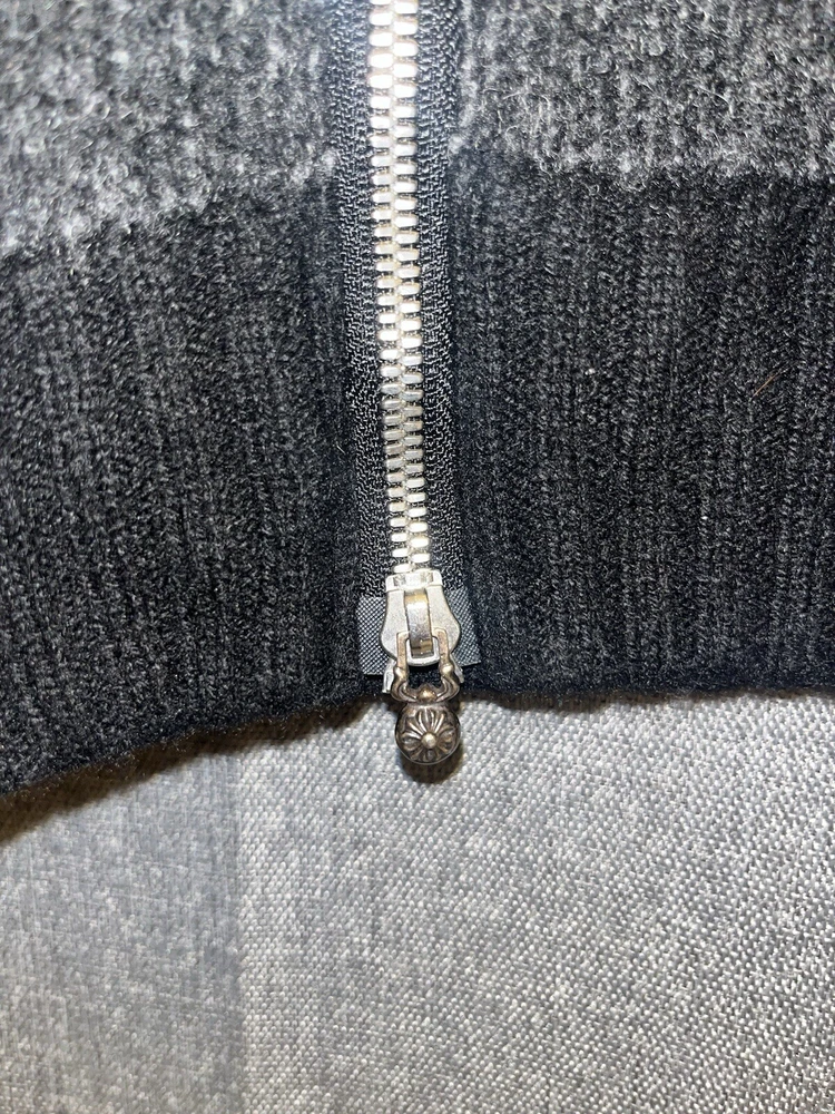 Chrome Hearts Cashmere Zip Up Sweater Grey/Black Mens Size XL