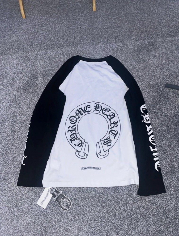 Authentic Chrome Hearts Horseshoe Long Sleeve T-Shirt Size Large - Black/White Colourway Made In USA Condition: New Without Tags Never Worn, Only Tried On. Comes With Original Chrome Hearts Tag String + Paper Tags (See Photos). No Stains, No Cracking, No Fading - Excellent Condition. Trusted Seller, Fast Dispatch. 100% Authentic Chrome Hearts.