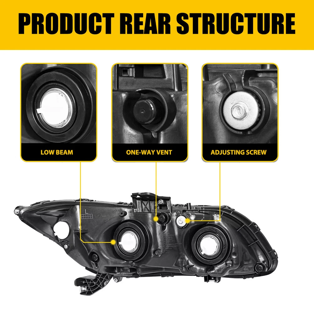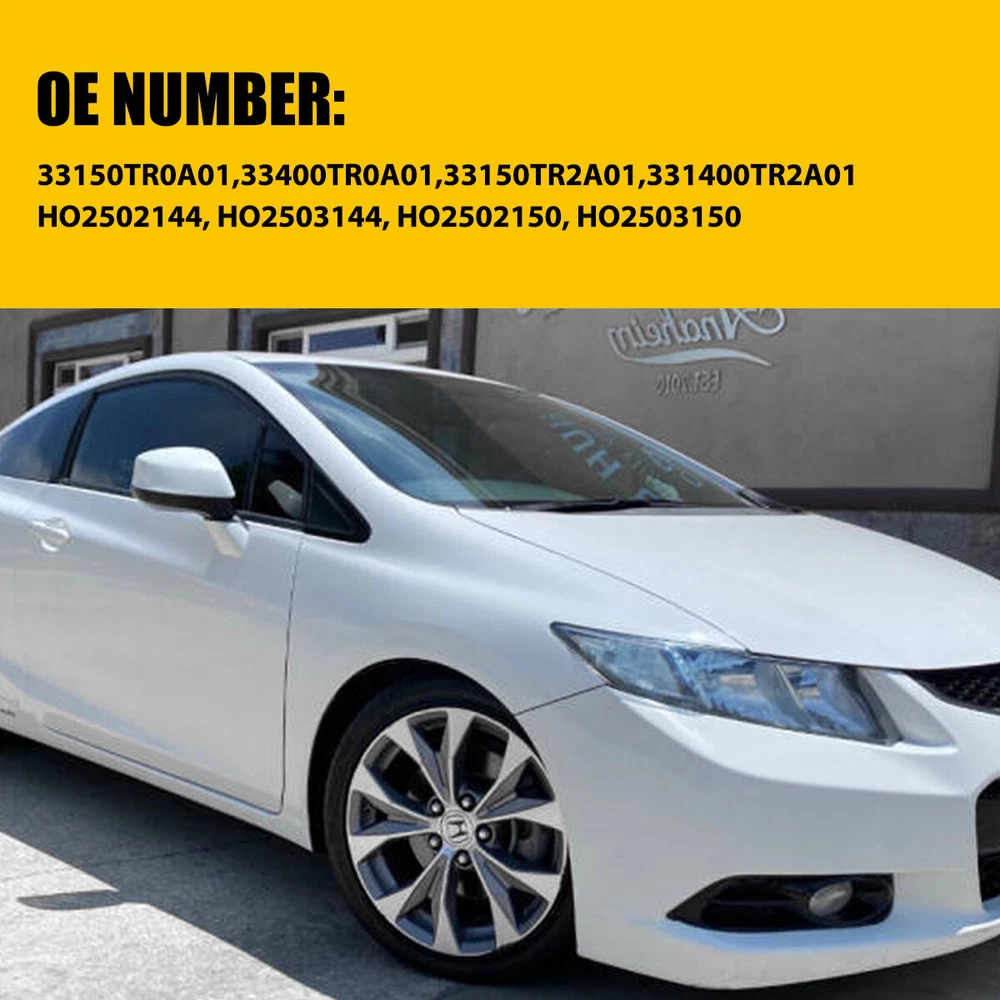Fit for: 2012-2015 Honda Civic 4Dr Sedan 2012-2013 Honda Civic 2Dr Coupe Specifications: OE number: 33150TR0A01,33400TR0A01,33150TR2A01,331400TR2A01 HO2502144, HO2503144, HO2502150, HO2503150 Material: ABS+PC (ABS Plastic Housing/Polycarbonate lens) Appearance color: 1.Housing Color:Chrome 2.Lens Color:Clear 3.Reflector Color:White Note: Projector ×( Not Include) DRL × (Not Include) Bulb × ( Not include) Features: *Easy to install: Direct replacement, drilling and cutting are not required. Chrome Pair Headlights Assembly Lamp For 2012-2015 Honda Civic Sedan 12-13 Coupe Fit for: 2012-2015 Honda Civic 4Dr Sedan 2012-2013 Honda Civic 2Dr Coupe Specifications: OE number: 33150TR0A01,33400TR0A01,33150TR2A01,331400TR2A01 HO2502144, HO2503144, HO2502150, HO2503150 Material: ABS+PC (ABS Plastic Housing/Polycarbonate lens) Appearance color: 1.Housing Color:Chrome 2.Lens Color:Clear 3.Reflector Color:White Note: Projector ×( Not Include) DRL × (Not Include) Bulb × ( Not include) Features: *Easy to install: Direct replacement, drilling and cutting are not required. *Superior quality: Made of ABS and PC materials with toughness and heat resistance functions to ensure its long service life and durability. *Angle adjustment: Equipped with a headlamp Angle adjustment knob, you can adjust the best Angle of view through the knob. *Suggestion: 1.Please confirm the OE number before purchasing!!! 2.Professional installation is required!!! Packaging include: Headlights*2(Left+Right) Item Specifics Other Part Number HO2502144, HO2503144,HO2502145, HO2503145 High Beam Bulb Type 9005 Bulb (No Included) Bulbs Included No Fitment Type Direct Replacement Items Included Driver Side & Passenger Side Low Beam Bulb Type 9006 Bulb (No Included) Manufacturer Part Number F09W140001 Number of Bulbs 0 Turn Signal Bulb Type 7443 Bulb (No Included) Placement on Vehicle Front Left Right California Prop 65 Warning This product can expose you tochemicals including dehp, which are known to the State of California to cause cancer and birth defects or other reproductive harm. Brand AUXITO Bulb Shape Code 9005;9006 Type Headlight Assembly Interchange Part Number 33150TR0A01,33400TR0A01,33150TR2A01,331400TR2A01 Manufacturer Warranty 1 Year OE/OEM Part Number HO2503144 HO2502150 HO2503150 Housing Color Chrome Fits for 2 For 2012-2013 Honda Civic 2-Door Coupe Features DOT-Certified SAE-Certified Fits for 1 For 2012-2015 Honda Civic 4-Door Sedan Lens Color Clear Lighting Technology Halogen Superseded Part Number 33150TR0A01,33400TR0A01,33150TR2A01,331400TR2A01 Payment Returns DESCRIPTION PAYMENT SHIPPING RETURN POLICY CONTACT US Shop Category Store Home LED Headlight ◈ H4 ◈ H13 LED Reverse Light ◈ T15/921/W16W LED License Plate Light LED Side Marker Light Car Parts & Accessories Tail Light assemblies Other Hot Item Picture New List Item 4PC Smoked Lens LED Front Side Lamp Marker White For 2003-09 Dodge Ram 2500 3500 USD 15.99 Smoked Lens White LED Bumper Rear Side Marker Lights For 1993-2002 Chevy Camaro USD 22.29 Pair Halogen Headlight Set For 2011-2015 Chevrolet Chevy Cruze 4-Door Sedan EOV USD 113.99 For 2016-2018 Honda HRV HR-V Chrome Housing Headlights Assembly Left&Right Pair USD 145.99 For 2015-2020 Chevy Tahoe Suburban [OE Style] LED DRL Headlights Headlamps LH USD 139.99 Help & Info Payment Policy Shipping Policy Return Policy FAQ About Us Chrome Pair Headlights Assembly Lamp For 2012-2015 Honda Civic Sedan 12-13 Coupe Fit for: 2012-2015 Honda Civic 4Dr Sedan 2012-2013 Honda Civic 2Dr Coupe Specifications: OE number: 33150TR0A01,33400TR0A01,33150TR2A01,331400TR2A01 HO2502144, HO2503144, HO2502150, HO2503150 Material: ABS+PC (ABS Plastic Housing/Polycarbonate lens) Appearance color: 1.Housing Color:Chrome 2.Lens Color:Clear 3.Reflector Color:White Note: Projector ×( Not Include) DRL × (Not Include) Bulb × ( Not include) Features: *Easy to install: Direct replacement, drilling and cutting are not required. *Superior quality: Made of ABS and PC materials with toughness and heat resistance functions to ensure its long service life and durability. *Angle adjustment: Equipped with a headlamp Angle adjustment knob, you can adjust the best Angle of view through the knob. *Suggestion: 1.Please confirm the OE number before purchasing!!! 2.Professional installation is required!!! Packaging include: Headlights*2(Left+Right) Payment Returns All rights reserved. On Dec 17, 2024 at 12:03:06 PST, seller added the following information: