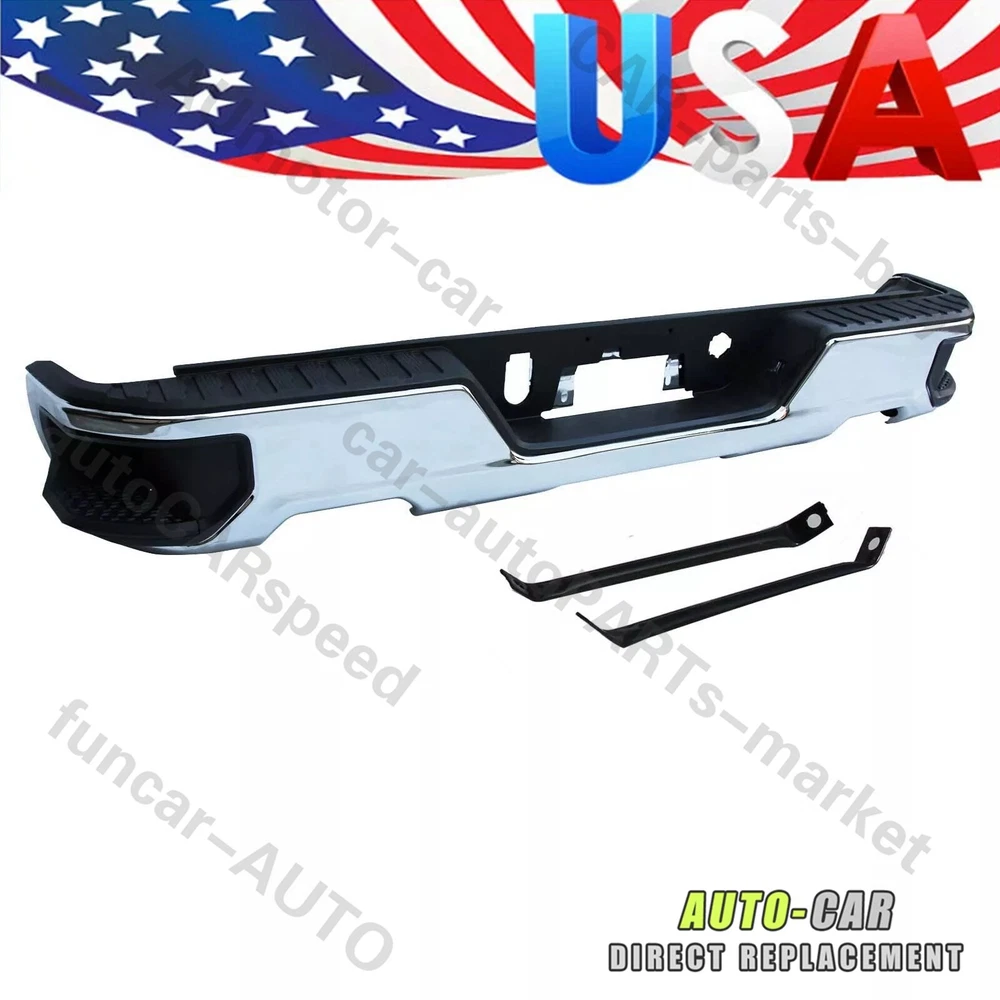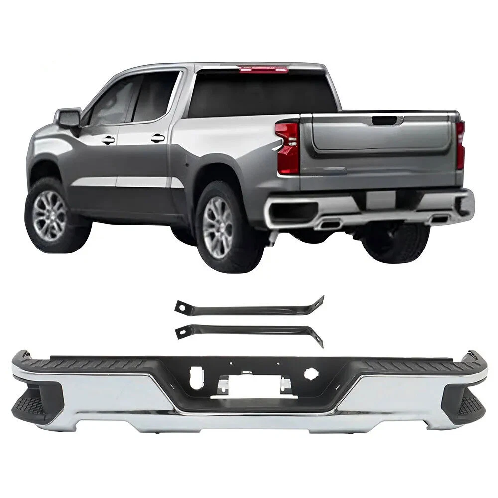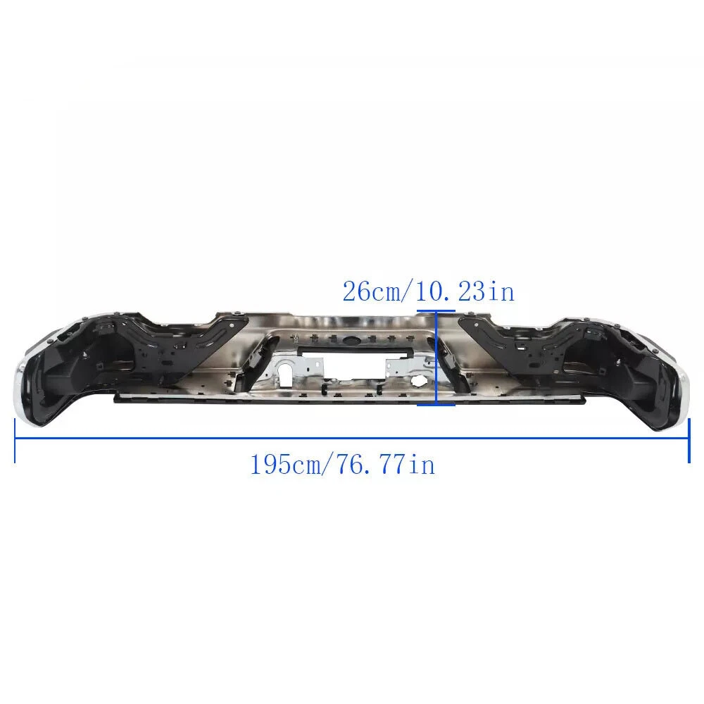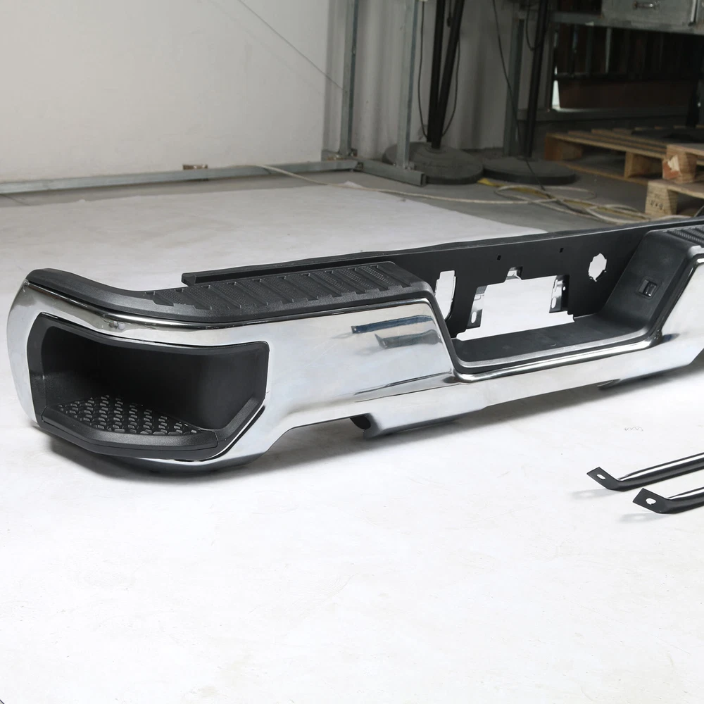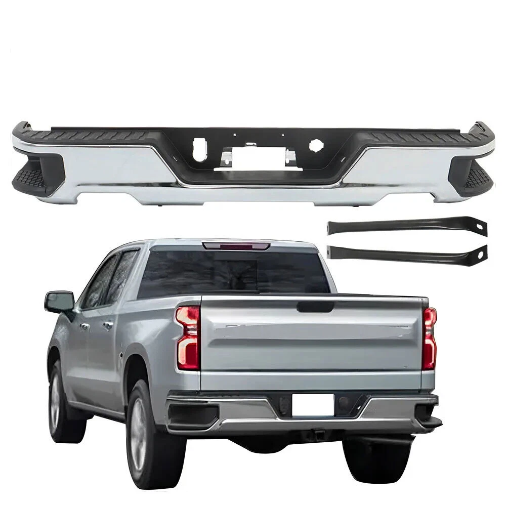 Fitment: For 2019-2023 Chevy Silverado GMC Sierra Description: -Replaces oe number:190-10295C, 23251664, 23251665, 84227858, 84227859, 84227860, 84227861, 84429050, 84434641, 84434642, 84564758, 84564764, 85128850, 85128851 -Interchange part number:GM1103218, 85128851, 85128850, 84564764, 84564758, 84434642, 84434641, 84429050, 84227861, 84227860, 84227859, 84227858, 23251665, 23251664, 190-10295C -Color/finish:Chrome -Replaces partslink number:GM1103218 -Parking aid sensor holes:Without parking aid sensor holes Package Include: 1* Chrome Step Bumper Assembly With Exhaust Holes Without Parking Aid Sensor Holes On Jun 6, 2024 at 04:53:36 PDT, seller added the following information: On Jun 10, 2024 at 02:55:28 PDT, seller added the following information: On Jun 12, 2024 at 14:10:26 PDT, seller added the following information: On Jun 18, 2024 at 08:01:30 PDT, seller added the following information: On Jun 20, 2024 at 10:29:50 PDT, seller added the following information: On Dec 8, 2024 at 05:33:11 PST, seller added the following information: