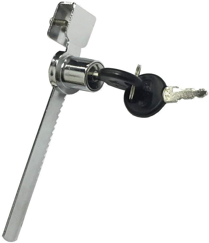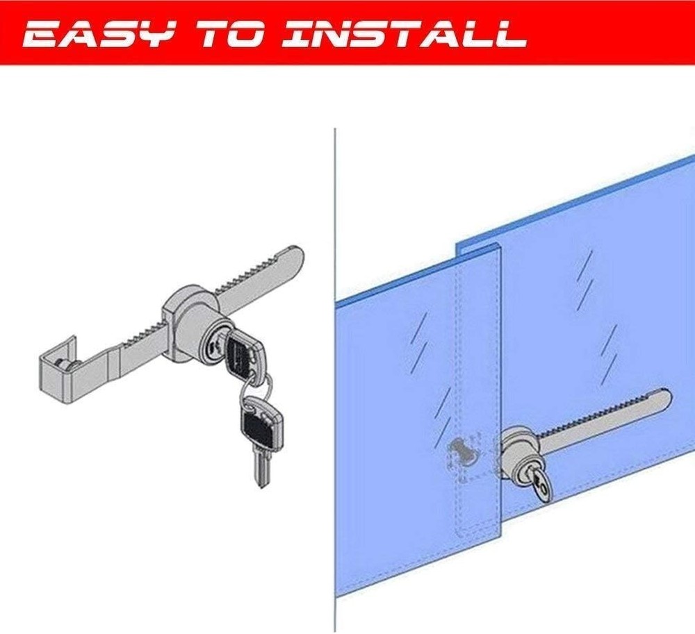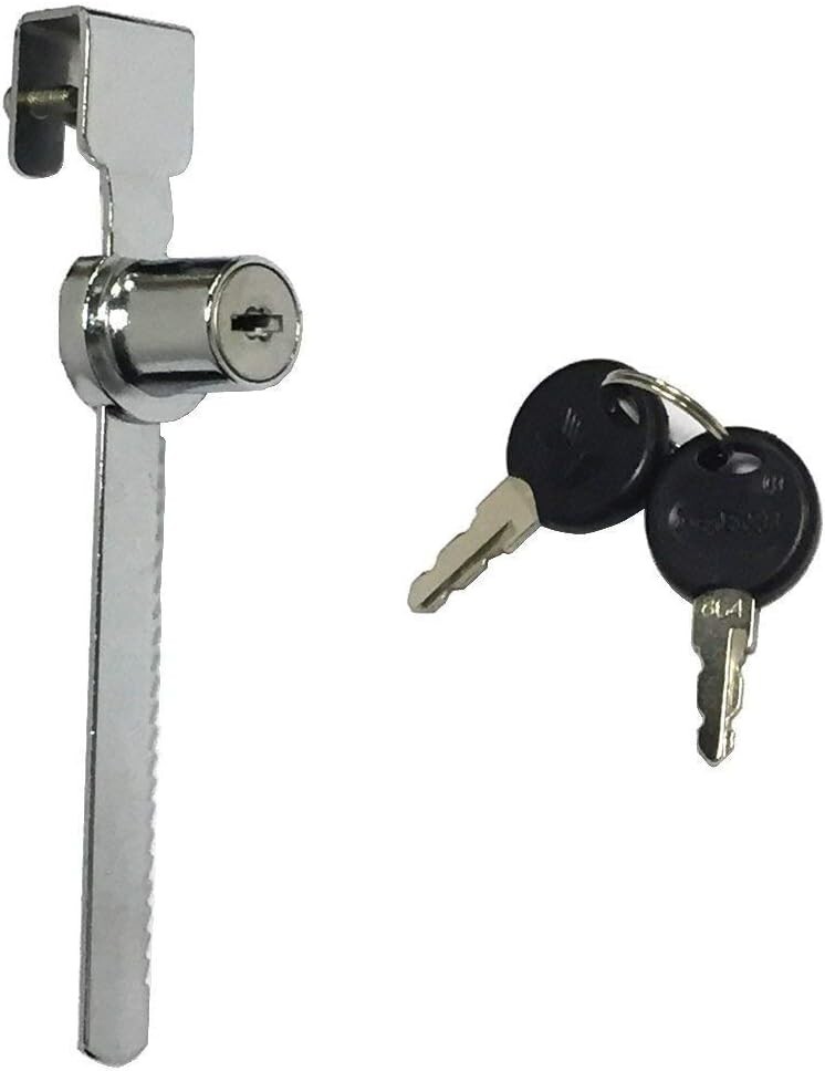 Fits glass up to 0.47" thick (most typical retail display cases) Easy to install - slips on edge of glass door at any location (no boring required) Keyed alike with zinc alloy lock housing, chrome finish Perfect for single glass door display cases, trophy cases, and retail cases. Able to lock multiple retail display cases with one key