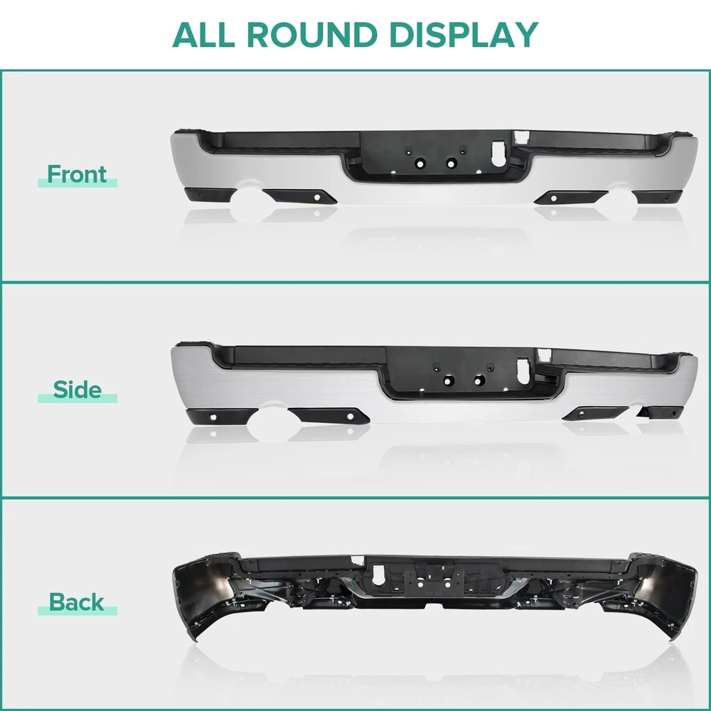Chrome Rear Bumper for 2019-2024 Ram 1500 Upgrade Your Ram 1500's Rear Profile with Our Chrome Rear Bumper Product Specifications: Color: Chrome Dual Exhaust: With Dual Exhaust Sensor Holes: With parking aid sensor holes Finish: Chrome Material: Steel Type: Rear Bumper Placement on Vehicle: Rear Fitment Type: Vehicle Specific OE/OEM Part Number: 68404443AA, 68404443AB Partslink Number: CH1103147 Installation Instruction: Not Included Fitment: Compatible with 2019-2024 Ram 1500 (models featuring Dual Exhaust and with Rear Parking Assist Sensor) Features & Benefits: Vehicle Specific Fitment Our Chrome Rear Bumper is specifically designed for the 2019-2024 Ram 1500 models, ensuring a perfect fit and seamless integration with your vehicle's rear end. It is only compatible with models featuring Dual Exhaust and with Rear Parking Assist Sensor. Interchange Part Numbers This bumper can replace the following part numbers: 68404443AA, 68404443AB, CH1103147. This makes it a versatile and cost-effective upgrade for your vehicle. Excellent Performance Featuring non-slip steps, this rear bumper ensures a safe and convenient entry and exit for your family. More than just a practical addition, it can absorb and slow down external impacts, protecting your vehicle and passengers during collisions and reducing the risk of injury. Quality Material Constructed from high-quality steel and lightweight ABS plastic, this rear bumper offers exceptional durability against wear and rust. The combination of materials ensures that it is both robust and stylish, improving the overall aesthetics of your vehicle. Easy Installation Our rear bumper is designed for easy and quick installation as a direct replacement. The package includes: 1X Rear bumper, along with the necessary mounting brackets and screws. No additional drilling or cutting is required, making the installation process hassle-free. Upgrade Today Invest in our Chrome Rear Bumper for your Ram 1500 and enjoy enhanced protection, perfect fitment, and superior quality. This premium accessory not only enhances the look of your vehicle but also adds a layer of protection. Customer Support We stand behind the quality of our products. If you encounter any issues, our customer support team is ready to assist you within 24 hours. We are committed to providing you with the best possible service and support. Product Details: Material: High-quality steel and ABS plastic Finish: Chrome Fit Type: Vehicle Specific for 2019-2024 Ram 1500 Upgrade Your Vehicle's Rear End Don't settle for less. Elevate your Ram 1500's rear end with our Chrome Rear Bumper and make a statement with its distinctive design and superior durability. Experience the difference in both aesthetics and functionality with this premium accessory. Contact Us If you have any questions or need assistance, feel free to reach out. We are here to help you every step of the way.