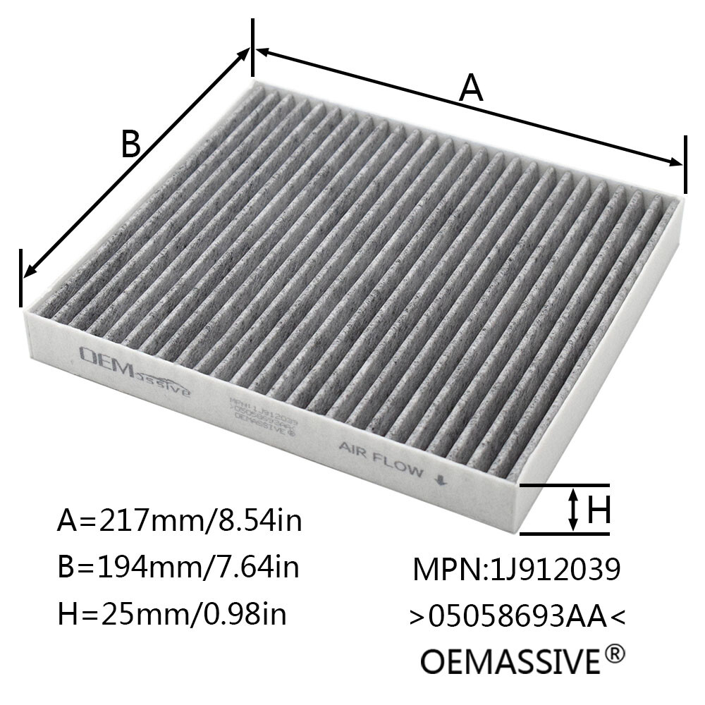 For Chrysler 200 Cirrus Dodge Avenger Caliber Pollen Cabin Air-Filter#05058381AA Please check OE number and the filter size in the image Brand: OEMASSIVE Manufacturer Part Number: 1J912039 Reference OE/OEM Number: 05058693AA, 05058381AA, 5058693AA, 5058381AA, K05058693AA, K05058381AA Interchange Part Number: 05058693AA, 05058381AA, 5058693AA, 5058381AA, K05058693AA, K05058381AA Other Part Number: ADA102509, NC2377, PC8335, CP1337, CF11444, LA569, CU2227, 1987432273, FC458, S3150C, E659, WP2062 Item Description: Product Type: Cabin Air Filter Material: Activated Carbon Filter Cloth Package Includes: 1×Cabin Air Filter Size: As The Picture Shown Features: Double-layer activated carbon filter cloth High filtration efficiency High dust holding capacity Good temperature Resistance Economical, practical and easy to install How to replace a cabin air filter? Most cabin air filters can be replaced without tools but some require basic hand tools to open the cabin air filter compartment. Usually installed in the following three positions: 1.Under the hood, near the windshield 2.Underneath the dashboard 3.Behind the glove compartment Fitment: For Chrysler 200 2011-2014 L4 2.4L For Chrysler 200 2011-2014 V6 3.6L For Chrysler Cirrus 2007-2010 L4 2.4L For Chrysler Cirrus 2007-2008 V6 3.5L For Chrysler Sebring 2007-2010 L4 2.4L For Chrysler Sebring 2007-2010 V6 2.7L For Chrysler Sebring 2007-2010 V6 3.5L For Dodge Avenger 2008-2014 L4 2.4L For Dodge Avenger 2008-2010 V6 2.7L For Dodge Avenger 2008-2010 V6 3.5L For Dodge Avenger 2011-2014 V6 3.6L For Dodge Caliber 2007-2009 L4 1.8L For Dodge Caliber 2007-2012 L4 2.0L For Dodge Caliber 2007-2012 L4 2.4L For Dodge Journey 2009-2019 L4 2.4L For Dodge Journey 2009-2010 V6 3.5L For Dodge Journey 2011-2019 V6 3.6L For Jeep Compass 2007-2017 L4 2.0L For Jeep Compass 2007-2017 L4 2.4L Dohc For Jeep Patriot 2007-2017 L4 2.0L For Jeep Patriot 2007-2017 L4 2.4L For Ram 1500 2015 V6 3.0L We accept Paypal and majoy credit cards payment When you place an order, please choose a shipping method and pay for the order including the shipping fee within 48 hours. And please make sure your current address correct after your payment within 1-2 days! About Shipping 1. Receiving time = Processing time + Shipping time 2. Processing Time: Around 1-3 Days 3. Shipping Time: 15-26 Days By Air Mail 3-10 Working Days By Express We do not guarantee delivery time on all international shipments due to differences in customs clearing times in individual countries, which may affect how quickly your product is inspected! Important Notice >Transit Time Is Best Estimated But NOT Guaranteed As Transit Time Varies >Orders may be subject to import taxes, customs duties and fees levied by the destination country.Additional charges for customs clearance must be fulfilled by the recipient; We no control over these charges, nor can we predict what they may be. 100% Customer Satisfaction Is Our Top Priority For Any Reasons You Are Not Satisfied With The Products Within 30 Days Of Purchase, Return Or Exchange Can Be Issued, Customers Are Responsible For The Return Shipping Cost And Subsequent Replacement Shipping Cost For An Exchange Item. Replacement Item Will Be Processed And Shipped Upon Return And Inspection Of The Original Item. Return Items Must Be In Their Original Packaging And Unused Condition, Or They Will Be Rejected And Sent Back To You. Due To The Nature Of The Products We Sell, We Carefully Inspect All Packages Prior To Shipping. All Of Our Products Are Sold As Brand New, All Damaged Products Are Considered Damaged During Transit. If You Received A Damaged Or Broken Item, Please Save All Packaging Material And Paperwork And Contact Us Immediately So We Can Help You With The Damage Claim With The Shipping Carrier. No Claims Will Be Honored After 14 Days Upon Item Receive. Digital Photos Will Be Required For All Cases. All Products Come With A 60 Days Limited Warranty Against Manufacturer’s Defects. No Exchange Will Be Issued On Products That Have Been Damaged In Any Way. Warranty Does Not Applied To Improper Installation, Water / Fire Damage, Modification, Or Any Acts Of Nature . If you have any question or concern, please feel free to contact us via eBay massage directly, we will get back to you as soon as we are available ATTENTION : We do not answer any emails over the weekend Please send message to us.We will reply your message in 24 hours, Our working time: 9:00 AM-22:30 PM (GMT+ 08:00 Beijing) 1:00 AM -14:30 PM (GMT+ 00:00 London) 19:00 PM-08:30 AM (GMT- 06:00 USA/Canada) Why Choose us? 1. A tremendous variety of products-- With over 200,000 items in stock, we are one of the world's largest online stores in automotive aftermarket product sector. You'll have more choices than what you can ever imagine. What's more, we're updating with over 100 new arrivals per month! 2. Affordable prices -- we are offering the latest car parts and accessories for almost 20 years, we're always keeping up with the newest trends, while most importantly, making the prices as low as we can. 3. Free worldwide shipping -- Yep, you won't believe that you'll enjoy free worldwide shipping with us (unless stated otherwise),it's not a joke,but an absolute truth. 4. No-question refund and return-- Anything wrong issuing quality and breakage can be returned or refundable. Please check OE number and the filter size in the image Brand: OEMASSIVE Manufacturer Part Number: 1J912039 Reference OE/OEM Number: 05058693AA, 05058381AA, 5058693AA, 5058381AA, K05058693AA, K05058381AA Interchange Part Number: 05058693AA, 05058381AA, 5058693AA, 5058381AA, K05058693AA, K05058381AA Other Part Number: ADA102509, NC2377, PC8335, CP1337, CF11444, LA569, CU2227, 1987432273, FC458, S3150C, E659, WP2062 Item Description: Product Type: Cabin Air Filter Material: Activated Carbon Filter Cloth Package Includes: 1×Cabin Air Filter Size: As The Picture Shown Features: Double-layer activated carbon filter cloth High filtration efficienc