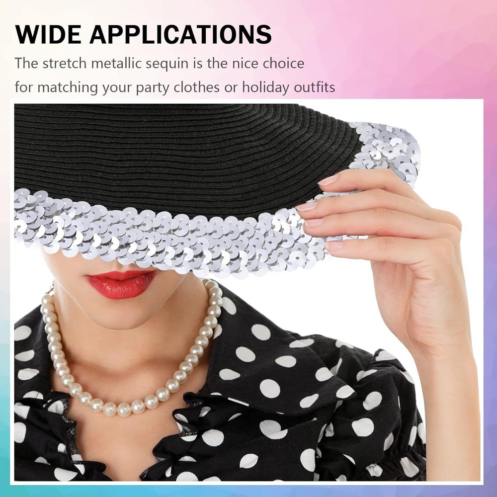 Chuangdi 11 Yard 1 Inch Elastic Sequins Trim 3 Row Flat Glitter Sequin Silver Product Details Color: Silver Material: Polyester, Plastic Brand: Chuangdi Product Dimensions: 396"L x 1"W Style: Modern Occasion: Christmas, Birthday, Halloween Pattern: Solid Fabric Type: Sequin,Acrylic,Polyester Manufacturer: Chuangdi Number of Items: 1 Package contains: you can receive 1 roll of sequins trim, which measures approx. 11 yards in length, 1 inch in width, long enough to meet your daily needs and holiday use, suitable for being applied on holidays and other occasions Reliable material: the flat sequin trim is mainly made of plastic, polyester, acrylic and rubber, the nice workmanship and reliable material make the sequin trim bright in color, can be applied to make handicrafts, can be washed by hands, convenient for you to use Elastic sequins design: these shiny sequins are tightly sewn on the elastic rubber band, making it easier to sew on fabric or wrap, the elastic design also make it flexible and easy to use, save your time and effort Functional and decorative: the bling elastic ribbon can be applied to decorate your dresses, trousers, tablecloths, curtains, blankets, scarves, hats, headbands, and shoes, you can also use it to DIY personal style projects, exercise your hand making ability Wide applications: the stretch metallic sequin is the nice choice for matching your party clothes or holiday outfits, can be applied on Christmas, Halloween, New Year, suitable for gift packaging, party decorating, scrapbook and card making