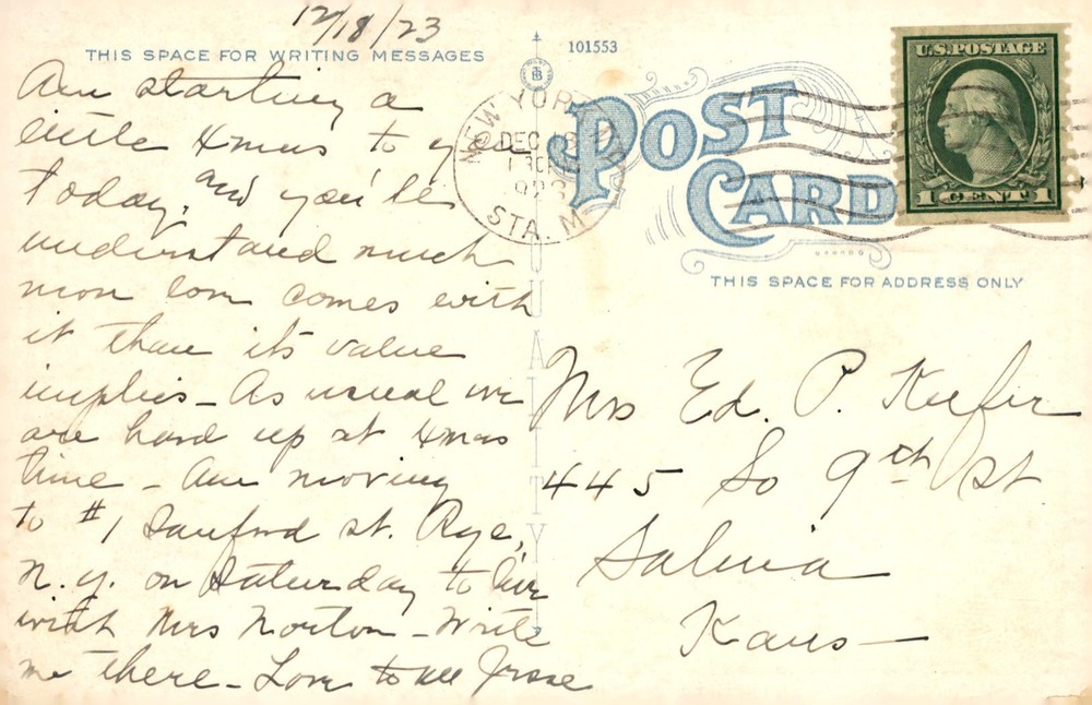 Vintage postcard featuring the iconic Church of the Transfiguration in New York City. Space provided for writing messages. A glimpse into daily life and correspondence in the early 20th century.