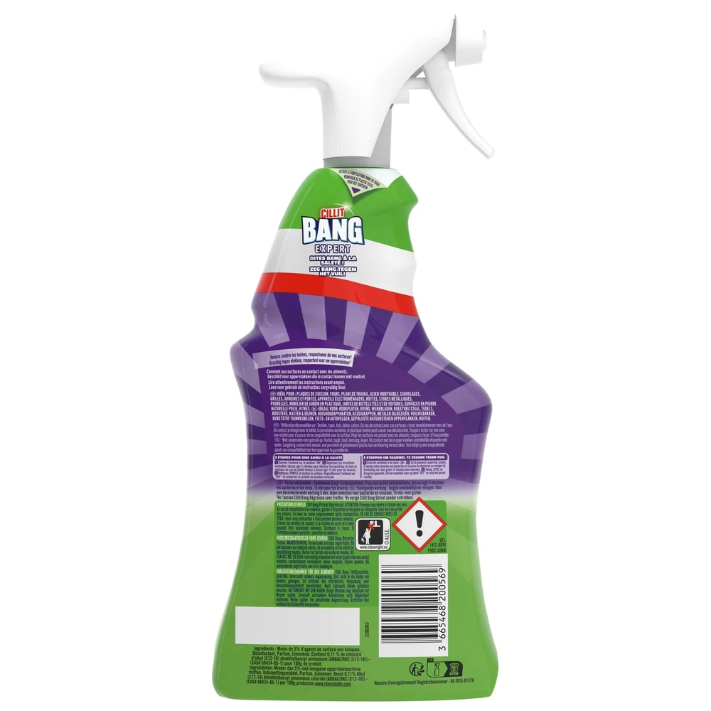Enter the dirt don't stand a chance with the Universal Degreaser. Our super effective foam removes food stains, grease and burnt-on stains from a variety of surfaces in and out of your home in no time. Ideal for: Dirt Burnt-on stains Grease residue powerful, degreasing, heavy duty cleaner for tough dirt. Make your life easier with the grease fighting power of . Eliminates food or grease stains in seconds. Ideal for: • dishes • ovens • pots and pans • worktops • fridges • stainless steel • tiles • barbecues • cupboards • electrical appliances • doors • extractor hoods • metal blinds • bins • garden furniture • bikes • wheel trims • marble, granite and natural stone surfaces • glass surfaces (rinse after use). Powerful cleaner spray against grease, burnt residues, and the most subborn dirt around the home.