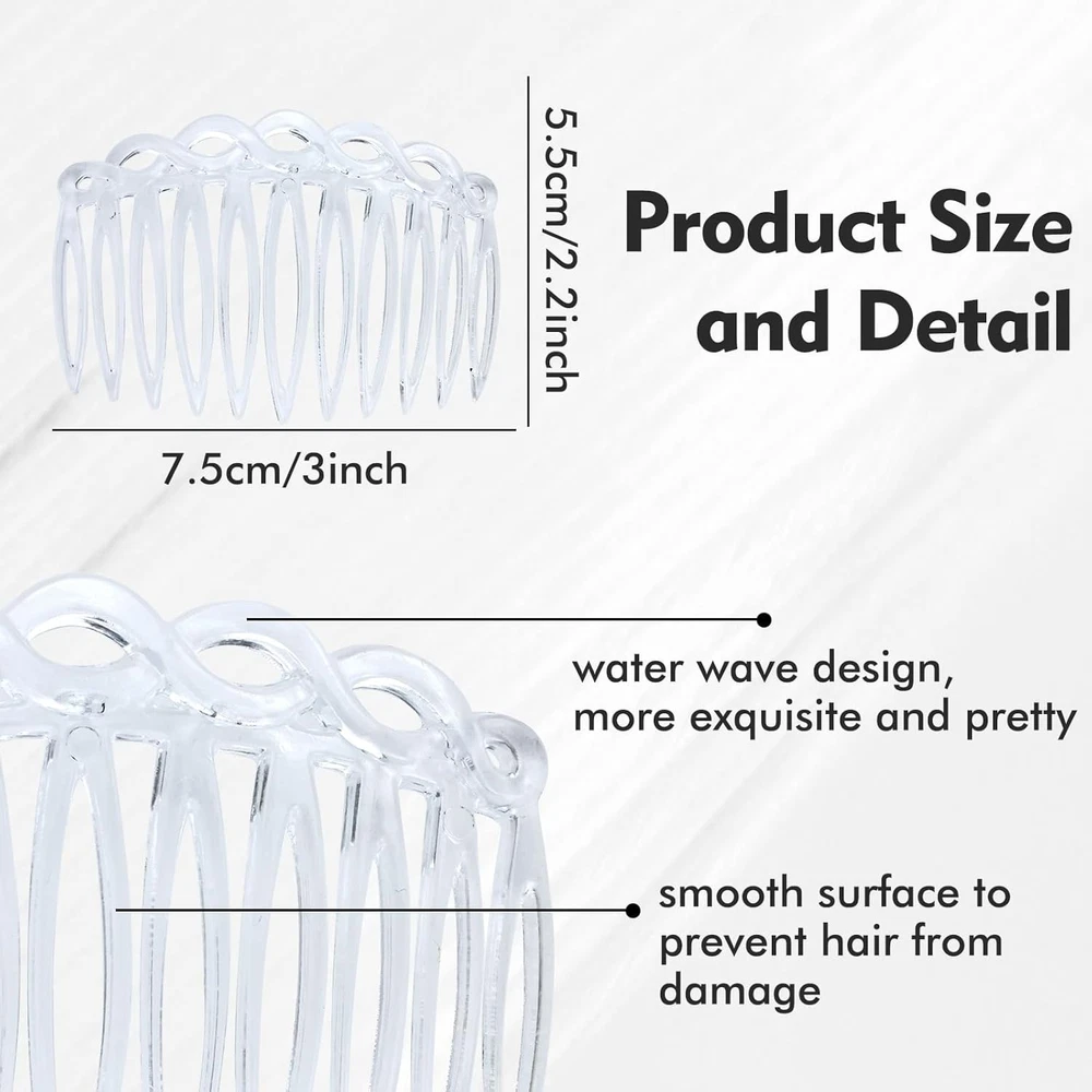 Store New Arrivals Add to Favorite View Feedback Contact Cinaci 30 Pieces Clear White French Twist Water Wave Plastic Hair Side Combs Slides with 11 Teeth Wedding Brides Veil Combs Hair Accessories for Women Girls Description Number of Items 30 Power Source Manual Color Clear White-30 Pack Brand Cinaci Material Plastic Package Dimensions 5.87 x 5.2 x 2.68 inches; 6.38 ounces Hair Type All Manufacturer Cinaci Durable Plastic Material: These hair side combs are crafted from high-quality plastic, ensuring long-lasting durability and resilience. The sturdy construction allows for a reliable hold and prevents breakage, making them a dependable hair accessory for everyday use or special occasions. Perfect Size and Classic Color: Measuring at a length of 7.5cm/3" and width of 5.5cm/2.2", these white hair side combs are designed to fit comfortably in your hair. The neutral clear white color effortlessly blends with any hair color or style, making them a versatile choice for a range of hairstyles and occasions. Secure and Elegant Design: With 11 teeth, these hair side combs provide optimal grip and hold, keeping your hair neatly in place without slipping. Adding a touch of vintage charm, the water wave design on the top of the comb enhances its overall elegance and sophistication, making it an ideal choice for wedding hairstyles or any other formal event. Versatile Hair Accessory: These plain hair side combs are a versatile addition to your hair accessories collection. Whether you're styling an intricate updo, securing a bridal veil, or simply seeking a reliable way to keep your hair away from your face, these combs are perfect for achieving a polished and timeless look. Wedding Essential: Complete your bridal ensemble with these French twist hair side combs that are specifically designed for holding wedding veils in place. The classic design and sturdy construction ensure that your veil remains securely attached throughout your special day, allowing you to walk down the aisle with confidence and grace. These wedding veil combs are a must-have accessory for brides. Cinaci 30 Pieces Black Brown Clear White Water Wave French Twist Plastic Hair Side Combs Slides with 11 Teeth Wedding Brides Veil Combs Grips Hair Accessories for Women Girls Specifications: Material: Plastic hair side combs. Color: Clear white/brown/ black. Size: The length of plastic hair combs is 7.5cm/3". The width of the hair side clips is 5.5cm/2.2". Package includes: 30 pieces hair side combs in the package. ABOUT US We offer the best prices around on high quality products. Our E-store includes media such as books, movies, music and games while offering electronics, toys, sporting apparel, clothing, tools, general home, garden items and more. SHIPPING We are always working hard to ensure your package arrives as soon as possible. Please understand that some factors like weather, high postal traffic, and the performance of shipping companies are outside of our control. We offer free shipping to the lower 48 states and ship within 2 business days of payment, usually sooner. We do not accept P.O. Boxes. Please provide a physical address. RETURNS We offer a 30-Day Return Policy on items which you are not completely satisfied with. You have the option for a full-refund or an exchange of the item. No returns are available on items shipped outside of the USA. PAYMENT We accept PayPal. CONTACT US This page content is yet to come Please ad us to your favorite seller and visit again later Thank You CUSTOMER SATISFACTION We try our very best to make sure every customer is completely satisfied. If there's a problem, message us! We're happy to help.