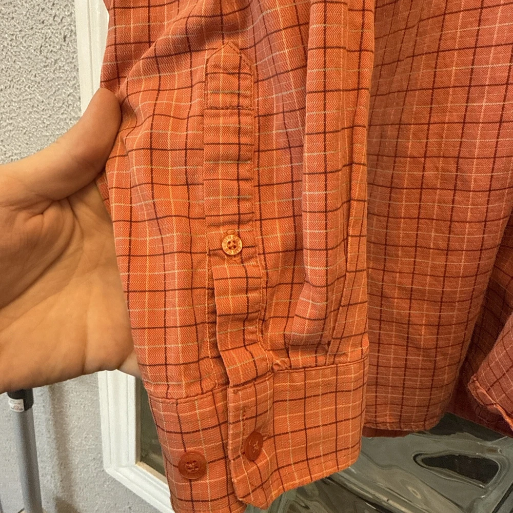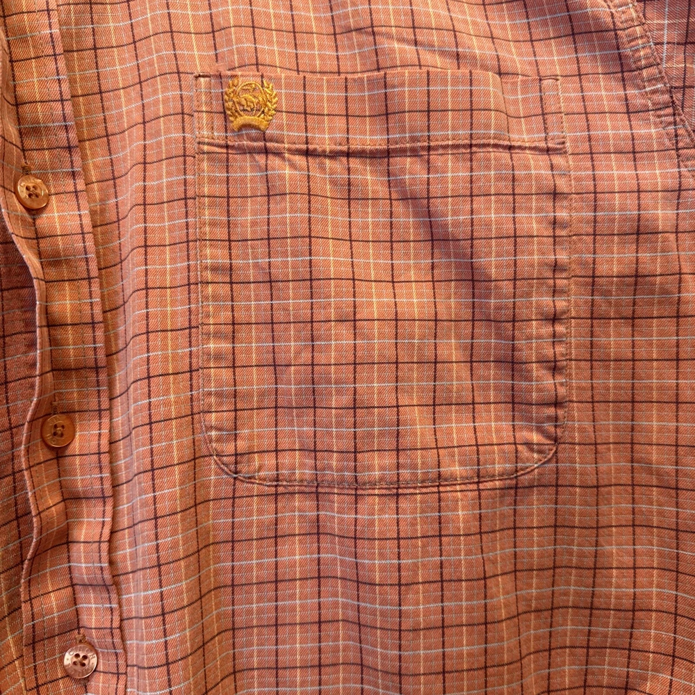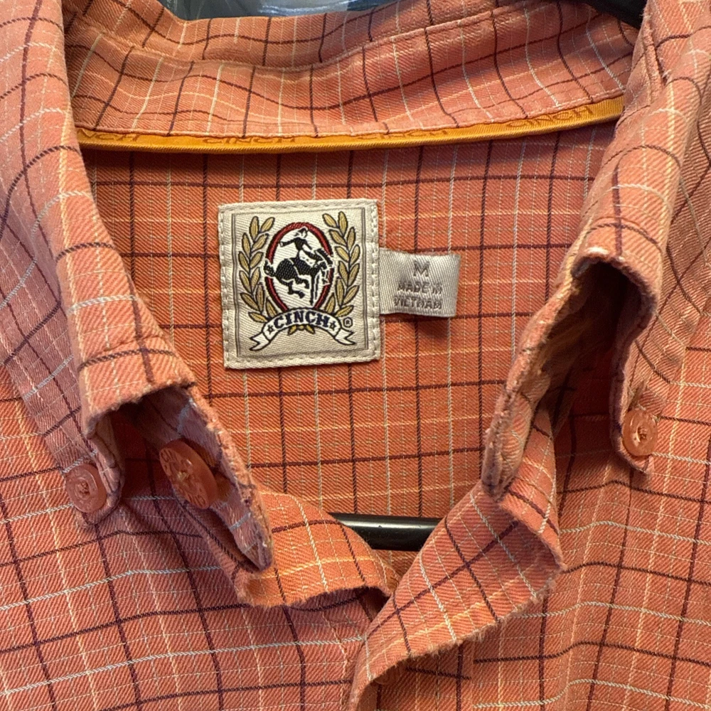 Upgrade your wardrobe with this Cinch men's button-up shirt in a vibrant orange plaid pattern. Made of comfortable cotton material, this shirt features an embroidered accent and a button-down collar style. It has easy-care and all-season features, making it perfect for any occasion, whether for travel, party/cocktail, casual, or workwear. The shirt comes in a regular fit and size type, with long sleeves and pockets for added convenience. It is machine washable and available in a medium size. Add a touch of classic Western and cowboy style to your wardrobe with this must-have shirt.