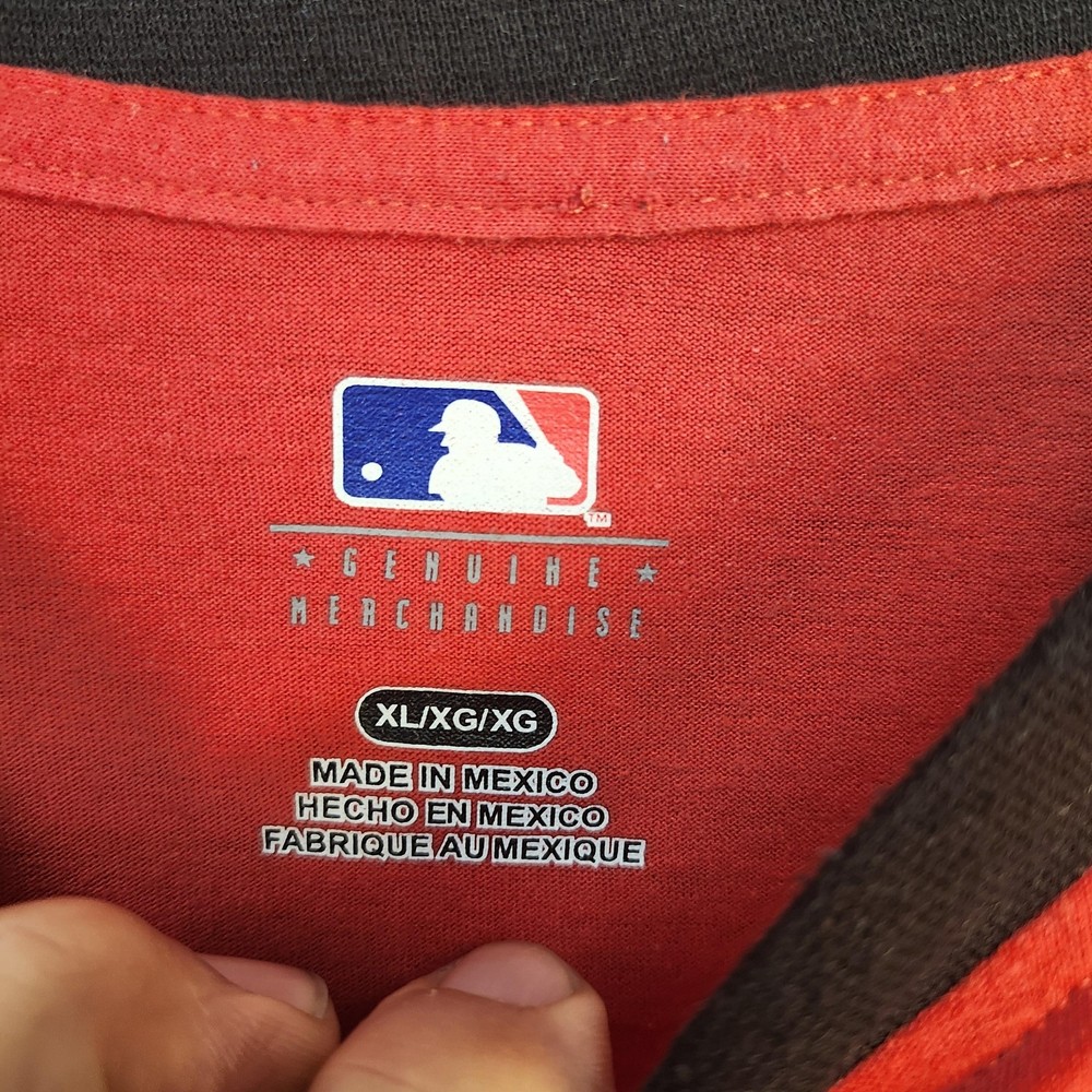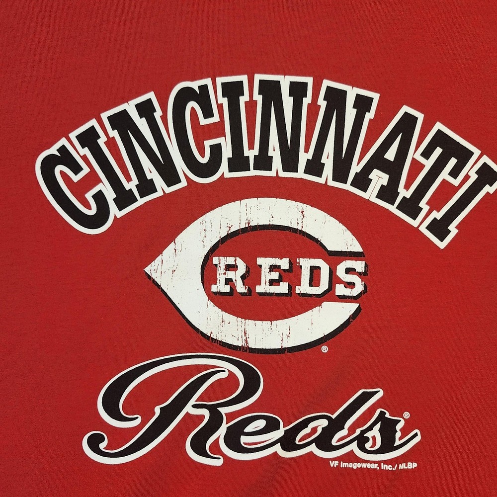 Cincinnati Reds Shirt Mens XL Red Black MLB Baseball Raglan Tee Vintage Style Condition: Good pre-owned condition, gently worn with some light cracking/fading to the front graphic print as shown. No holes or stains noted. Front features large classic Cincinnati Reds logo and stylized script on red body Short sleeve raglan design with black sleeves and collar for a sporty look Official MLB Genuine Merchandise by VF Imagewear Size XL (Mens) -- see photos for measurements: approximately 30" back length, 24" pit-to-pit Material: Tag not visible, feels like soft cotton or cotton-blend Main colors: Red body, black sleeves/collar; white and black graphics Made in Mexico Great shirt for any baseball fan, perfect for game day or casual wear